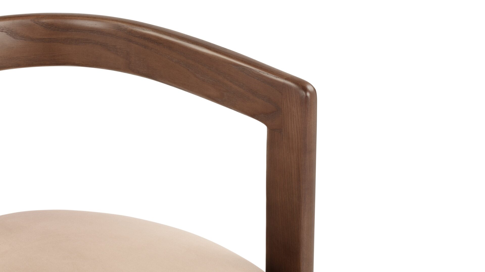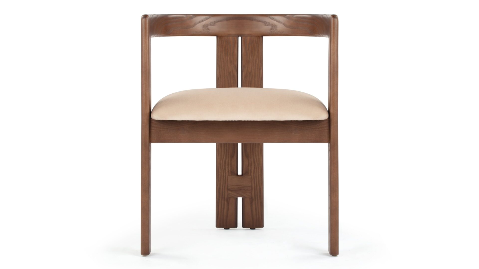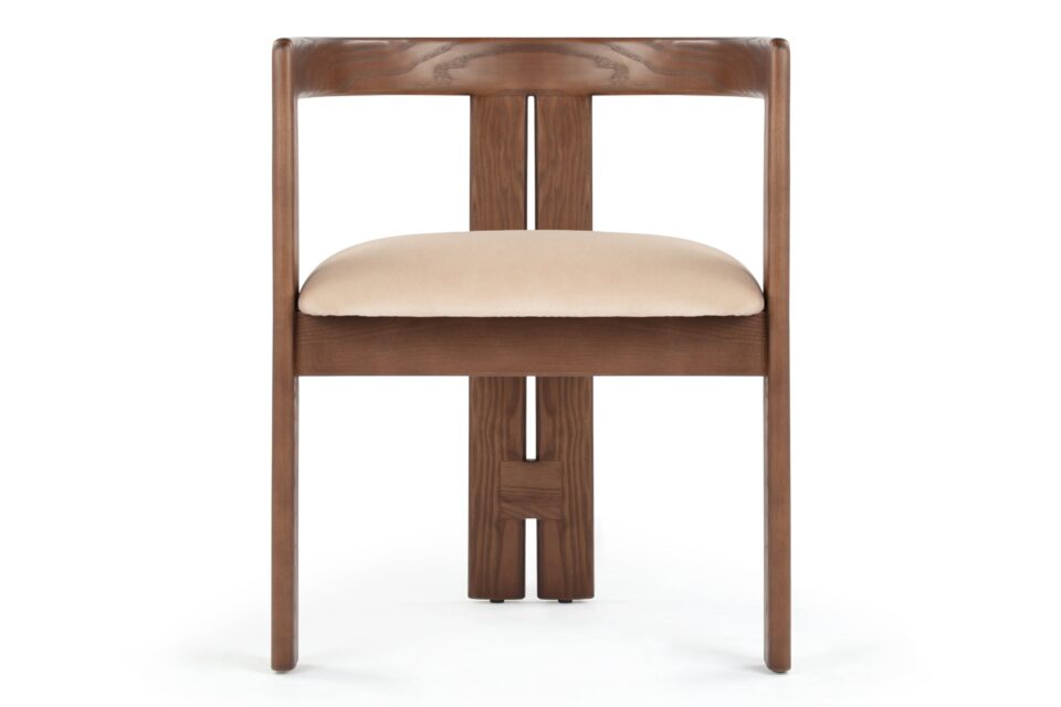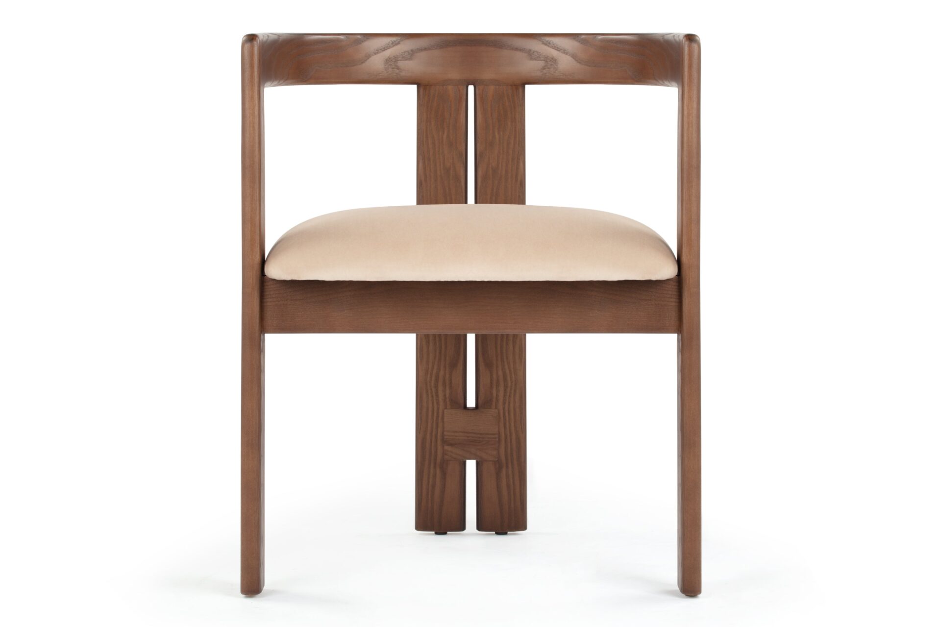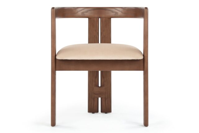 Indulge in sophisticated dining elegance with the Rose Dining Chair. Seamlessly blending contemporary aesthetics with timeless allure, the Rose Dining Chair transcends mere furniture to become a symbol of sophistication and comfort. Anchored by a durable yet graceful walnut frame, each curve radiates warmth and character. The natural richness of the walnut wood lends an air of luxury to any dining area, elevating it with refined opulence. The gracefully contoured arms not only enhance visual appeal but also offer unparalleled support, beckoning you to relax and luxuriate in the moment.