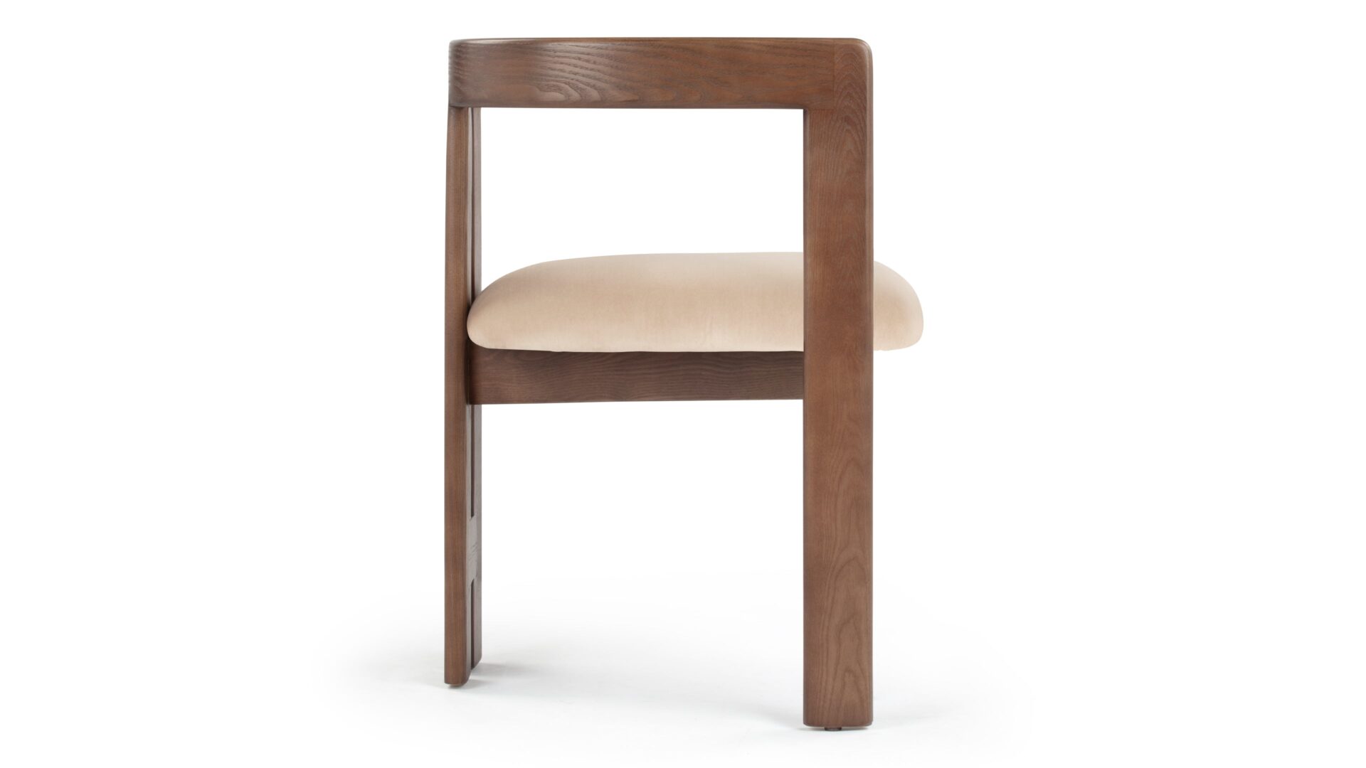 Experience enduring luxury with the Rose Dining Chair that seamlessly blends sleek lines and minimalist design elements in a symbol of refined sophistication. Wrapped in a luxurious beige-gray velvet upholstery, this chair captivates with its lavish softness and inviting texture. Every detail exudes quality craftsmanship, from the durable walnut frame to the graceful contours that offer unparalleled support for a truly opulent dining experience.