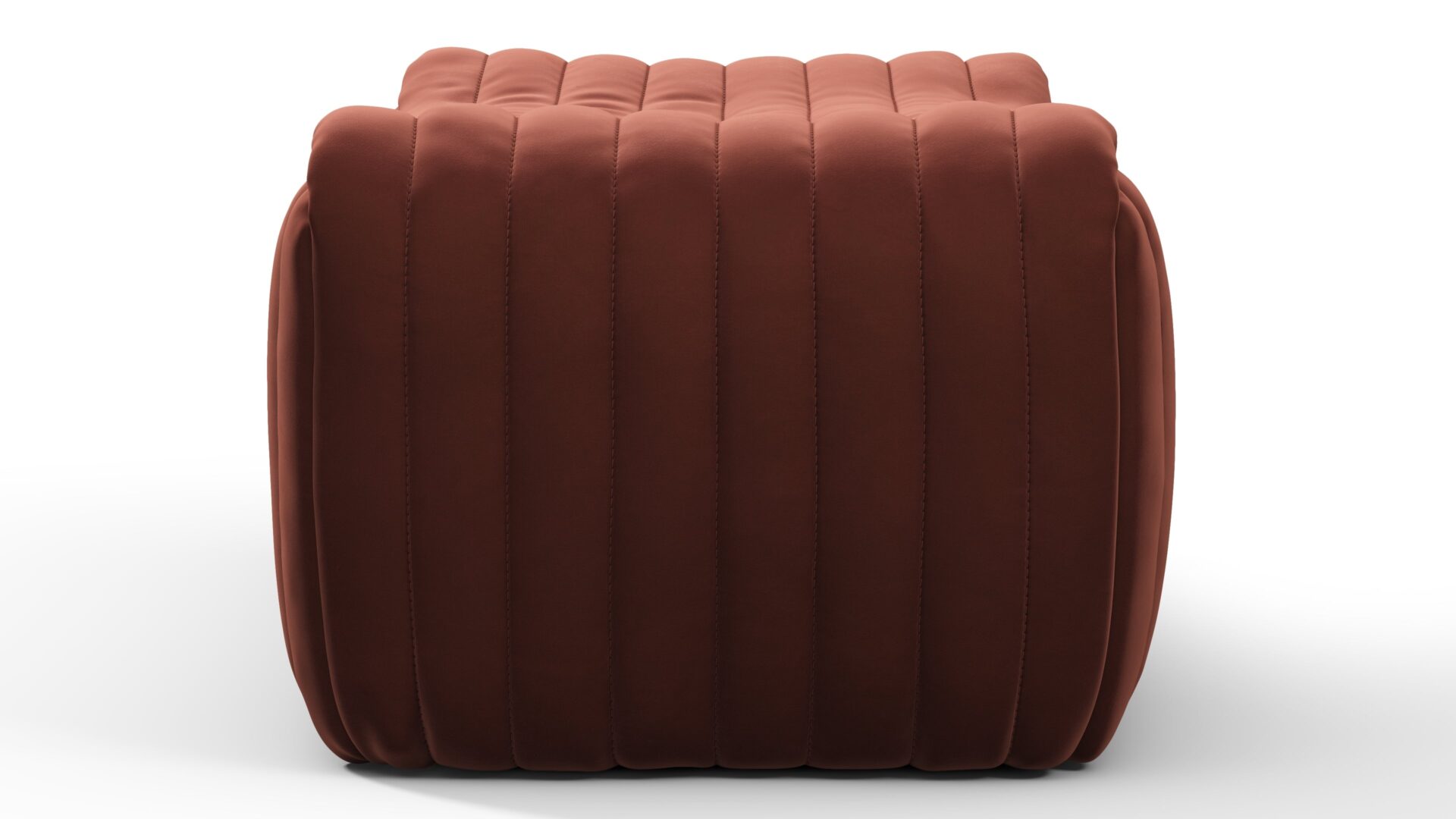 Introducing the Sandra Ottoman in Burgundy Luxe Velvet, a symbol of timeless sophistication and versatile practicality for any living area. With its simple yet modern design, premium materials ensure durability and comfort. The luxurious cushioning offers a cozy spot for tired feet or extra seating. Elevate your space with this artisan quality, thoughtfully designed piece that exudes elegance and expert detailing, perfect on its own or paired with the Sandra Sofa for a touch of refined luxury.
