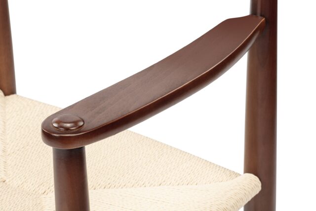 Inspired by Shaker principles, the Shaker Armchair exemplifies the perfect blend of functionality and comfort. Featuring a gently curved backrest for ergonomic support and a seat intricately woven from paper cord for tactile pleasure and durability, this chair stays true to its traditional roots. Crafted with solid wood and employing traditional craftsmanship methods, the Shaker Armchair is designed to stand the test of time for both durability and strength.