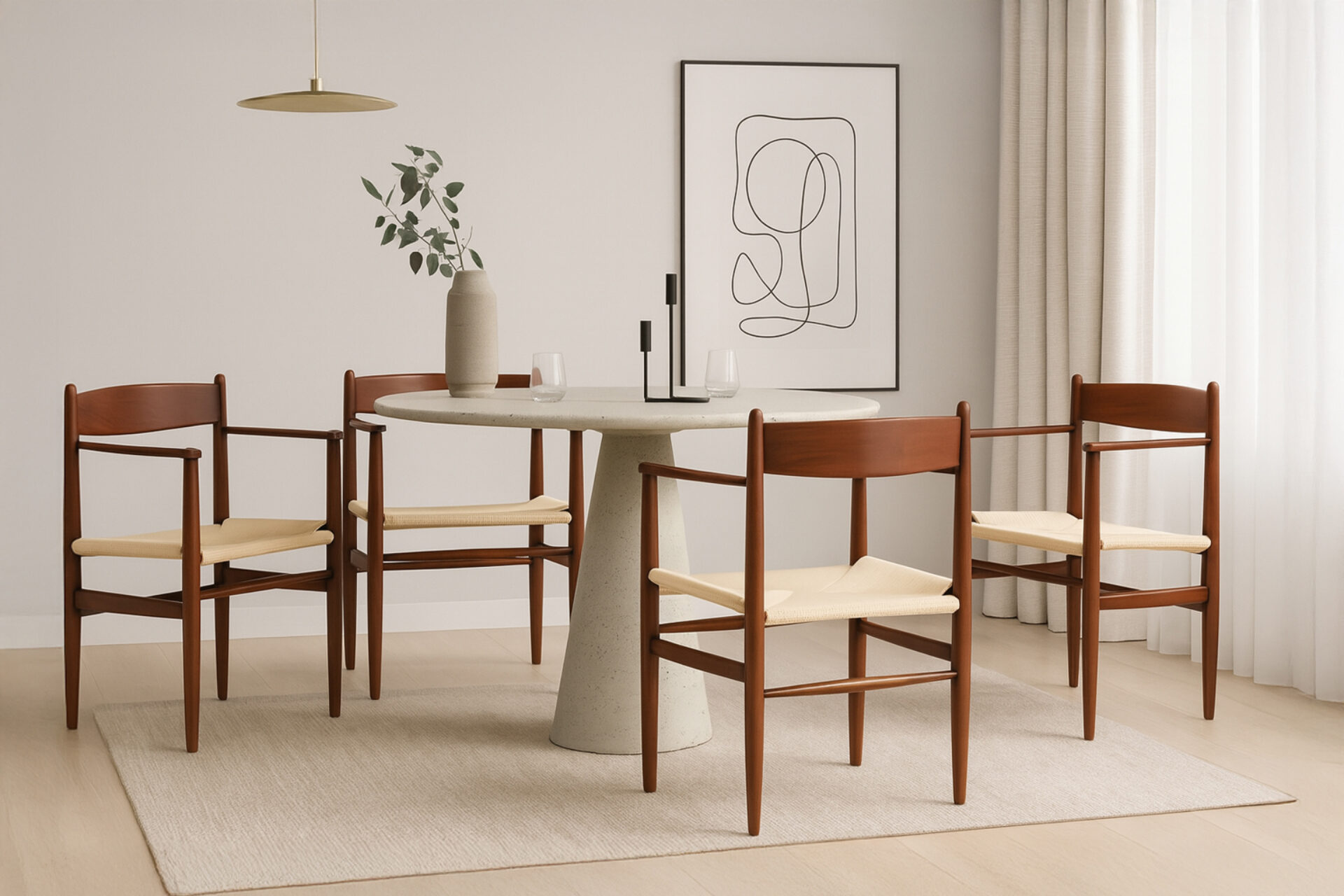 Experience the timeless charm and practicality of the Shaker Armchair, influenced by mid-century modern aesthetics and Shaker craftsmanship. Its clean lines, durable wood frame, and paper cord seat epitomize simplicity and comfort. This chair embodies a blend of traditional design and contemporary style, making it a versatile and enduring addition to any home.