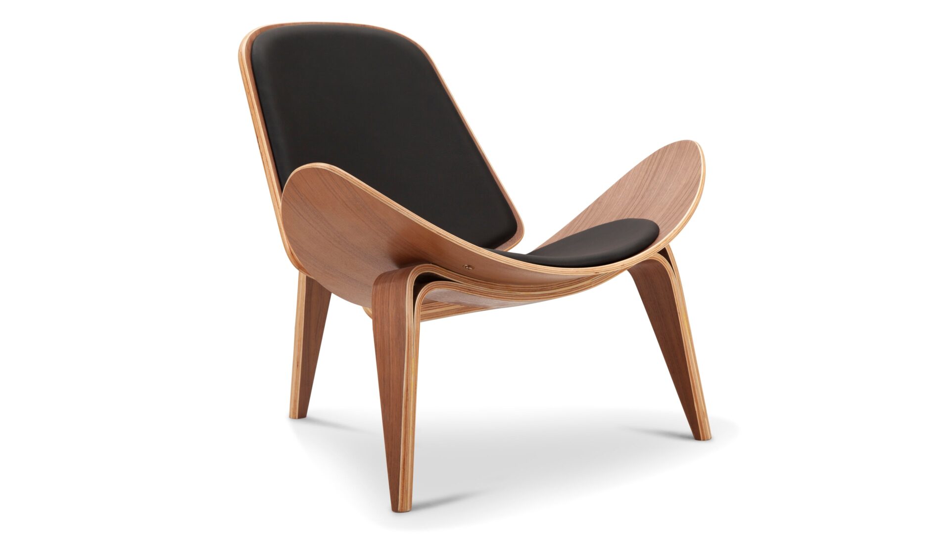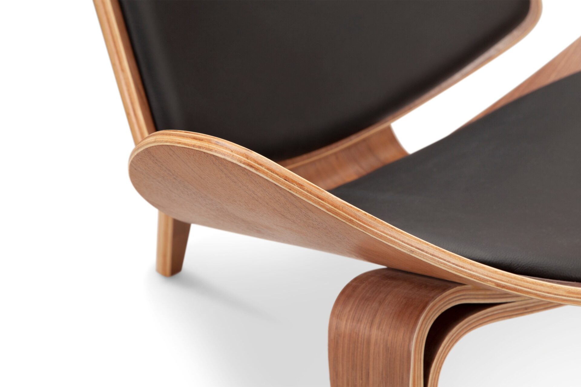 Elevate your space with the timeless appeal and luxurious curves of the Wegner Shell Chair. Drawing inspiration from early 1960s design, this chair beautifully blends aesthetics and practicality, boasting graceful curves and premium materials like Walnut and Black Premium Leather. Experience comfort and modern sophistication while infusing a dash of retro allure into any room. Crafted for longevity, this standout piece exudes exquisite workmanship, making it a must-have for those with discerning taste.