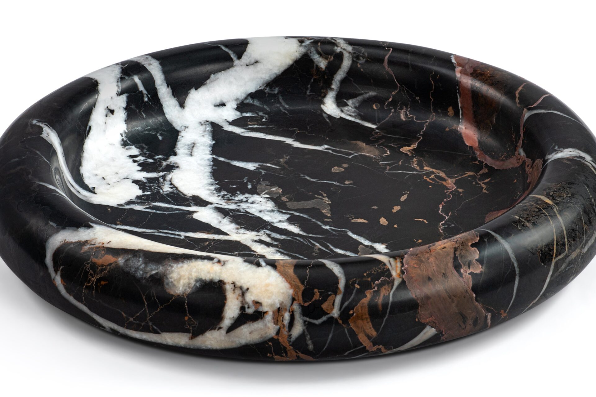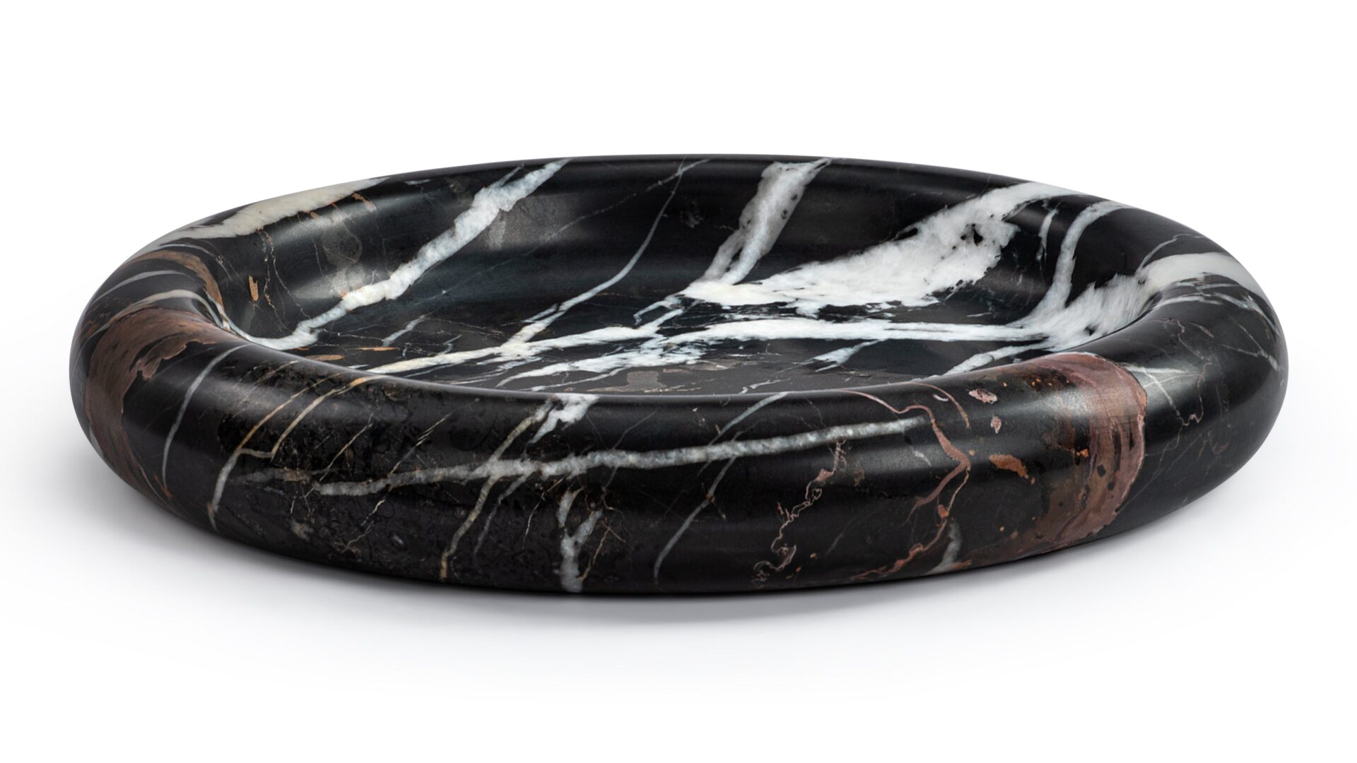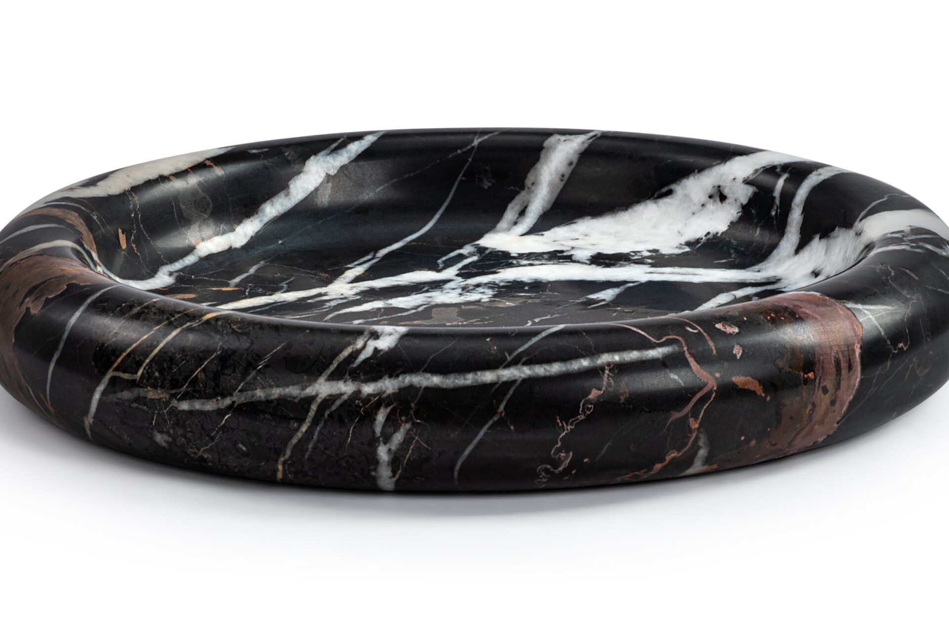 Elevate your space with the Sicily Tray, meticulously crafted from solid marble. This exquisite piece seamlessly combines artistic form with functional design. Its smooth, curved shape boasts a subtle concave surface, perfect for displaying trinkets, jewelry, or cherished items. Each tray is a one-of-a-kind masterpiece, showcasing natural veining and intricate patterns that bring a touch of refinement to any room.