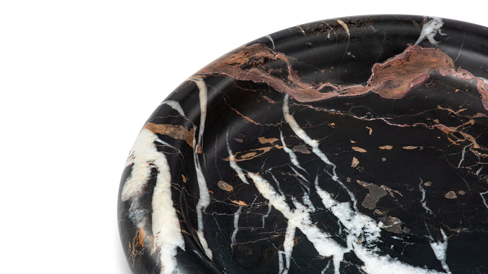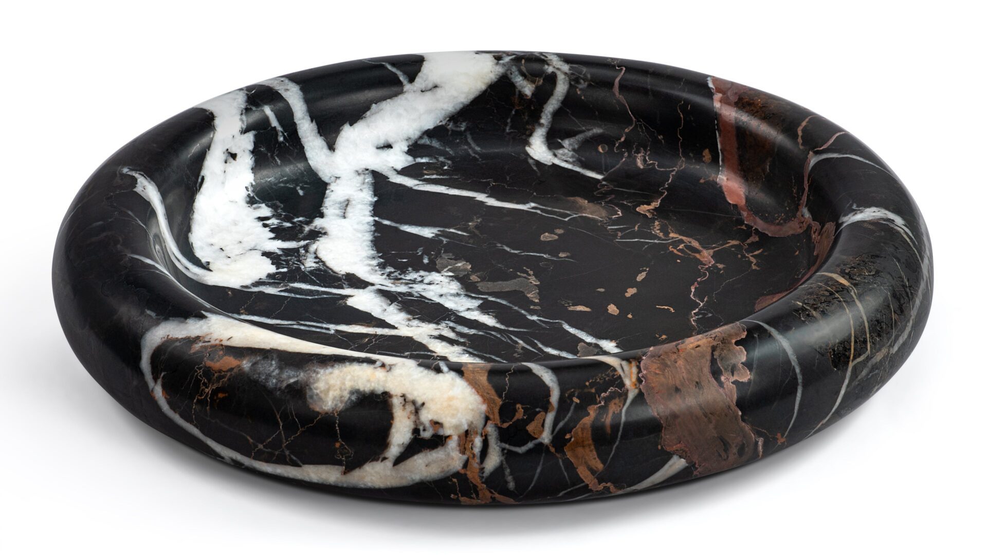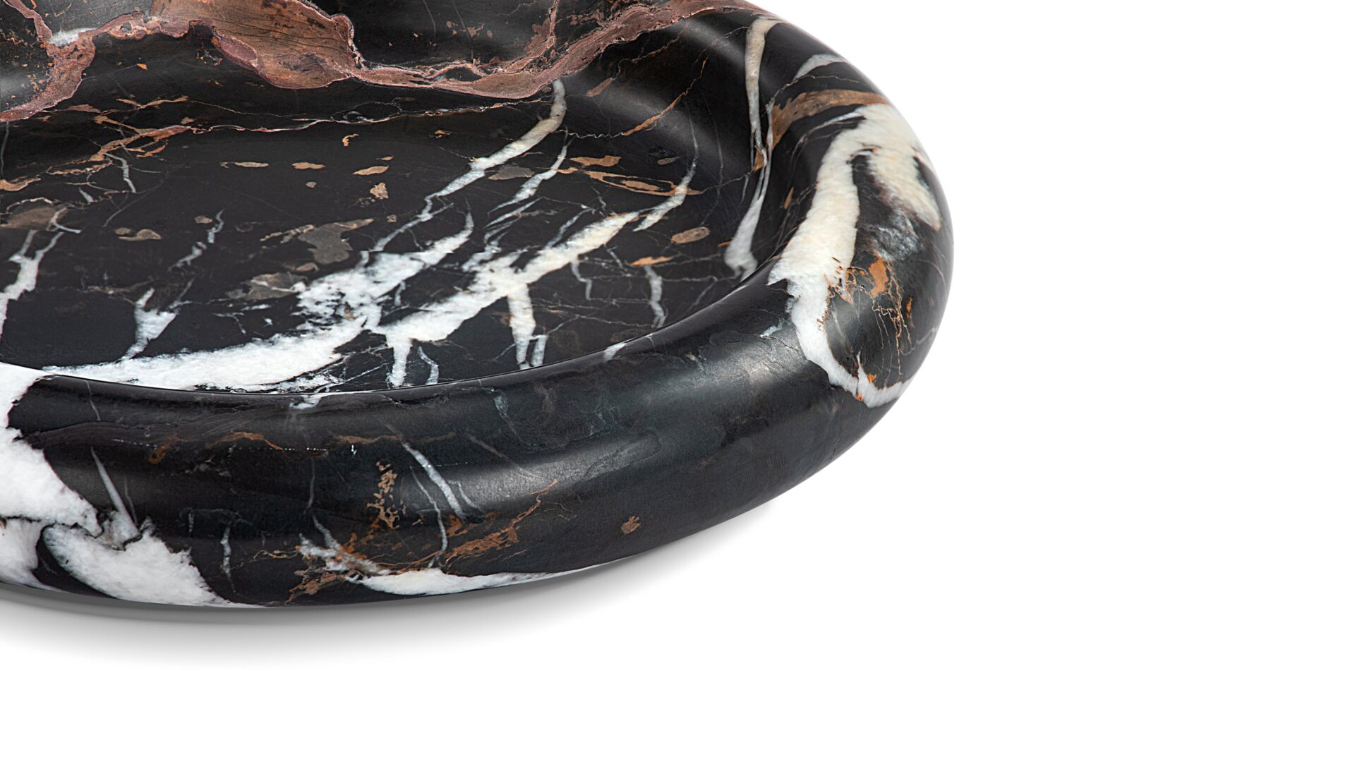 Elevate your space with the Sicily Tray, meticulously crafted from solid marble. This exquisite piece seamlessly combines artistic form with functional design. Its smooth, curved shape boasts a subtle concave surface, perfect for displaying trinkets, jewelry, or cherished items. Each tray is a one-of-a-kind masterpiece, showcasing natural veining and intricate patterns that bring a touch of refinement to any room.