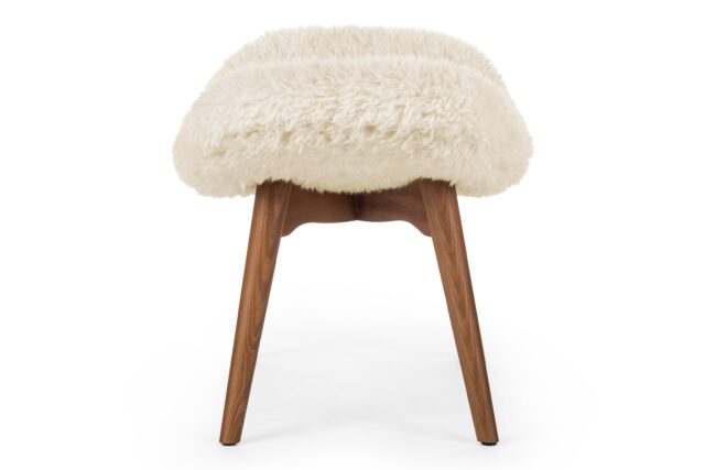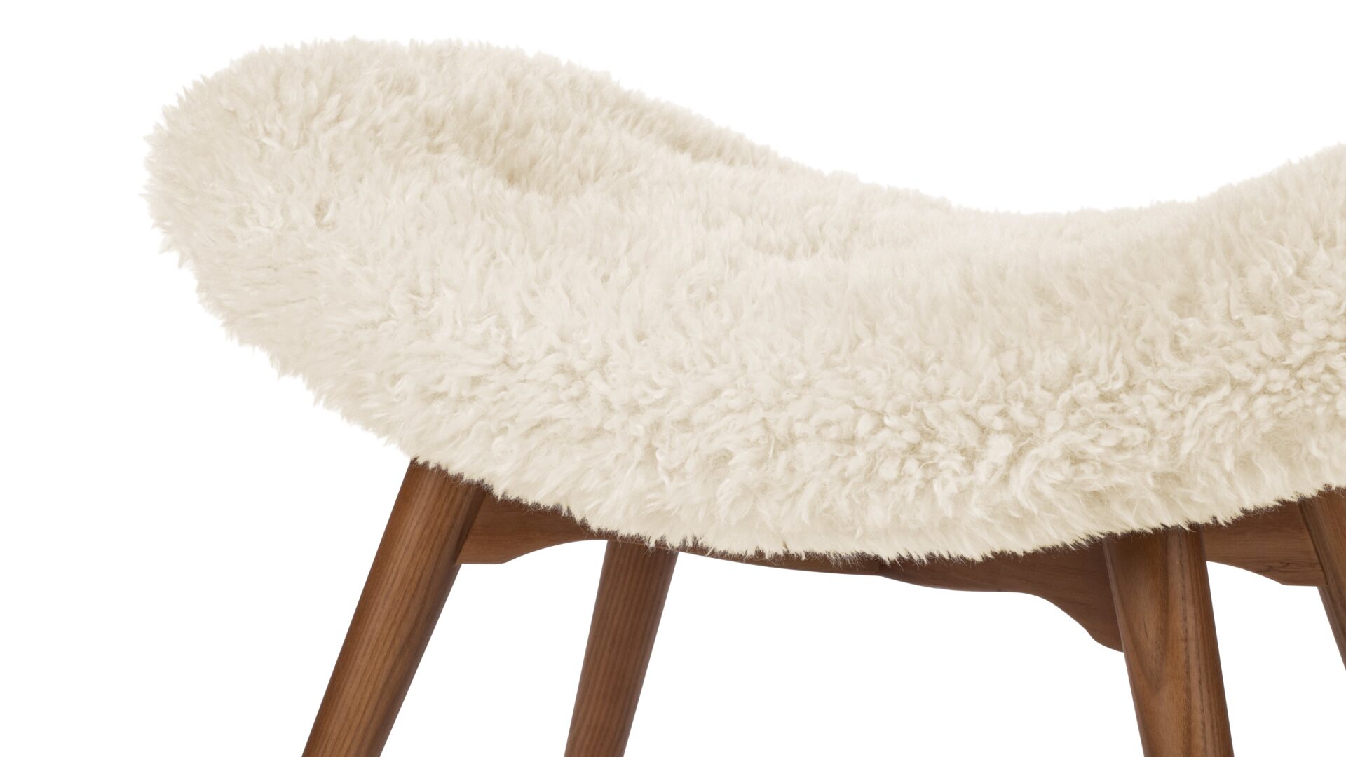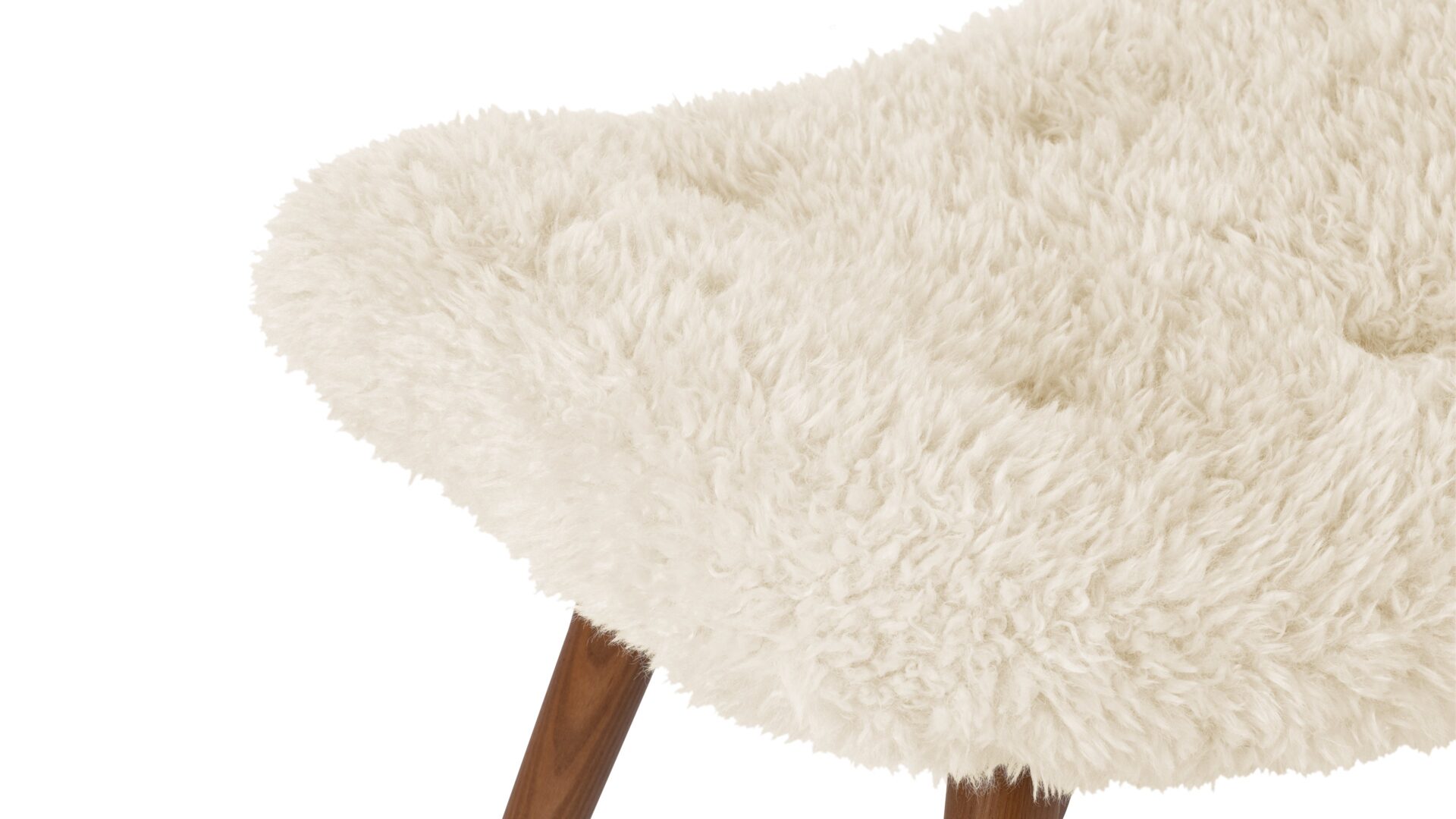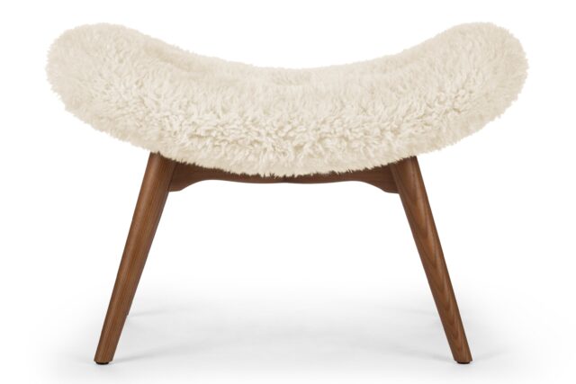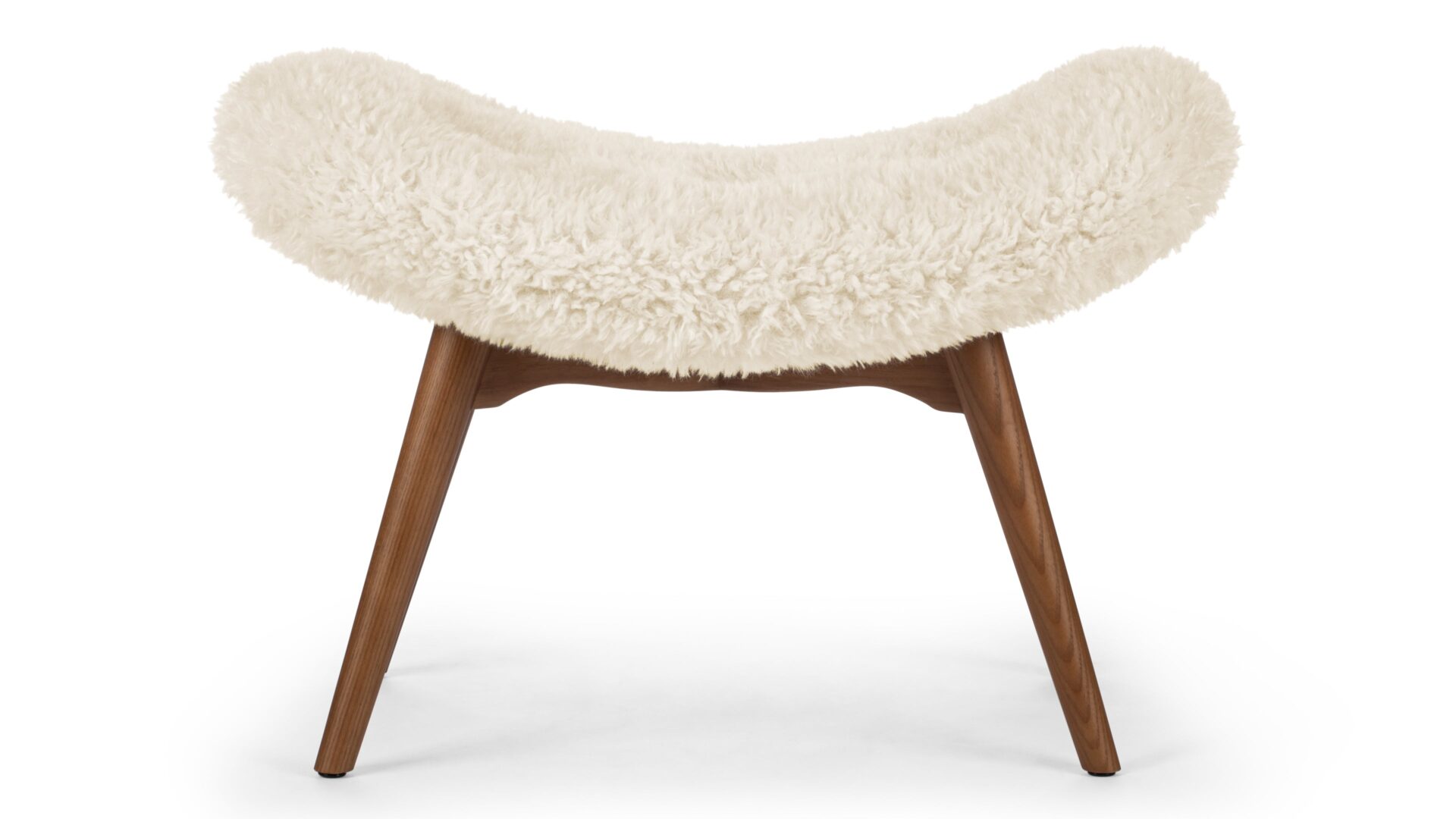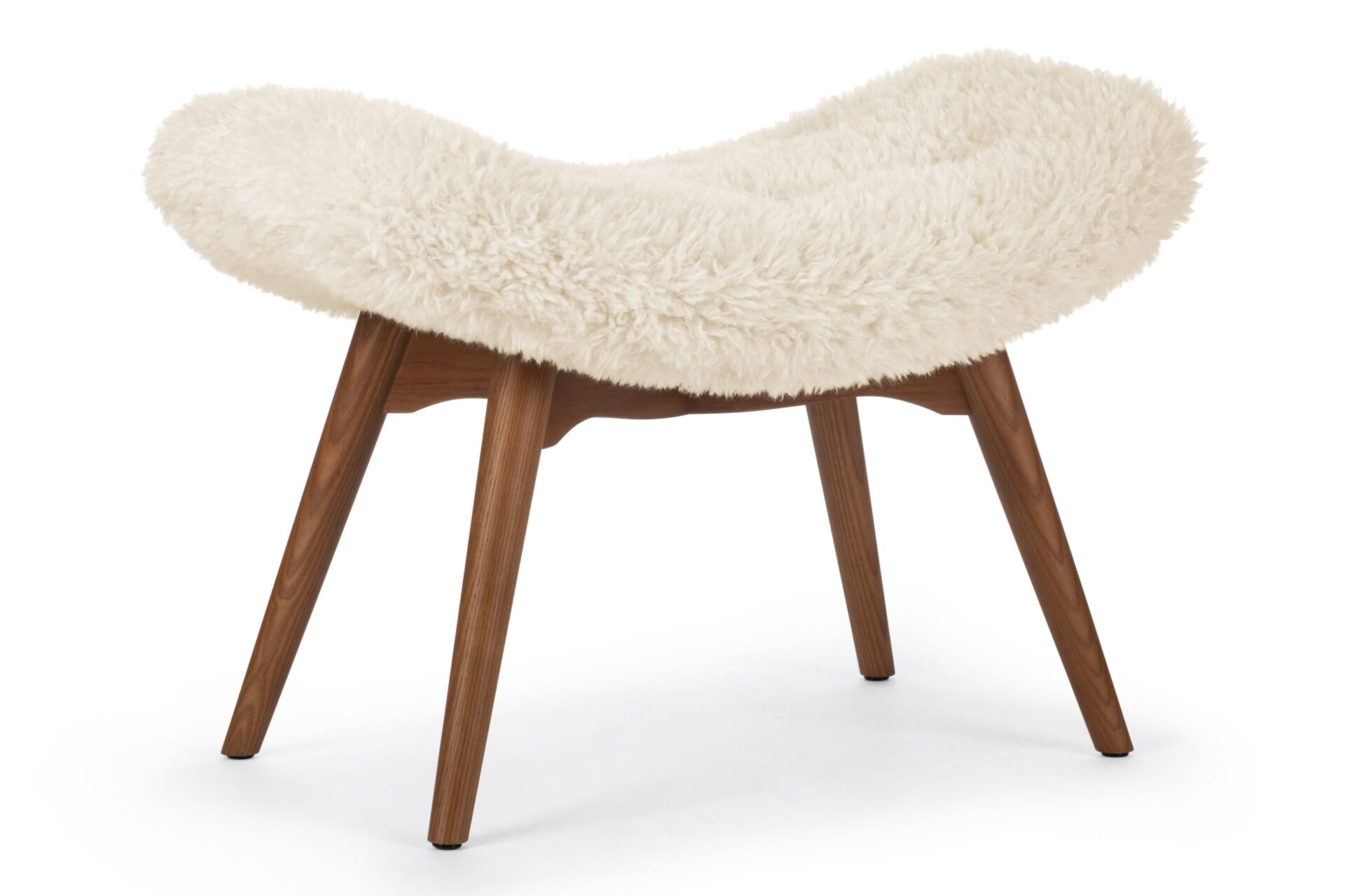 The Silhouette Ottoman showcases luxurious faux fur upholstery that exudes softness and fluffiness, resulting in a warm and inviting feel perfect for relaxation. Presented in a calming cream hue, the footstool harmonizes effortlessly with the warm wood finish of its legs. With gently sloping sides, this piece harmoniously blends comfort and style.