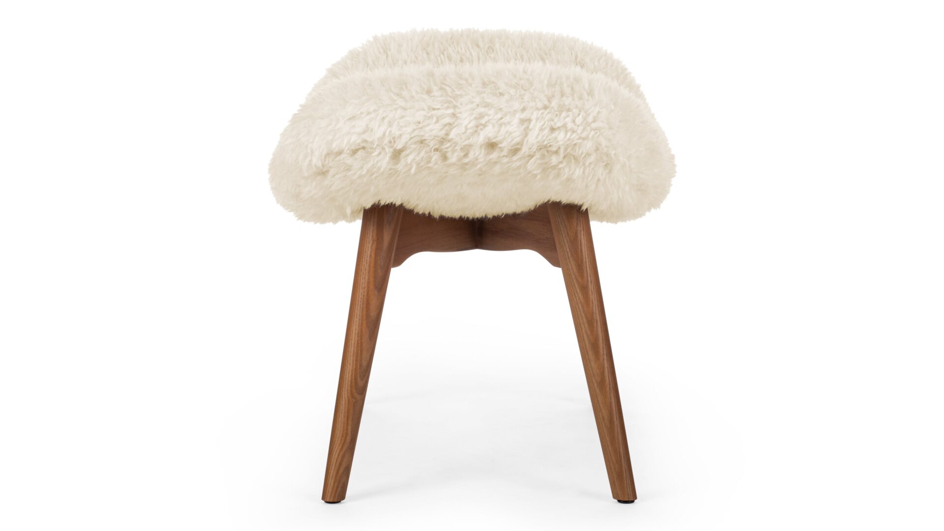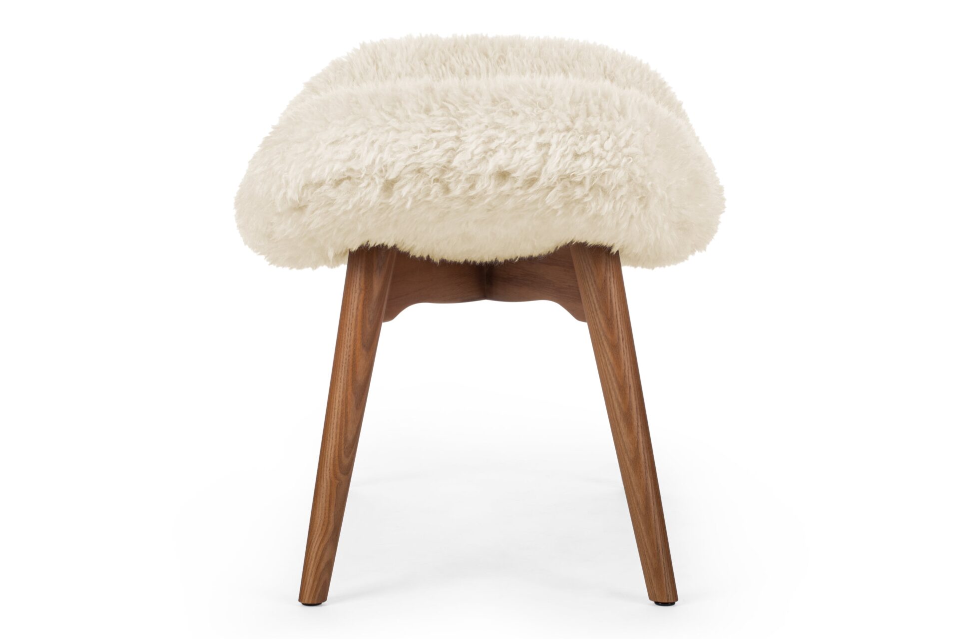 The Silhouette Ottoman is a luxurious piece with faux fur upholstery that triggers a feeling of warmth and relaxation. Its calming cream tone and warm wood legs create a seamless blend of comfort and style. The ergonomically shaped top provides exceptional support, while tufted detailing adds allure. Embrace comfort and style with this visually appealing addition, perfect for any room.