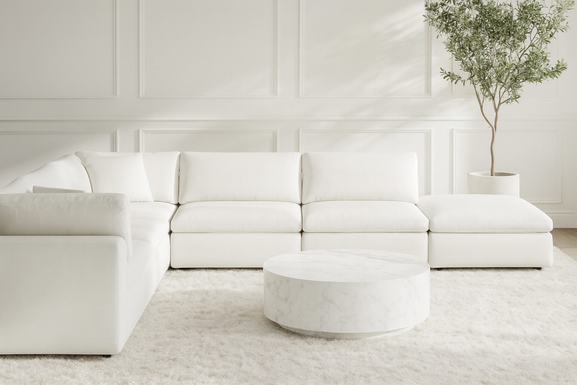 Versatile Luxury: White Linen Sky Sofa