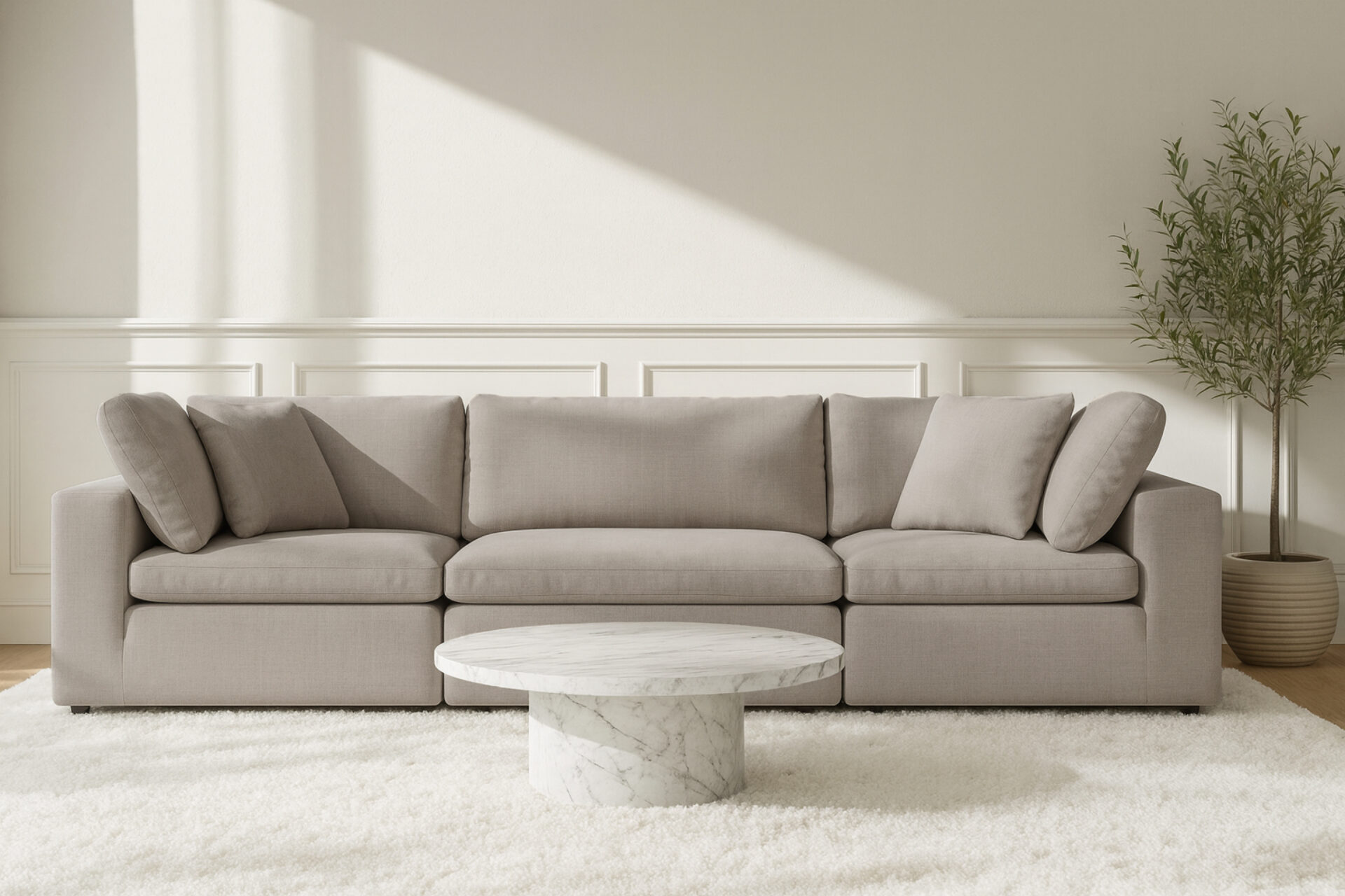 Elevate your living space with the luxurious Sky Sofa, upholstered in premium Beige Linen for a timeless and elegant touch. Its modular design allows for personalized seating arrangements, ensuring unparalleled comfort with plush cushions. Create a personalized oasis that seamlessly fits your style aesthetic, making every moment a cozy and stylish experience.