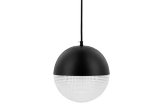 The Sol Pendant Light showcases a sizable globe as its main feature, complemented by glass embellishments on the underside. The intricate glasswork combined with the spherical metal top evokes a 1920s design aesthetic, offering a gentle diffused light effect. Available in timeless hues, this light effortlessly enhances a variety of interior styles. Hung from a single cord, the fixture retains an airy look while making a bold statement, ideal for spaces requiring a striking focal point.