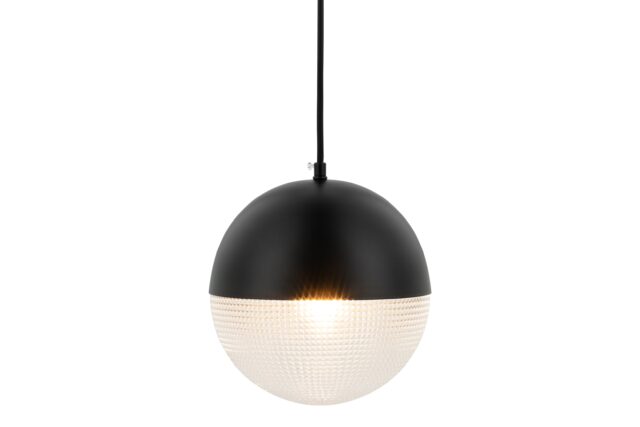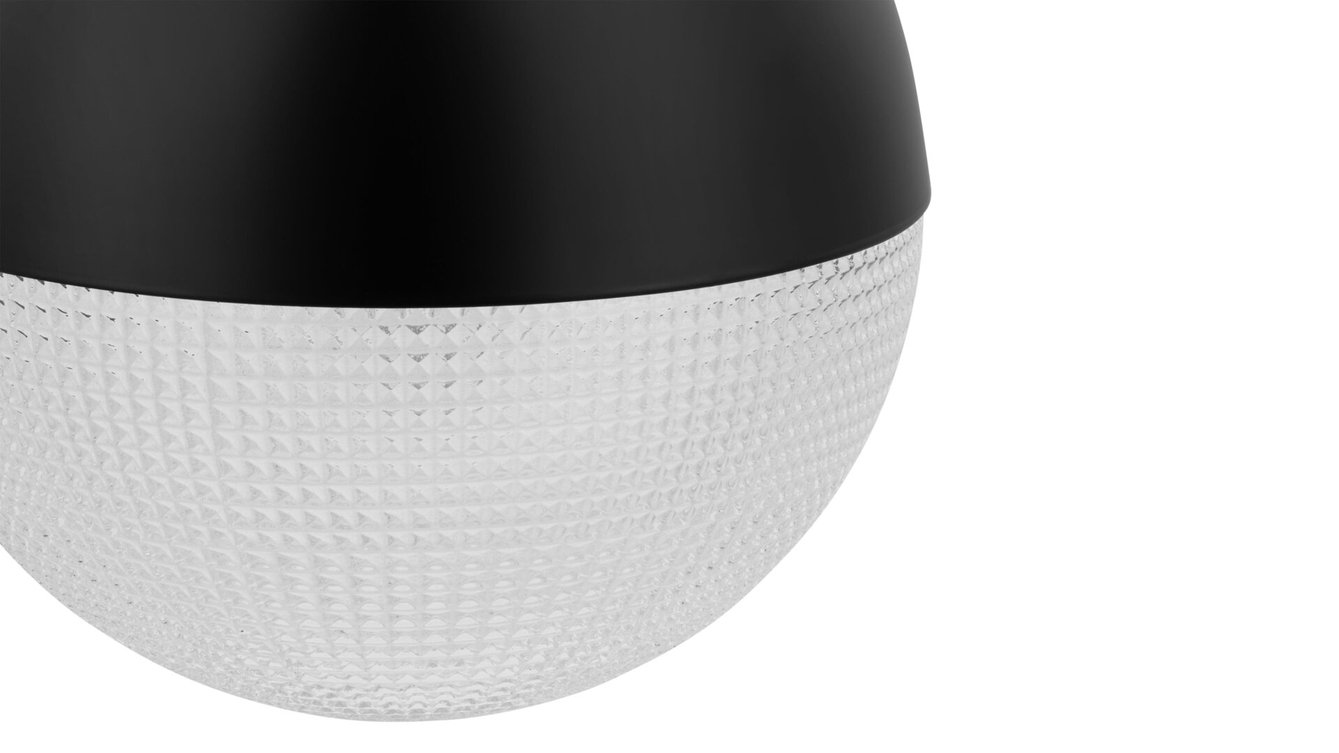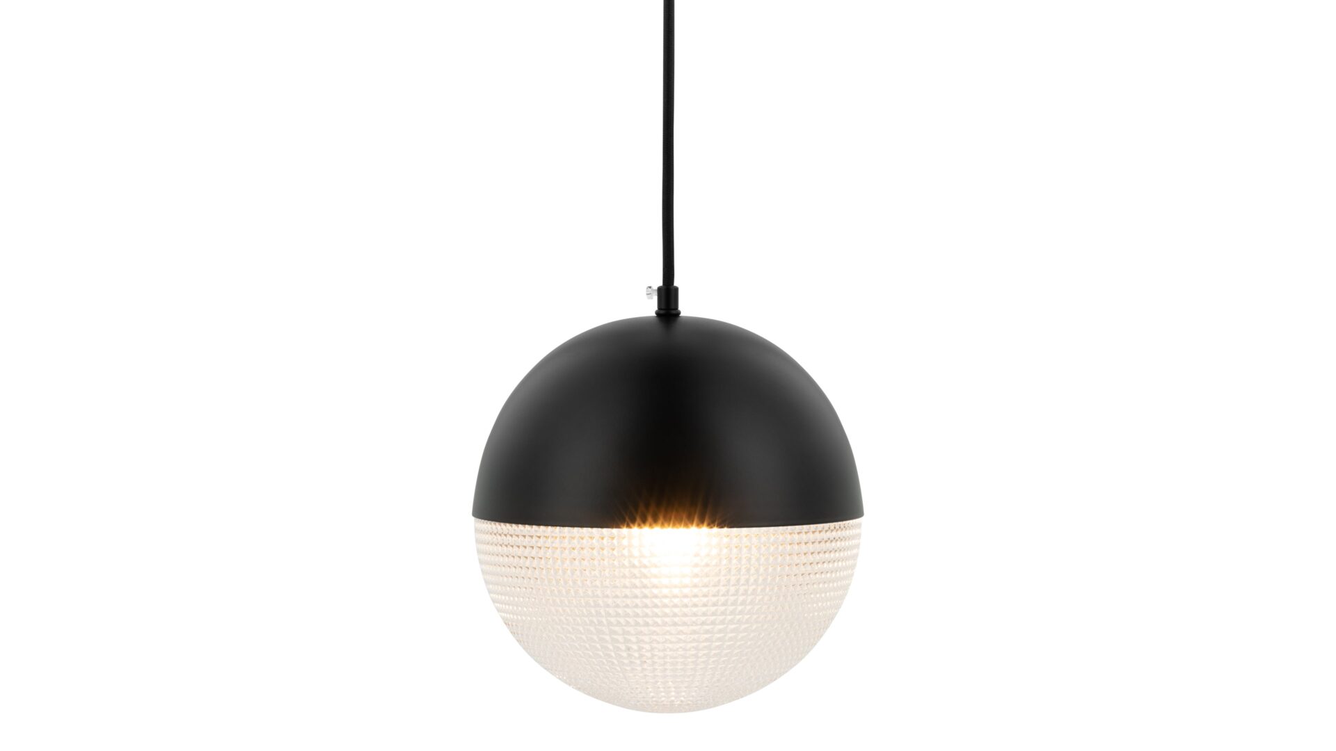 Emanate sophistication with the Sol Pendant Light boasting a substantial black globe adorned with intricate glasswork, embodying a 1920s design aesthetic. Its timeless black hue enhances a range of interiors, casting a soft diffused light effect. Hung elegantly from a single cord, this chic fixture creates a bold focal point, ideal for spaces in need of a striking touch.