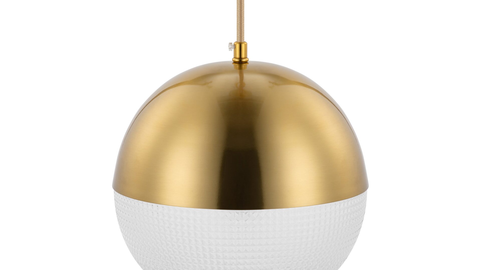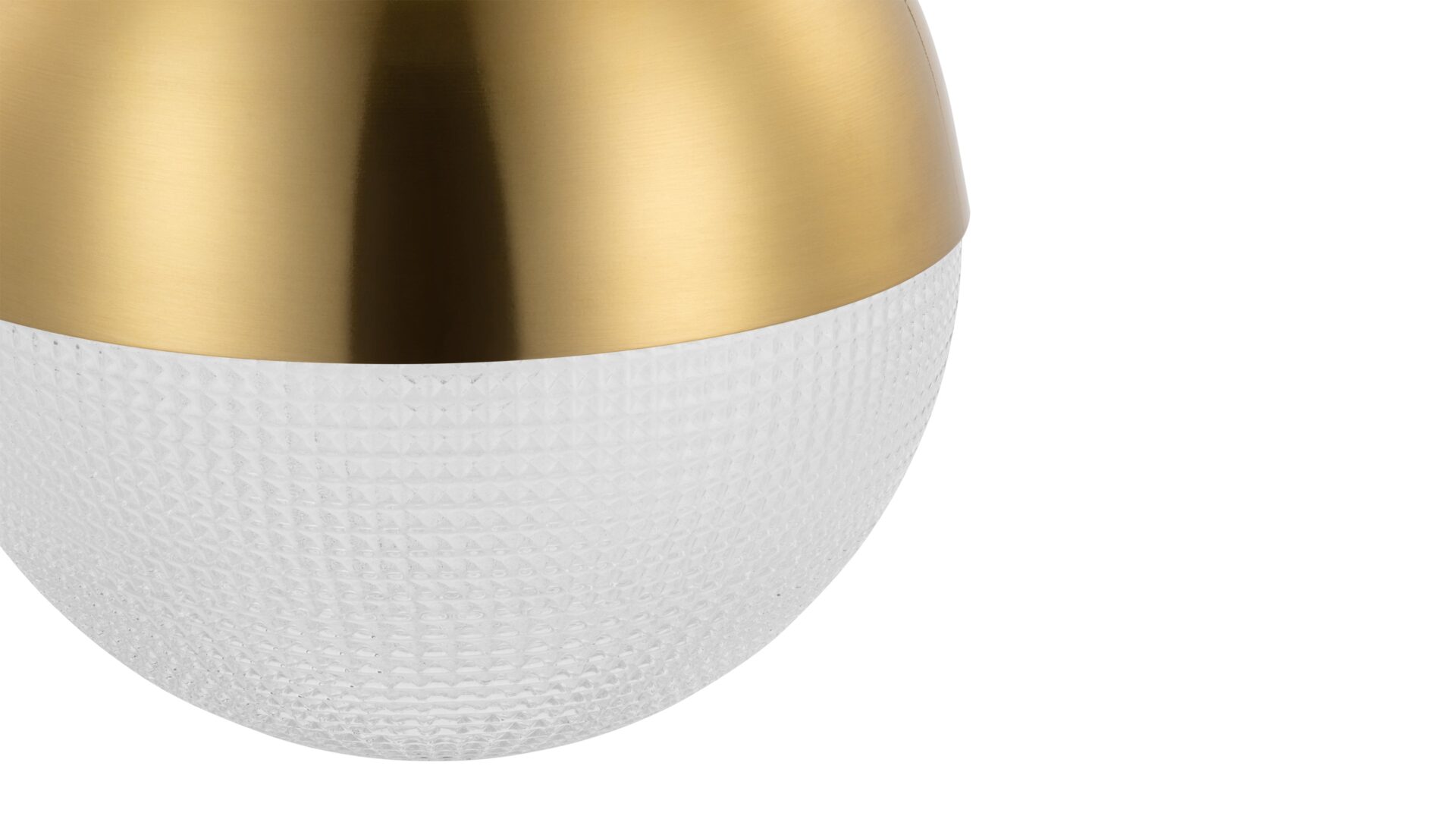Introducing the Sol Pendant Light, boasting a large globe accompanied by brass embellishments and intricate glasswork underscoring an Art Deco design influence reminiscent of the 1920s. Emitting a gentle diffused light, this fixture, available in timeless brass hue, is an ideal centerpiece to enhance any interior style, perfect for creating a striking focal point with a touch of chic sophistication.