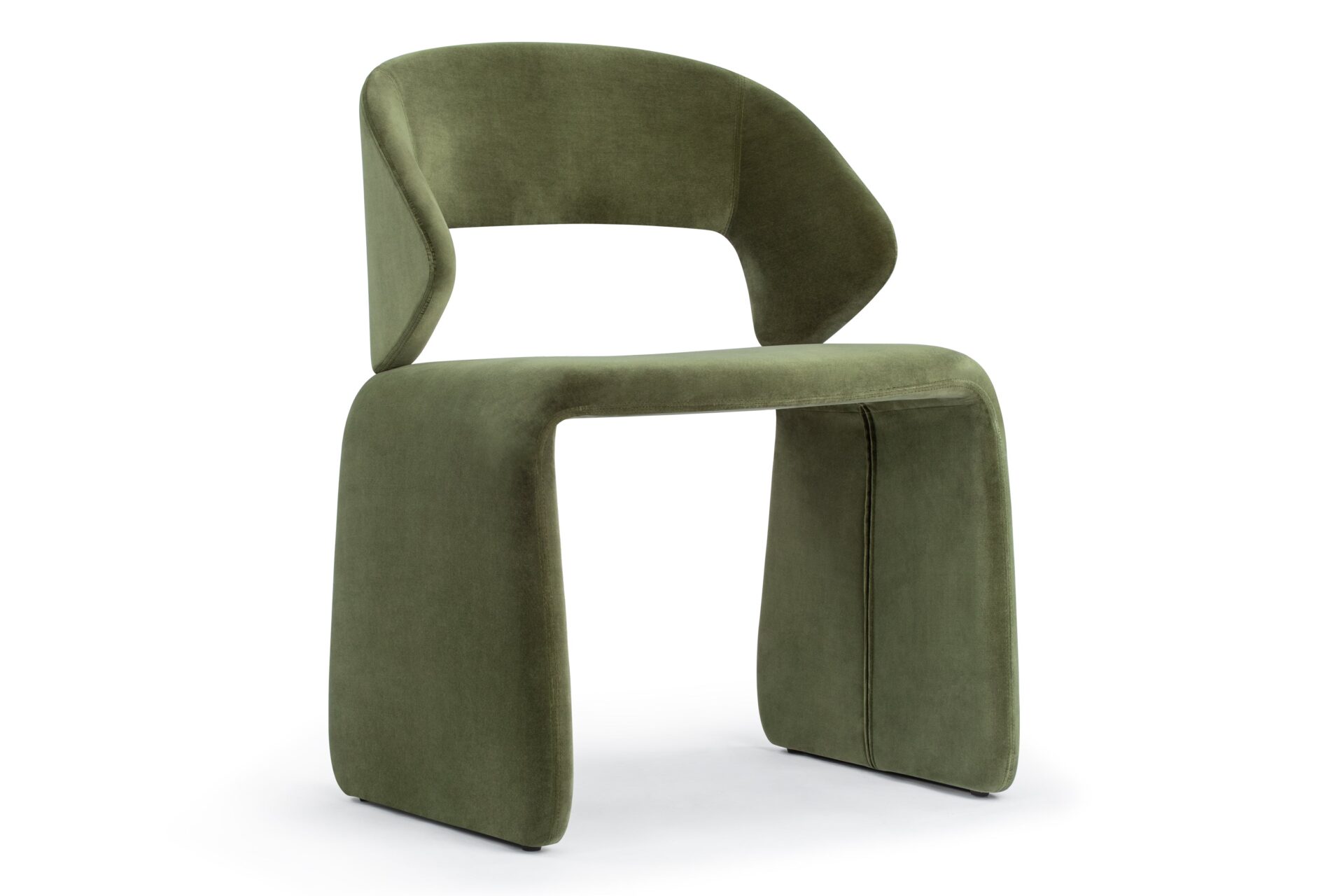Introducing the Suit Chair, a contemporary masterpiece that blends bold design with opulent comfort. Its flowing frame creates a visually stunning silhouette, making it a remarkable focal point in any space. Adorned in sumptuous velvet upholstery in olive green or burnt orange, this chair combines style and functionality with plush foam padding and an ergonomically curved backrest for optimal support during extended seating. Enjoy sculptural elegance and enduring comfort with the Suit Chair, a premium piece designed with luxurious velvet upholstery and sturdy legs for stability. Crafted with a gently curved backrest for good posture and versatility for dining, working, or lounging, this chair effortlessly elevates your space with a sophisticated and artistic allure.