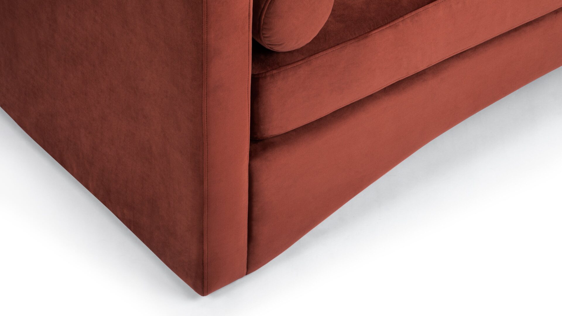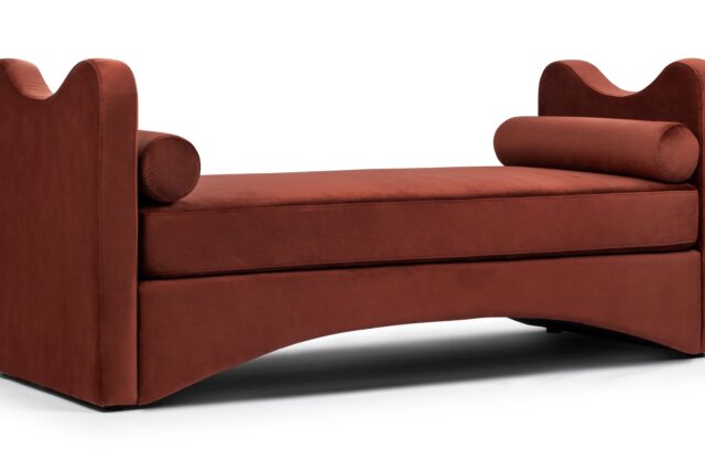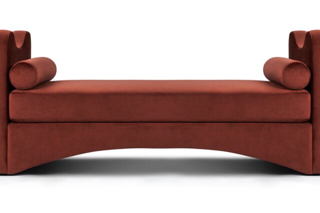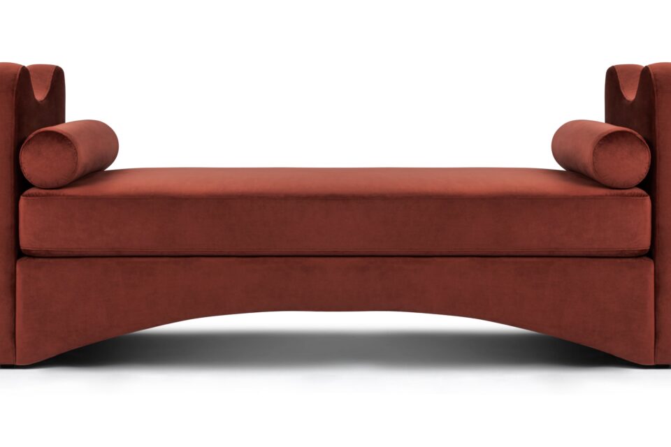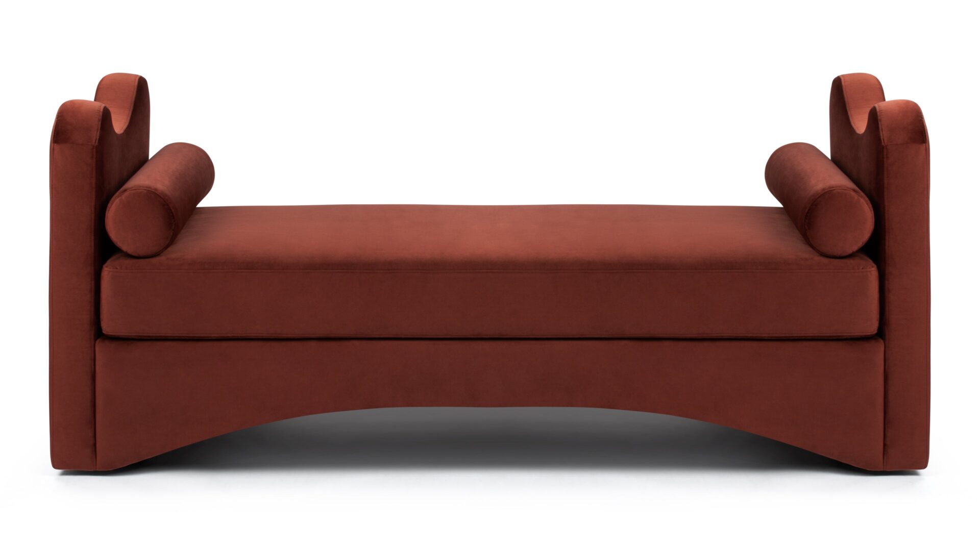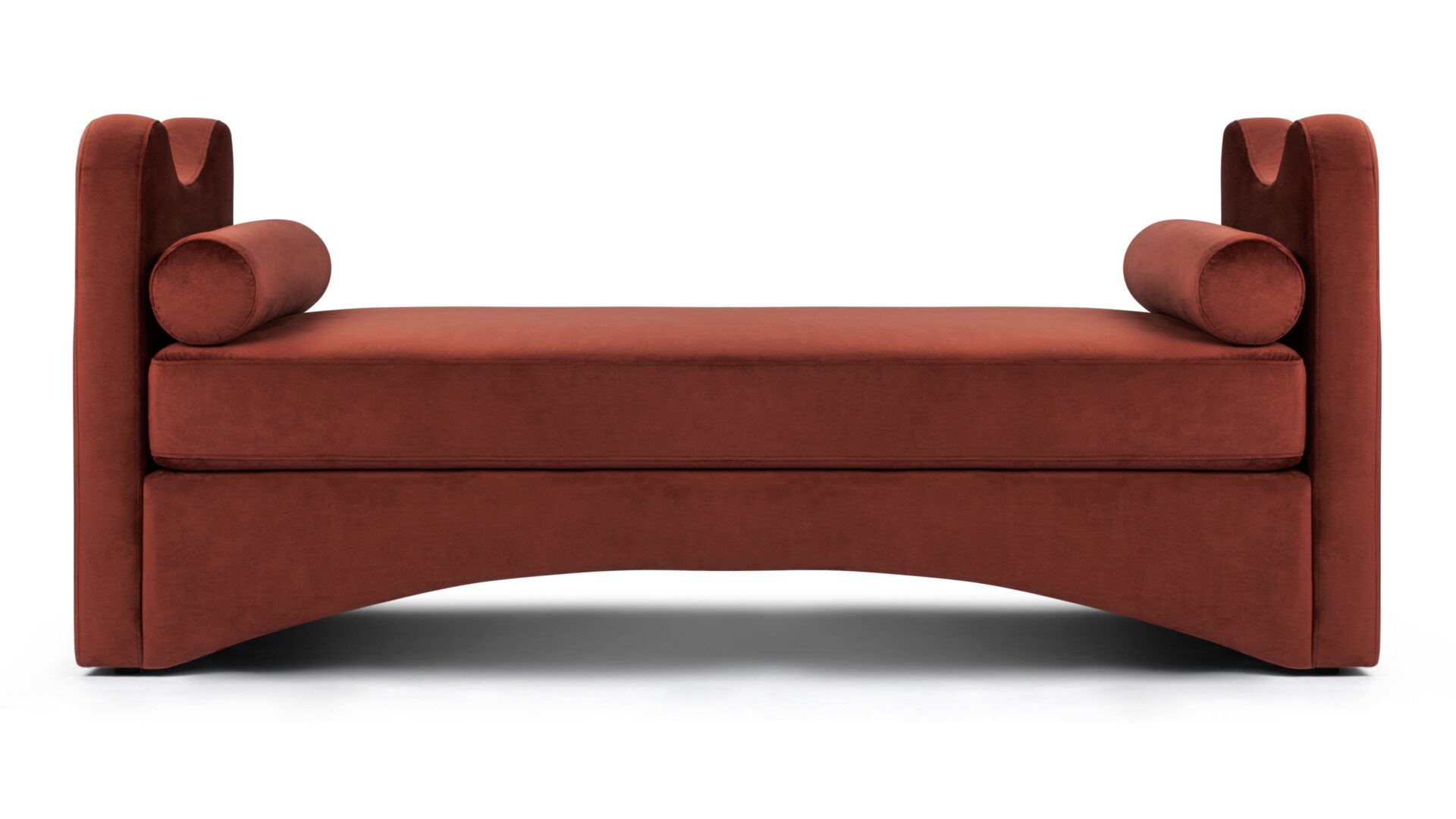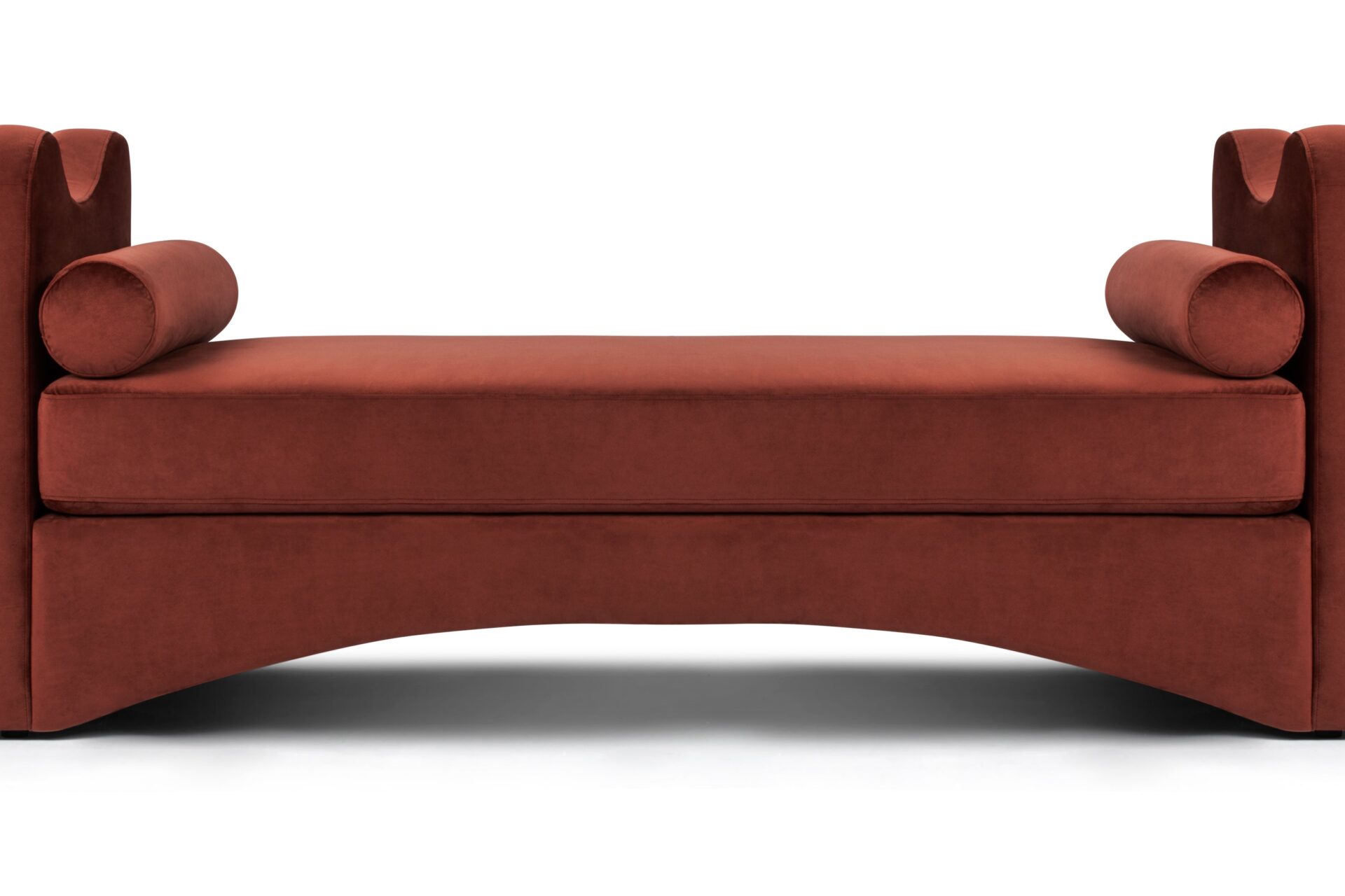 Experience a blend of modern elegance with the Tana Daybed featuring luxurious burgundy velvet, graceful curves, and minimalist charm. This piece serves as a striking focal point in any space, effortlessly combining sophistication with a hint of artistic flair.