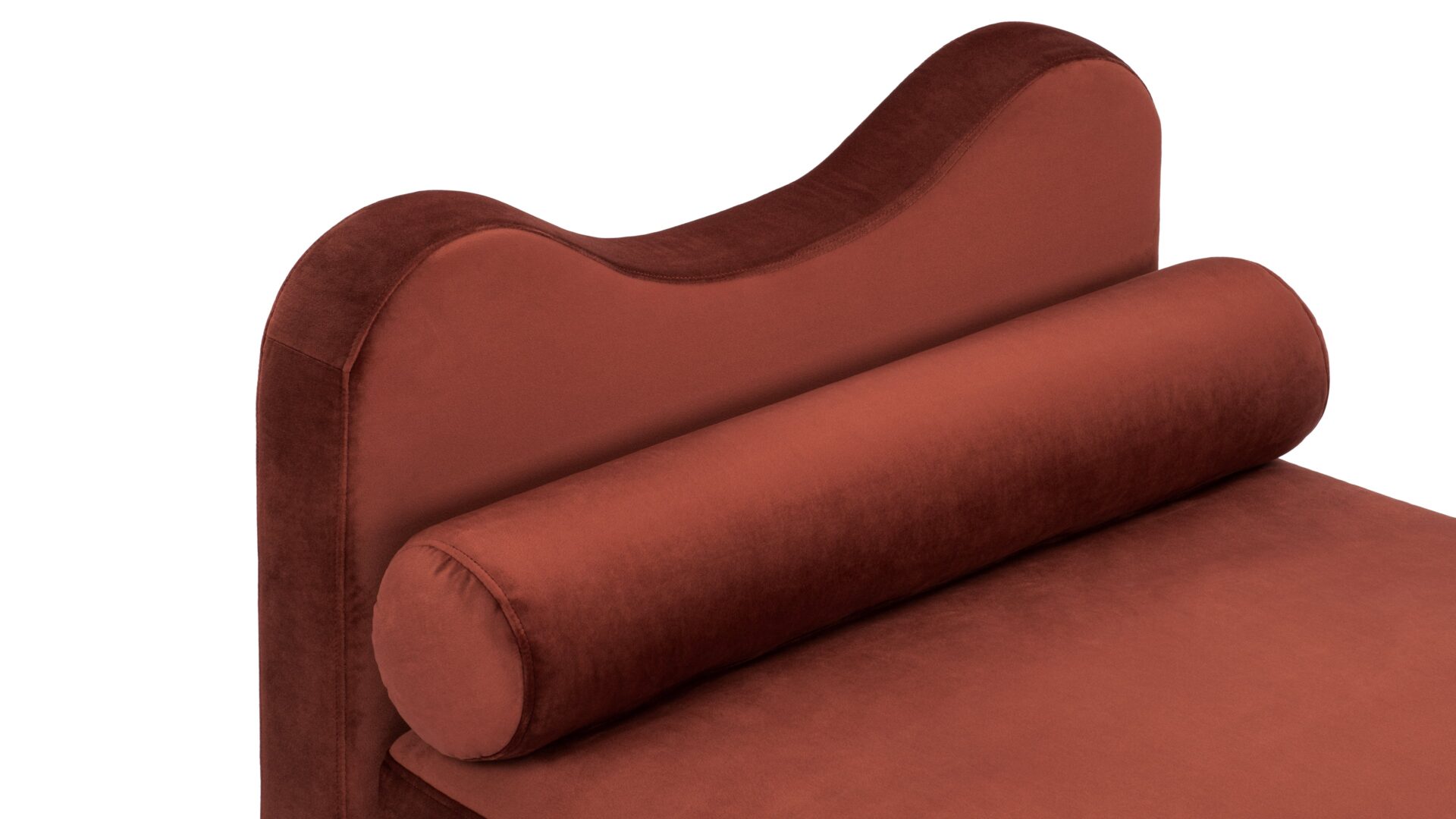 Luxuriate in the elegance of the Tana Daybed, a versatile and opulent furniture piece upholstered in soft velvet in a sumptuous burgundy hue. Its adaptable design effortlessly transitions between a relaxing lounge and a tasteful bench. The mobile bolster cushions offer both comfort and design options, while the robust solid wood frame ensures durability and stability.