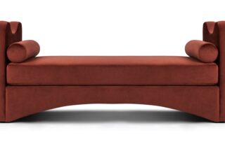 Experience a blend of modern elegance with the Tana Daybed featuring luxurious burgundy velvet, graceful curves, and minimalist charm. This piece serves as a striking focal point in any space, effortlessly combining sophistication with a hint of artistic flair.