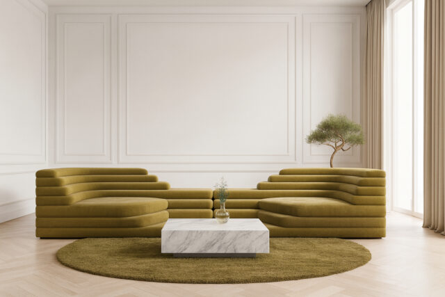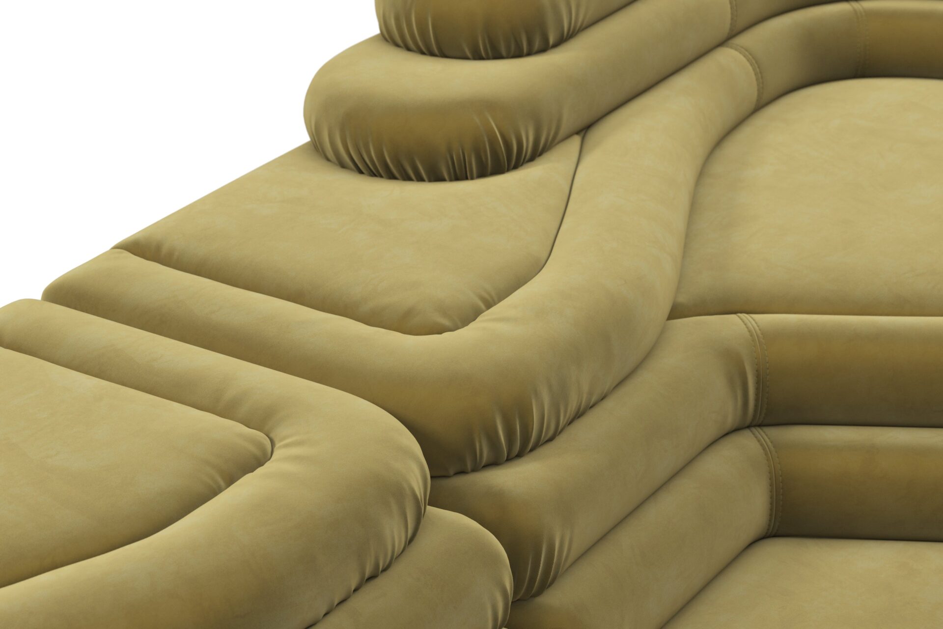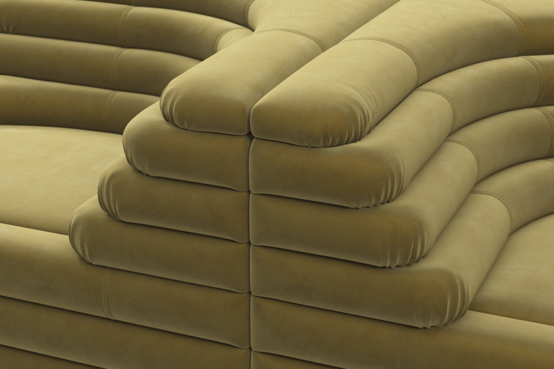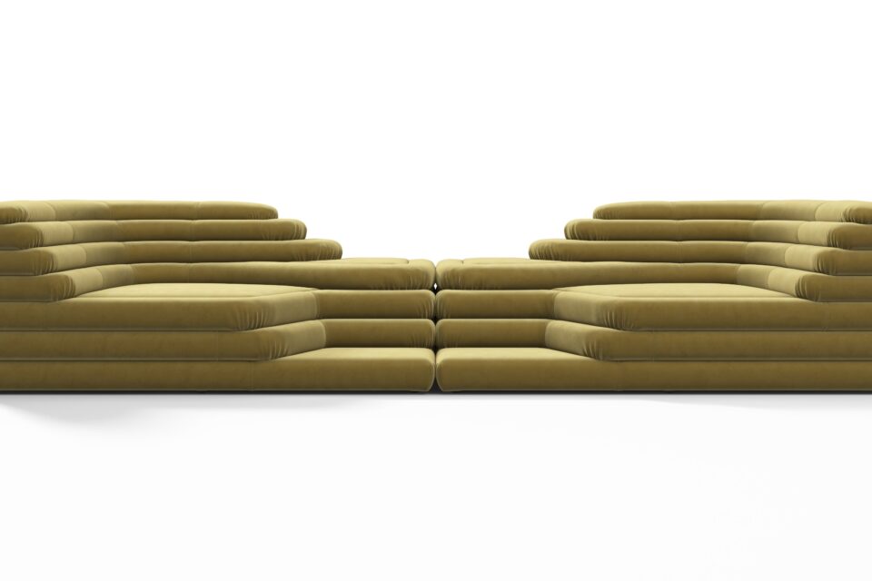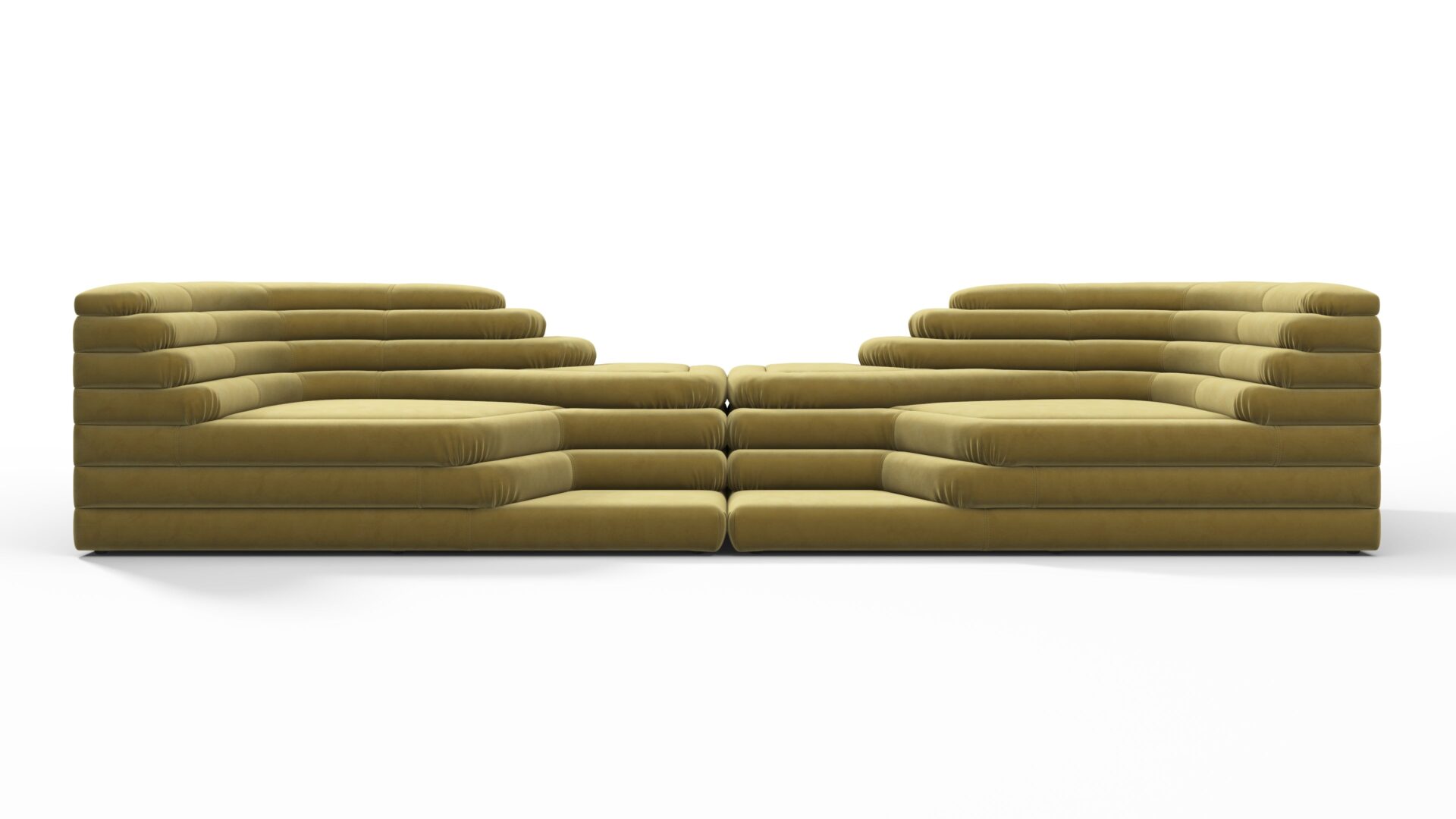 Introducing the Terrazza Sofa, a stunning masterpiece that redefines opulence and artistry. This exceptional sofa harmoniously blends geometric shapes and textures with sleek contours and daring angles for a visually captivating experience. Luxuriously upholstered in premium Olive Gold Velvet, the Terrazza Sofa exudes lavishness and refinement, making it a must-have for discerning connoisseurs.