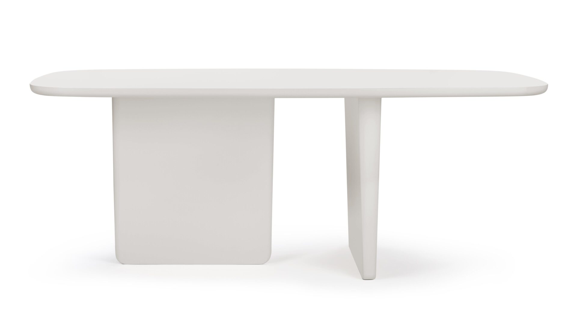 Experience the sophisticated allure of the Tobi Ishi Dining Table. With its crisp white finish, gentle curved edges, and unique asymmetrical legs, this table brings a modern and peaceful ambiance to your space.