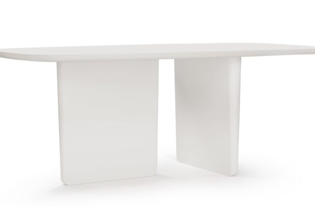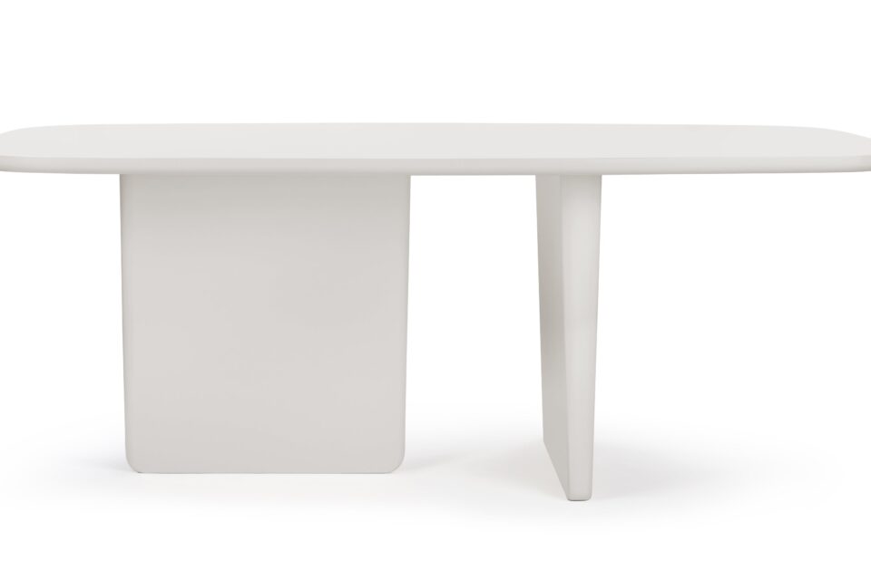 Discover unparalleled comfort and style with the Tobi Ishi Dining Table, effortlessly accommodating up to six individuals. Featuring a pristine white-painted finish and a sleek minimalist design, this table is an excellent choice for contemporary spaces, balancing sophistication with practicality. The gentle rounded edges not only contribute to its chic aesthetic but also enhance safety for day-to-day use. Stand out with this table's distinctive asymmetrical plank legs, infusing a modern touch that sets it apart. Create a focal point that harmonizes simplicity and ingenuity in your dining area with this exceptional piece.