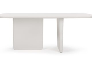 Discover unparalleled comfort and style with the Tobi Ishi Dining Table. Easily accommodating up to six individuals, the table boasts a pristine white-painted finish and a sleek minimalist design, perfect for contemporary spaces. Its rounded edges enhance safety and aesthetic appeal, while the distinctive asymmetrical plank legs add a modern touch. Elevate your dining area with this exceptional piece that harmonizes simplicity and ingenuity.