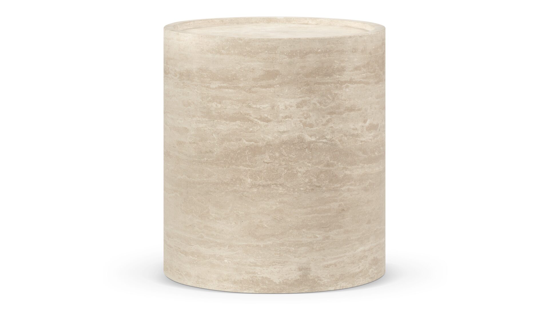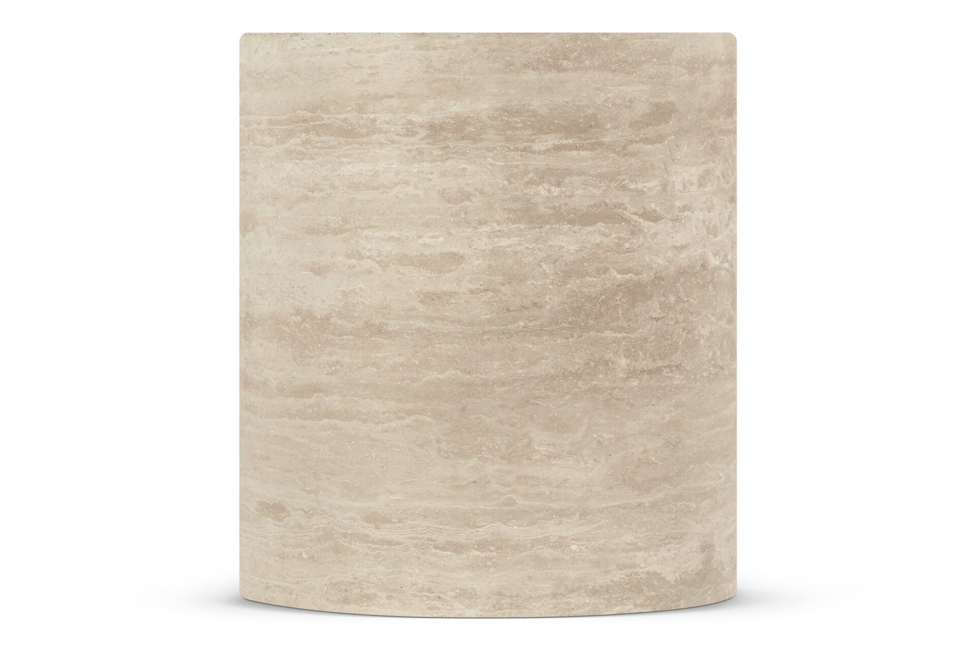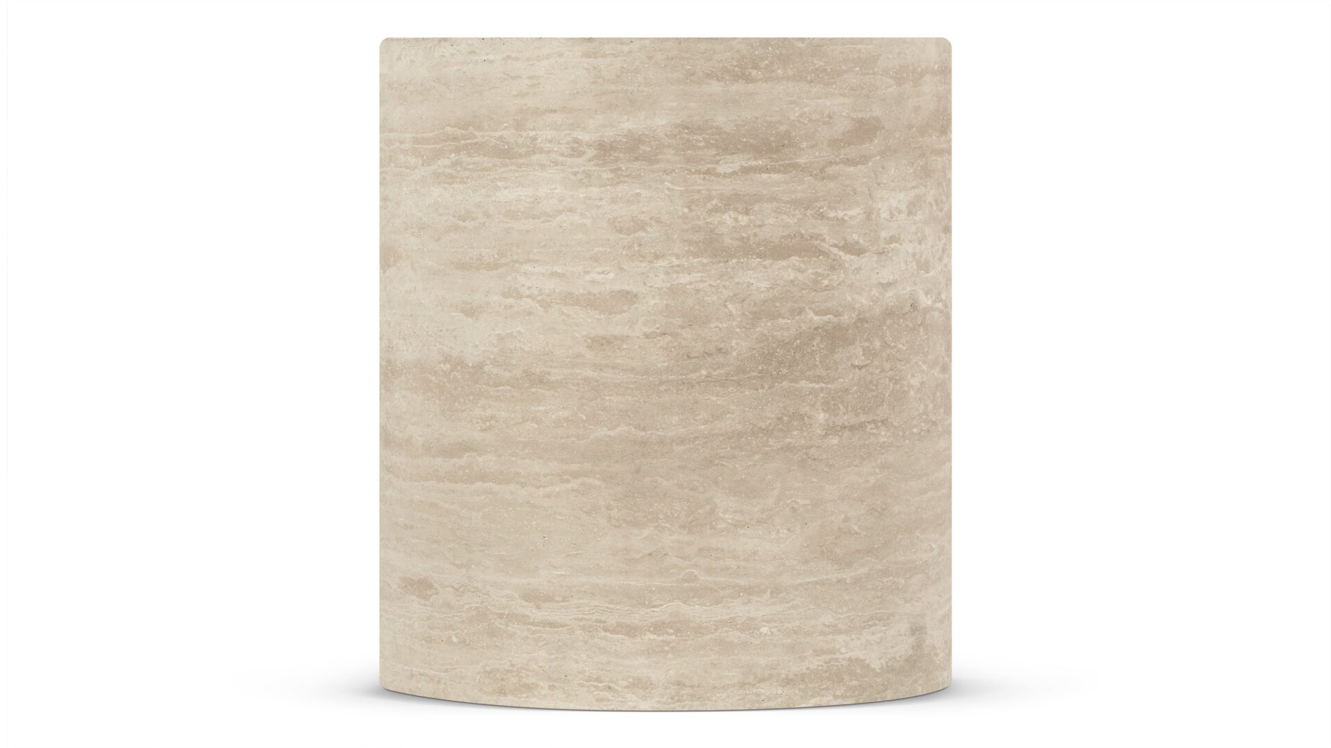 Perfect for anchoring a living room or complementing a seating arrangement, the Toren Side Table represents luxury and understated elegance. Its natural travertine surface showcases a range of warm or cool tones, ensuring versatility across various interior styles. A durable and refined choice, this table stands as a chic and robust addition to any space.