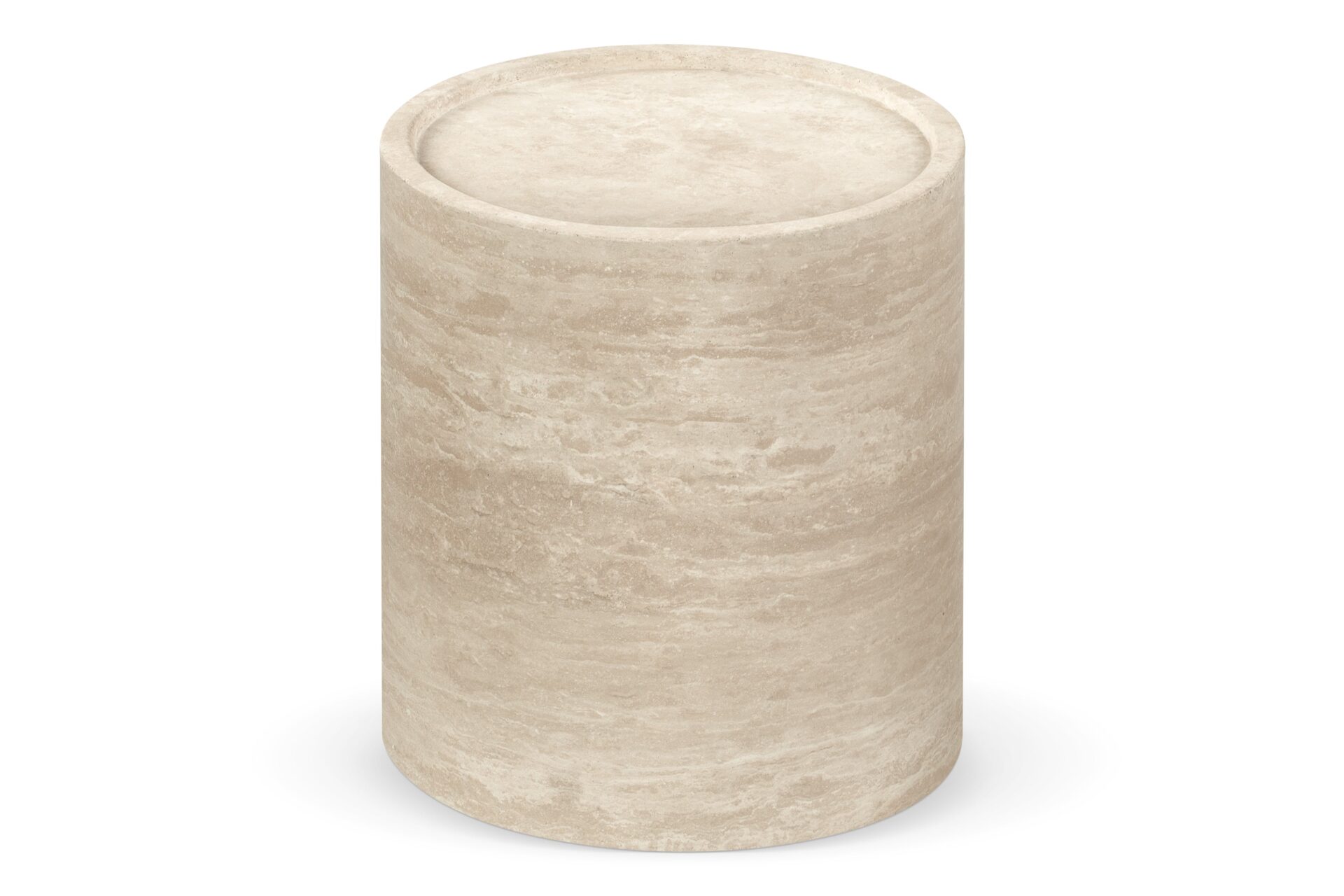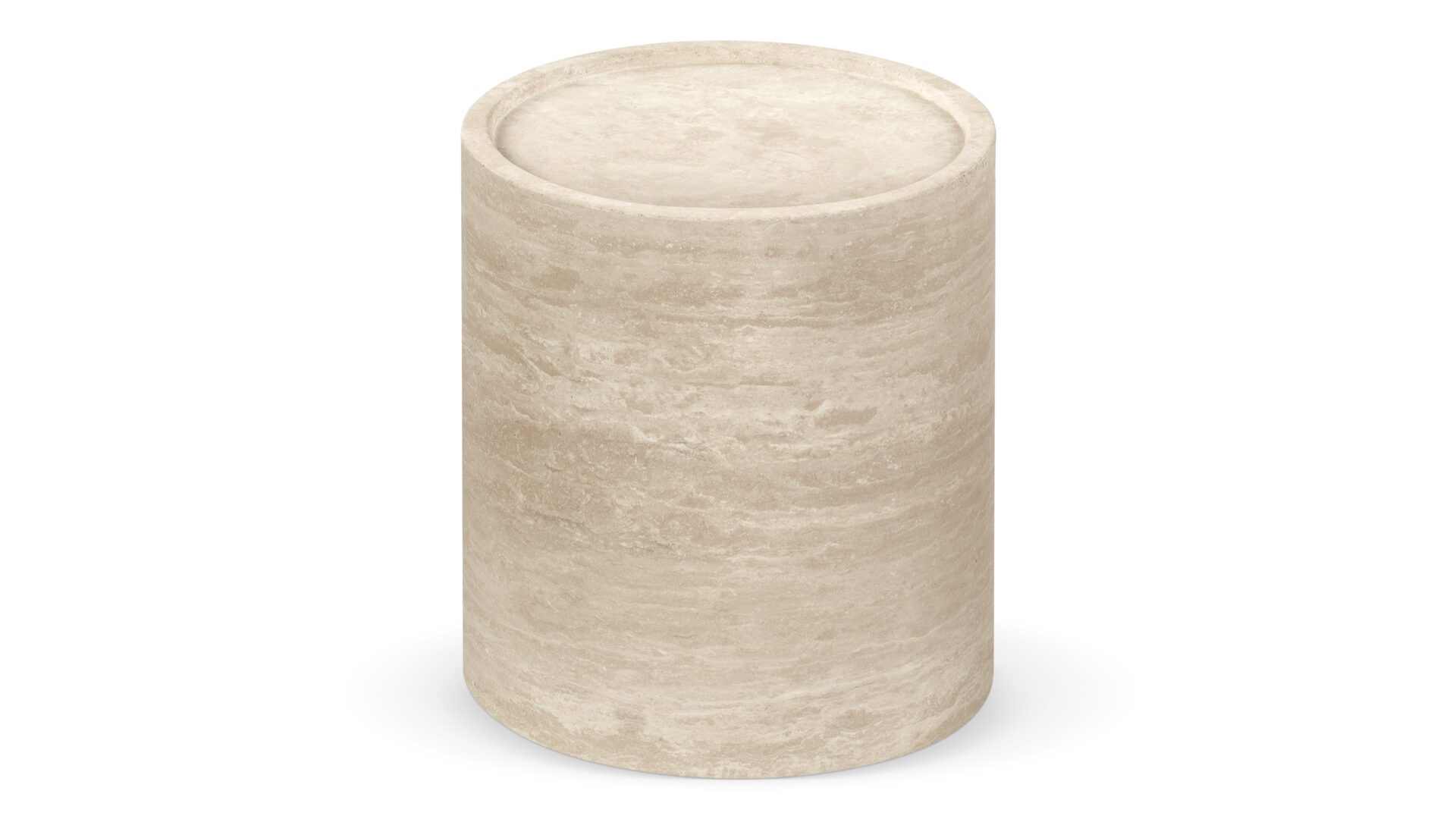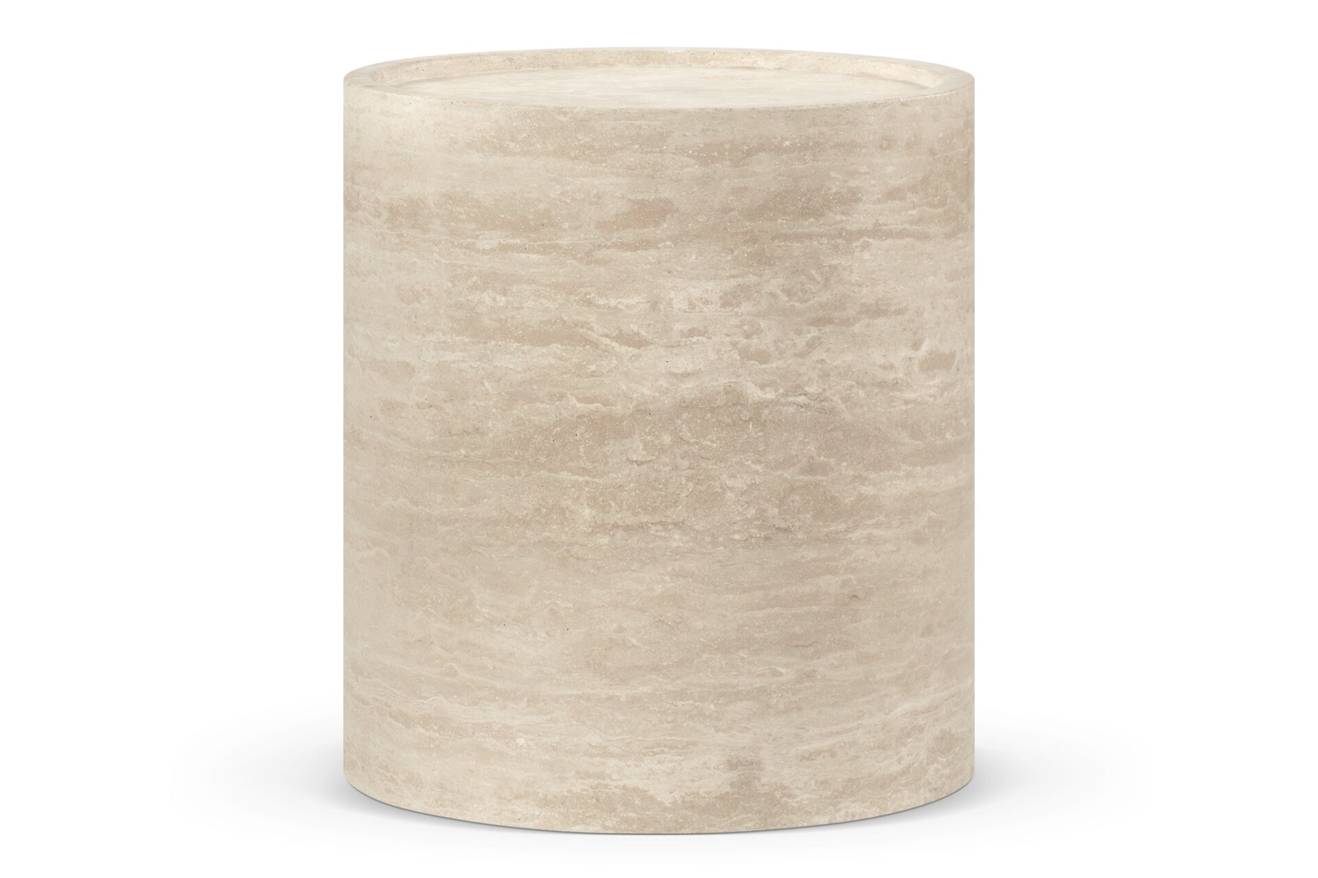 Perfect for anchoring a living room or complementing a seating arrangement, the Toren Side Table represents luxury and understated elegance. Its natural travertine surface showcases a range of warm or cool tones, ensuring versatility across various interior styles. A durable and refined choice, this table stands as a chic and robust addition to any space.