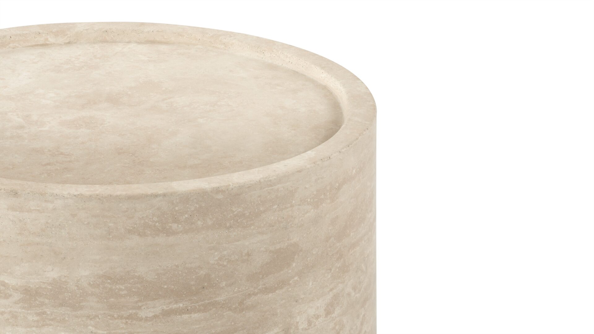 Indulge in the exquisite elegance of the Toren Side Table, meticulously crafted from stunning travertine. The table's natural surface showcases diverse vein patterns in warm or cool tones, echoing ethereal cloud-like formations. Featuring a recessed lip for added functionality and a sturdy pillar design, it seamlessly blends durability with timeless sophistication. Elevate your living space with this versatile and refined travertine masterpiece.