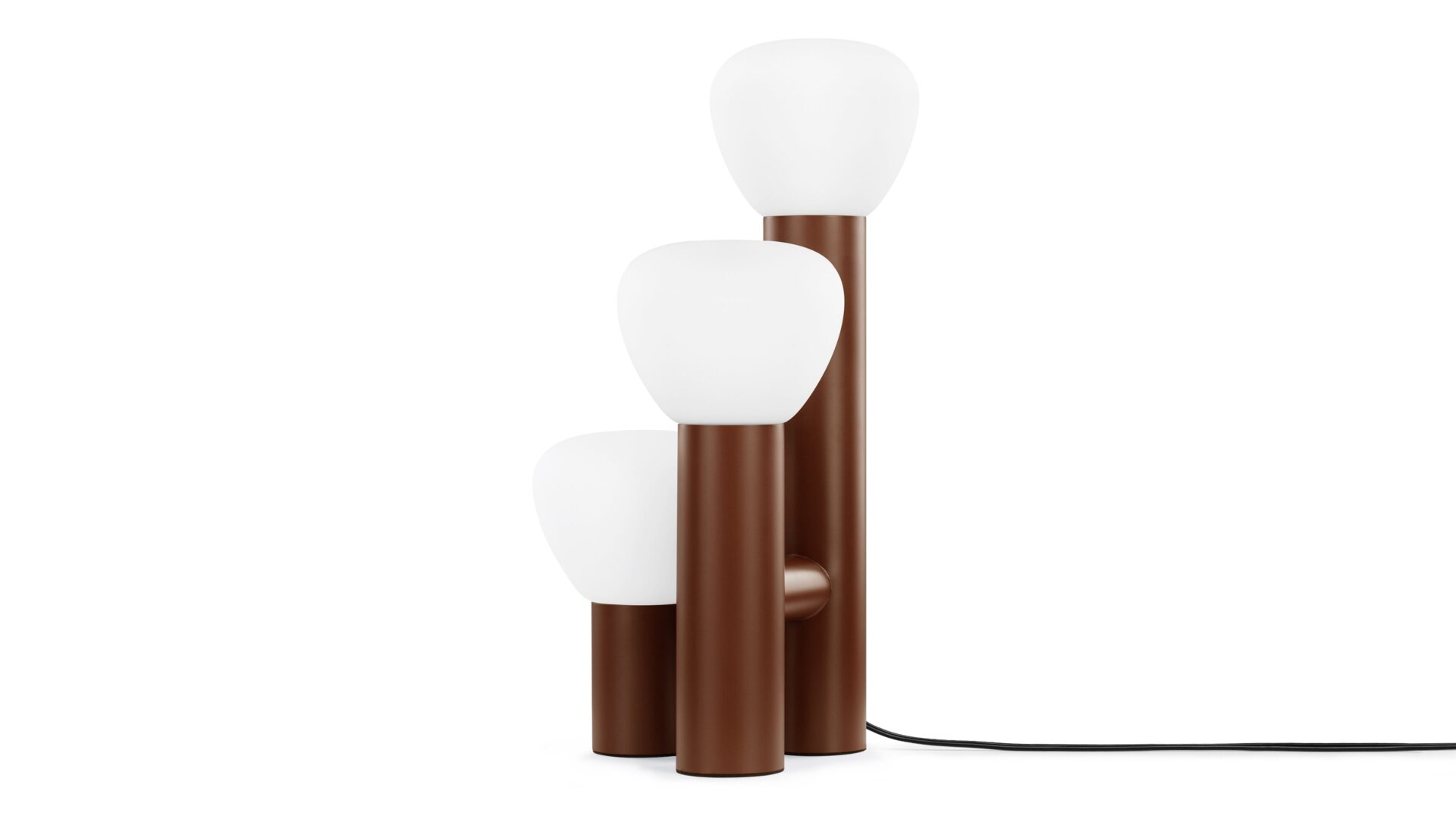 Elevate your space with the Trois Table Lamp in Brown, a captivating masterpiece that transcends mere illumination. The three interconnected lamps perform a harmonious dance, casting a warm and inviting glow that transforms any room. Crafted with sustainable materials and a timeless design, this lamp is not just a lighting fixture but a stunning work of art. Its understated elegance and refined aesthetic captivate the imagination, setting a sophisticated tone for any space.