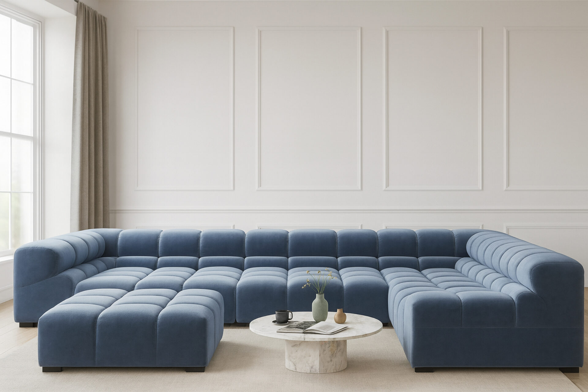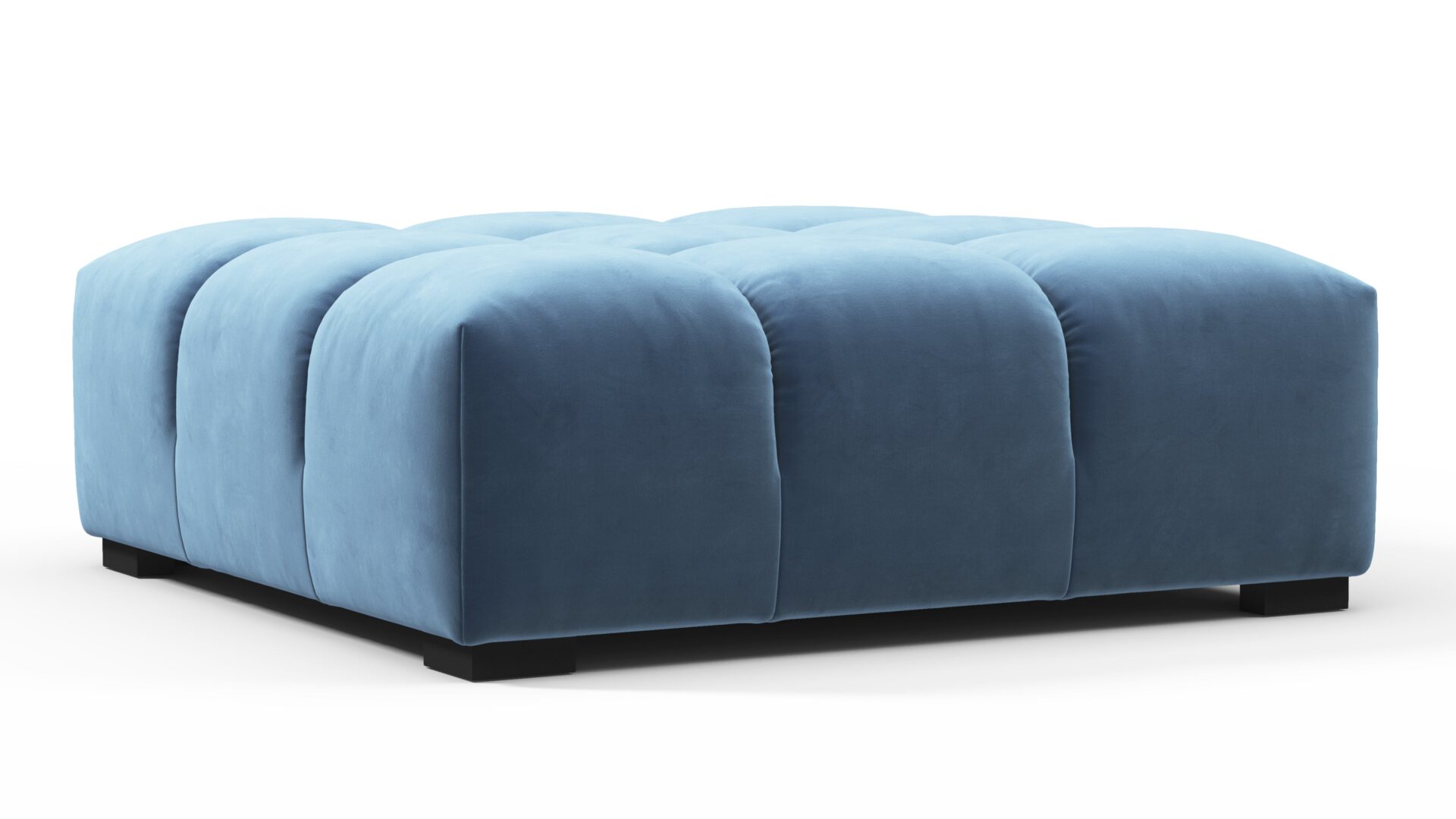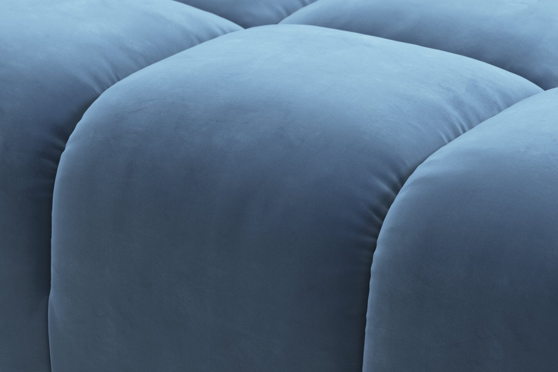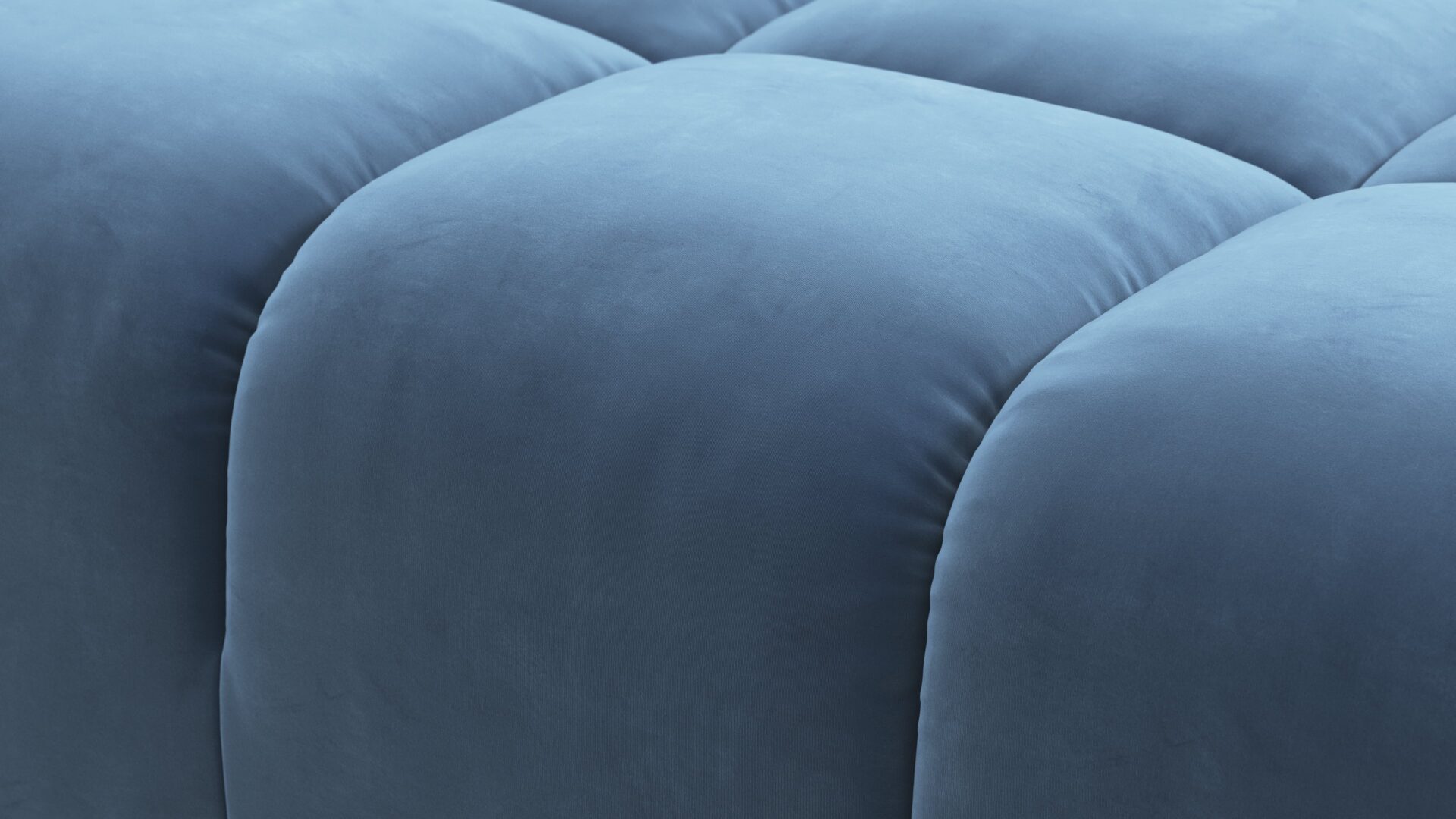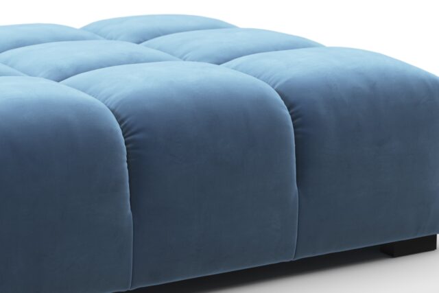Revamp the classic Chesterfield style with the Tufty sectional, embodying the laid-back 70s vibe in a chic Aegean Blue Velvet finish. The versatile design and modular structure allow seamless integration into any setting, exuding a modern allure with subtle curves. Its spacious layout and bench-style foundation offer ultimate comfort for lounging and relaxation, making it a captivating centerpiece in both modern and vintage interiors.