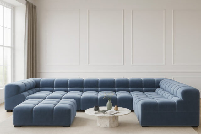 Crafted with the relaxed and laid-back spirit of the 1970s in focus, the Tufty modules boast ample dimensions, uniting in a bench-style foundation with nearly invisible junctions, providing ample space for you to recline and snuggle up in coziness.
