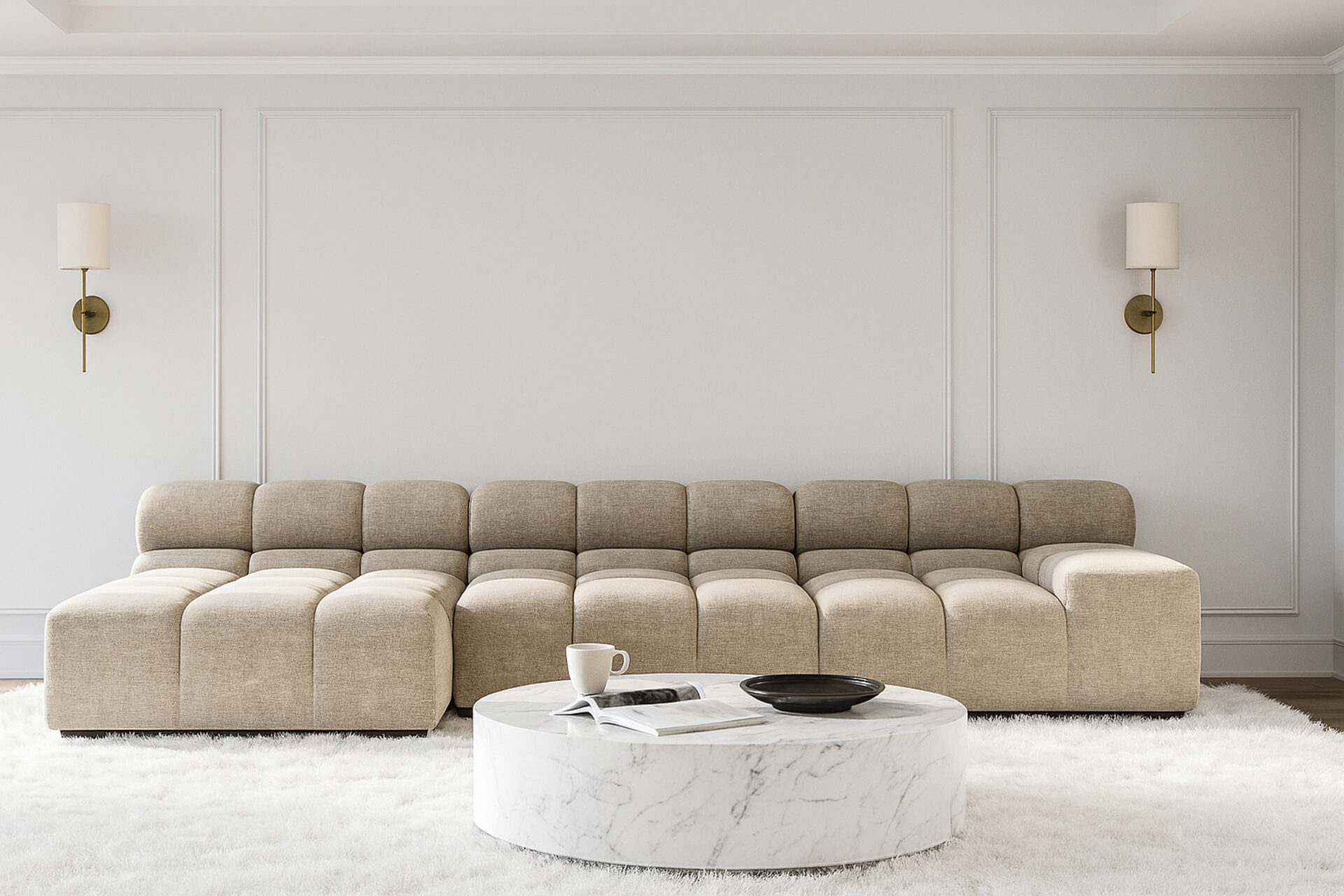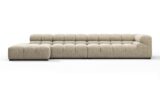 Introducing the Tufty sectional, a refreshing twist on the classic Chesterfield style infused with the chill vibes of the 70s. This contemporary masterpiece in Beige Gray Chenille offers a versatile design with a captivating and playful aesthetic, ideal for cozy city lofts or spacious entertainment areas. Boasting masterful modular construction and ultimate comfort, this chic piece effortlessly blends casual elegance with a touch of nostalgia, making it a standout addition to any modern or vintage setting.