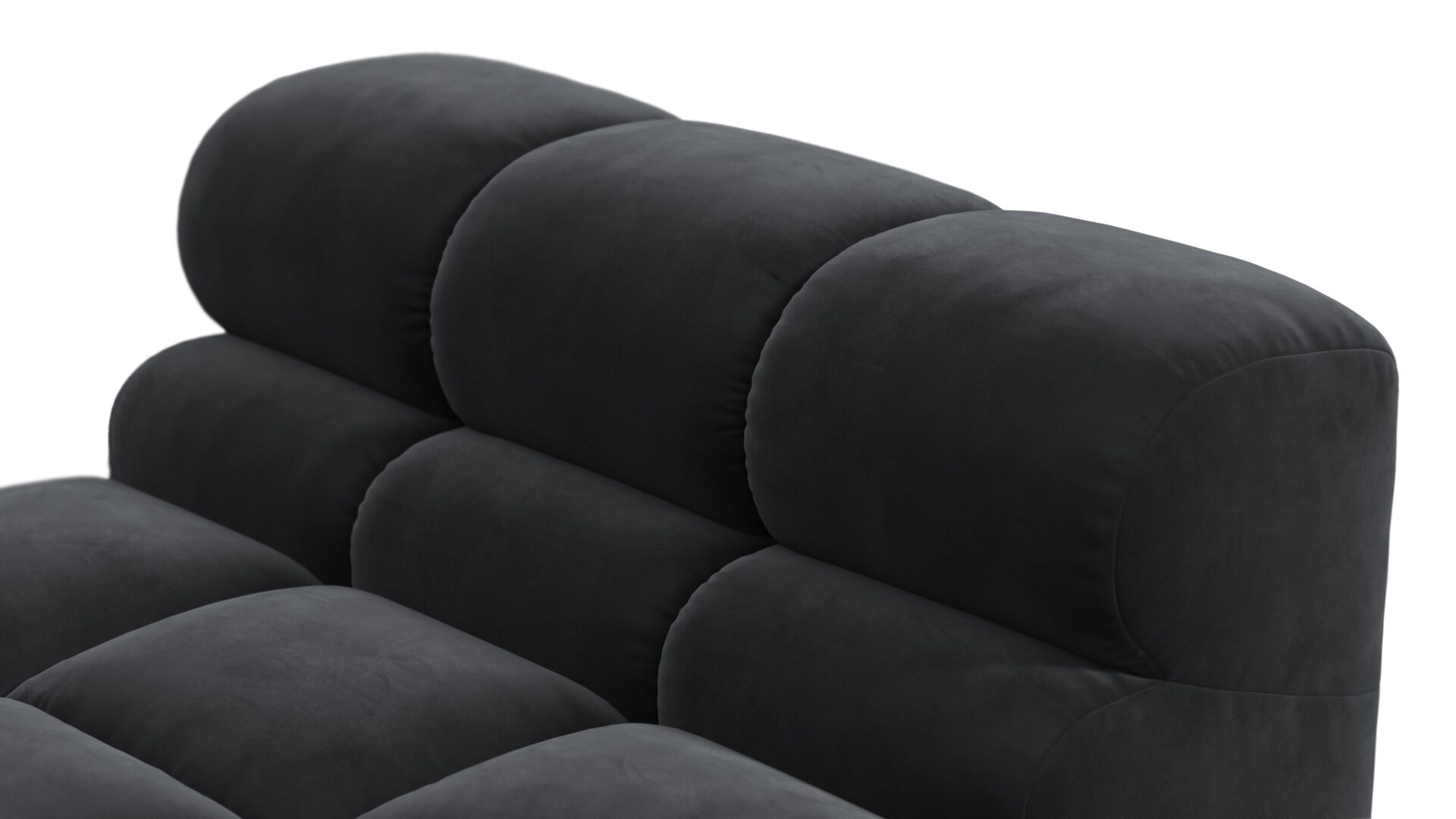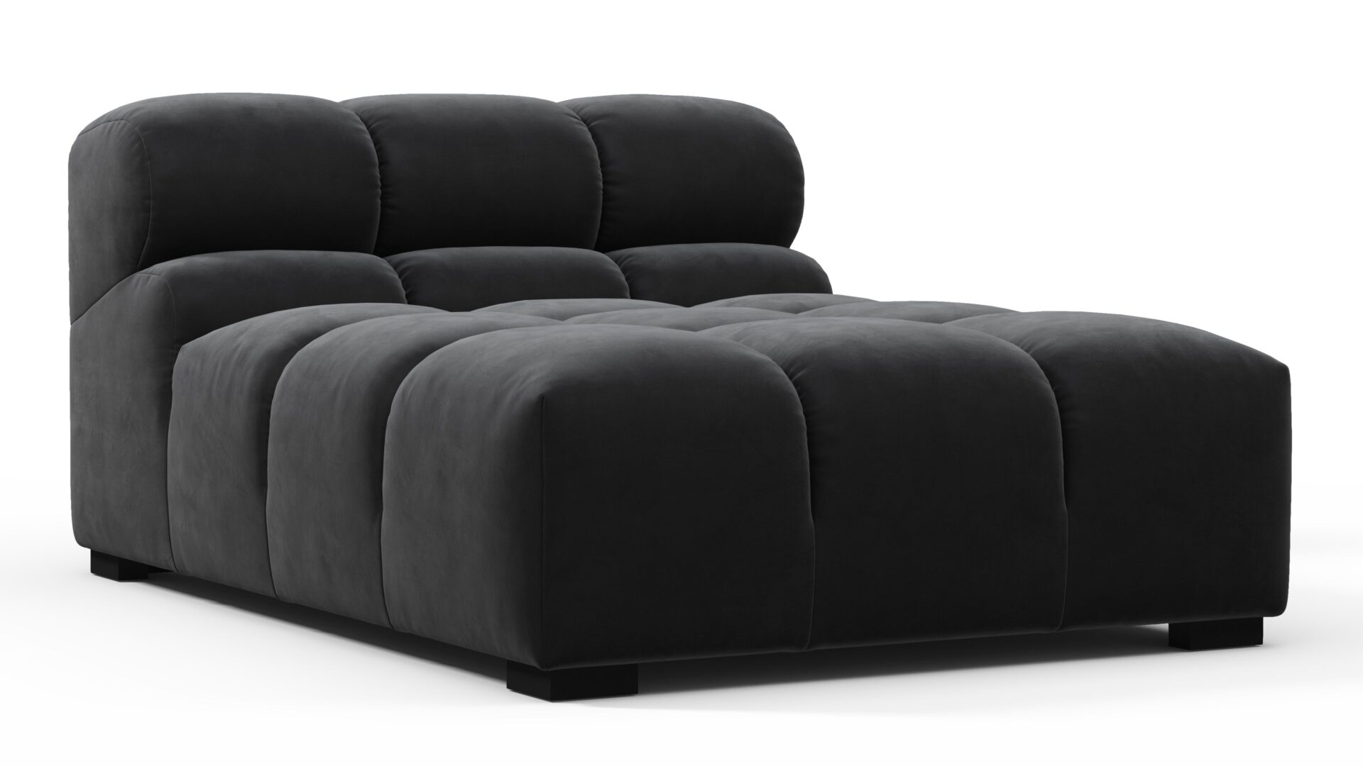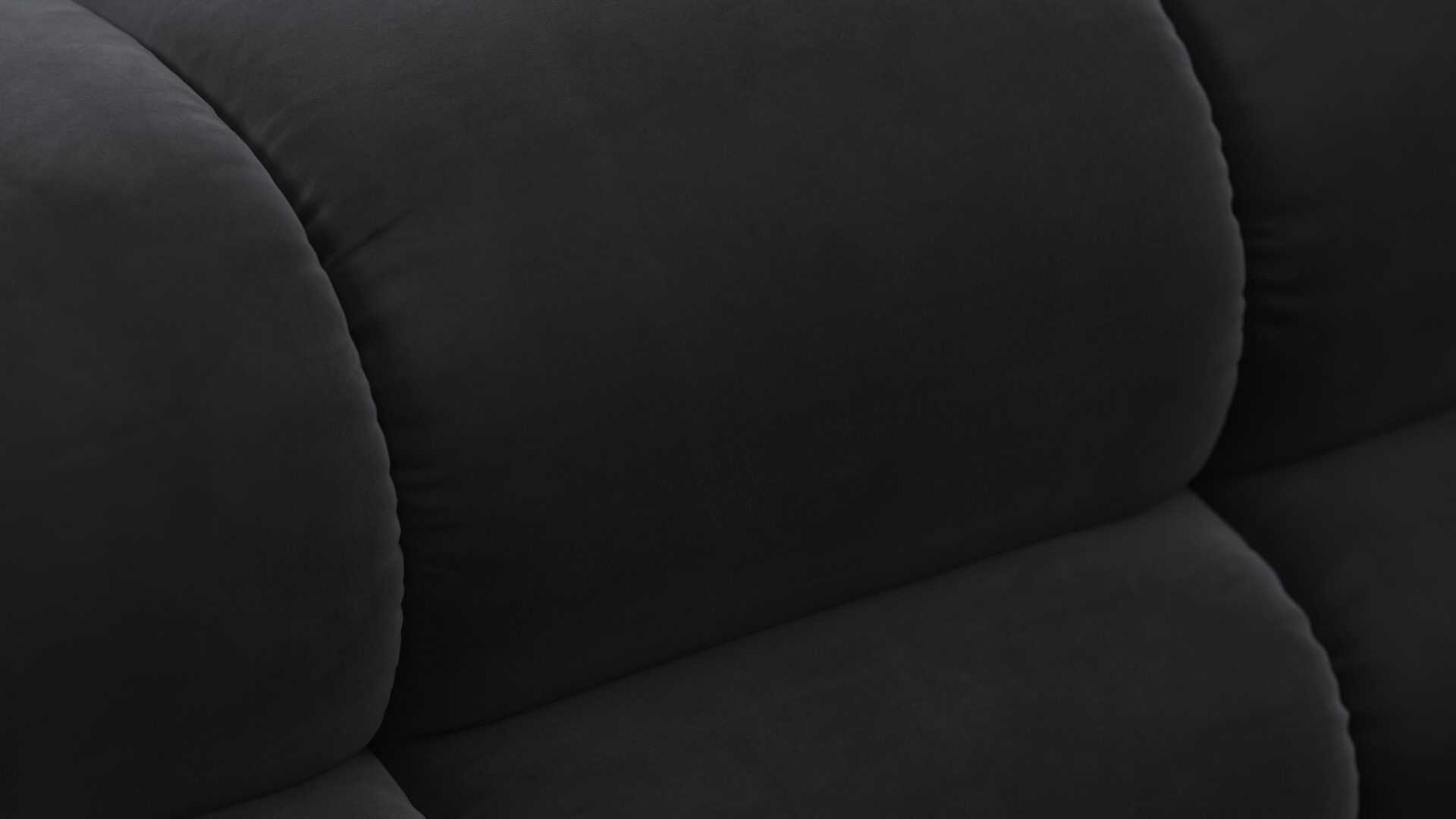 Experience a modern reinterpretation of the classic Chesterfield design with the Tufty sectional exuding 70s flair. Its chic black velvet upholstery adds a touch of elegance to any space, whether it's a cozy city loft or a spacious entertainment area. The Tufty's modular design effortlessly blends casual elegance with ultimate comfort, featuring subtle curves and ample dimensions perfect for reclining and cozying up with style.