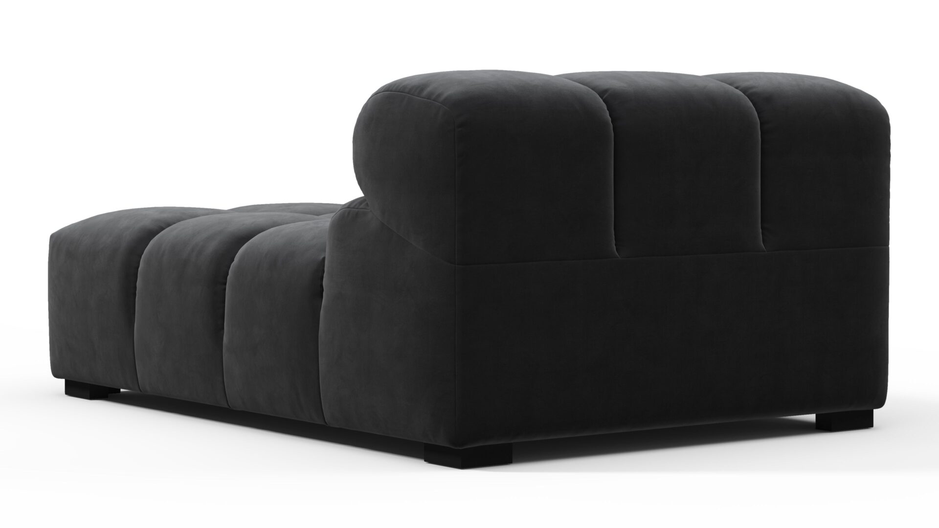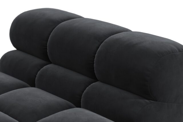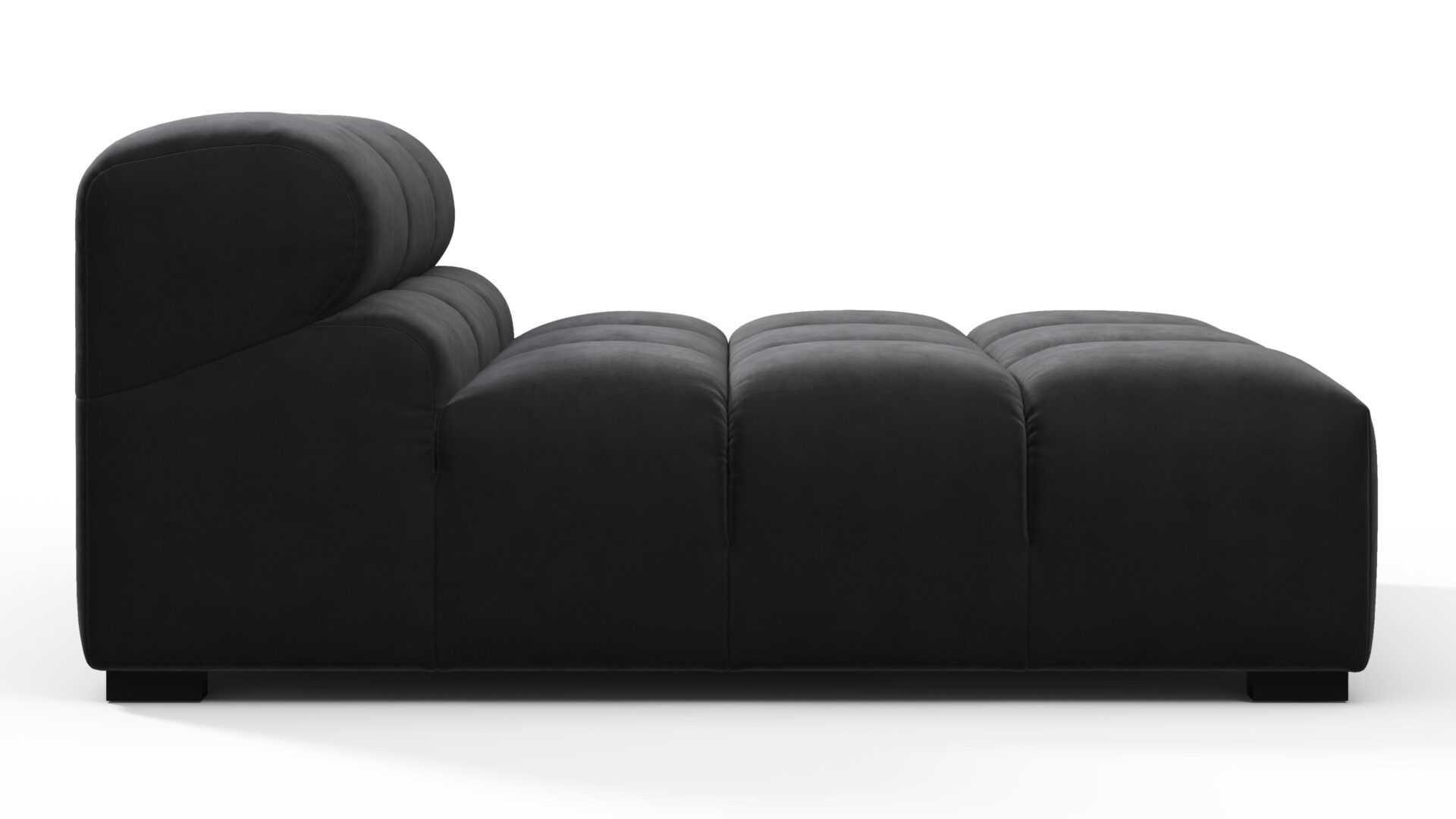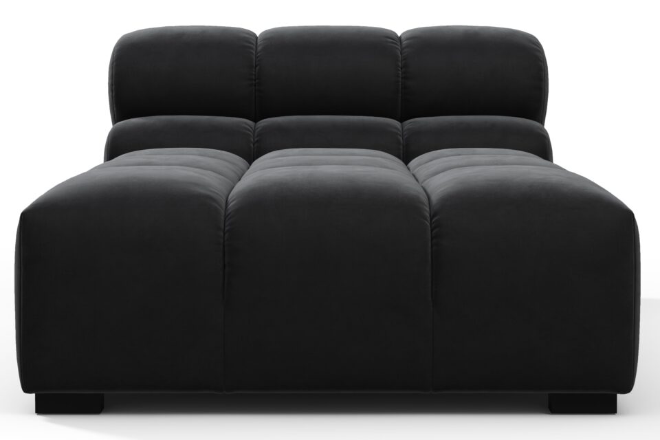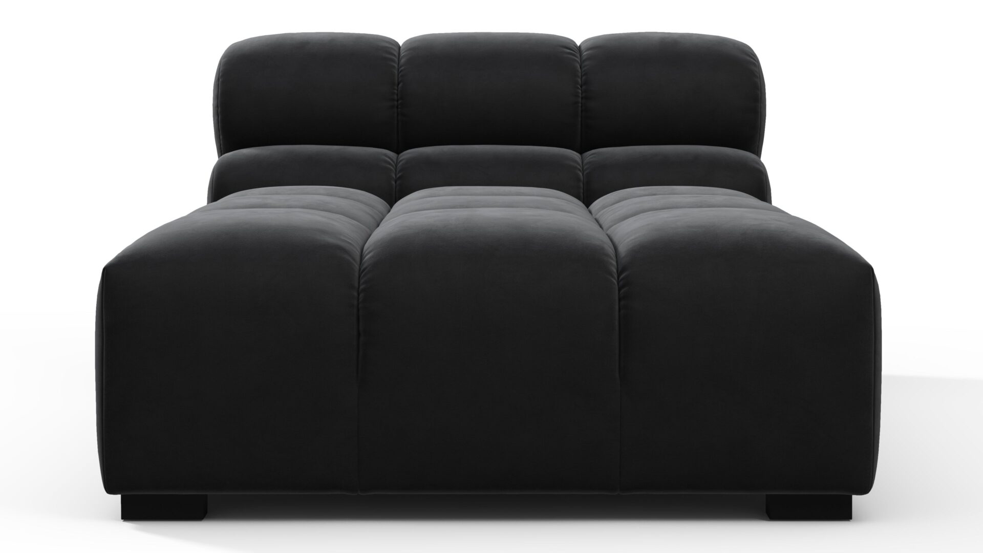 Experience a modern reinterpretation of the classic Chesterfield design with the Tufty sectional exuding 70s flair. Its chic black velvet upholstery adds a touch of elegance to any space, whether it's a cozy city loft or a spacious entertainment area. The Tufty's modular design effortlessly blends casual elegance with ultimate comfort, featuring subtle curves and ample dimensions perfect for reclining and cozying up with style.