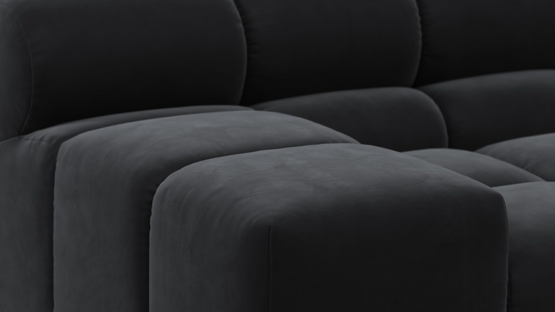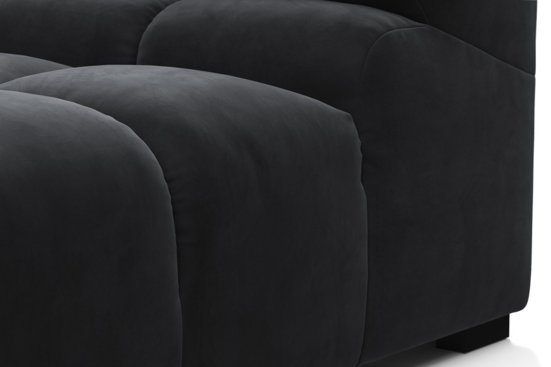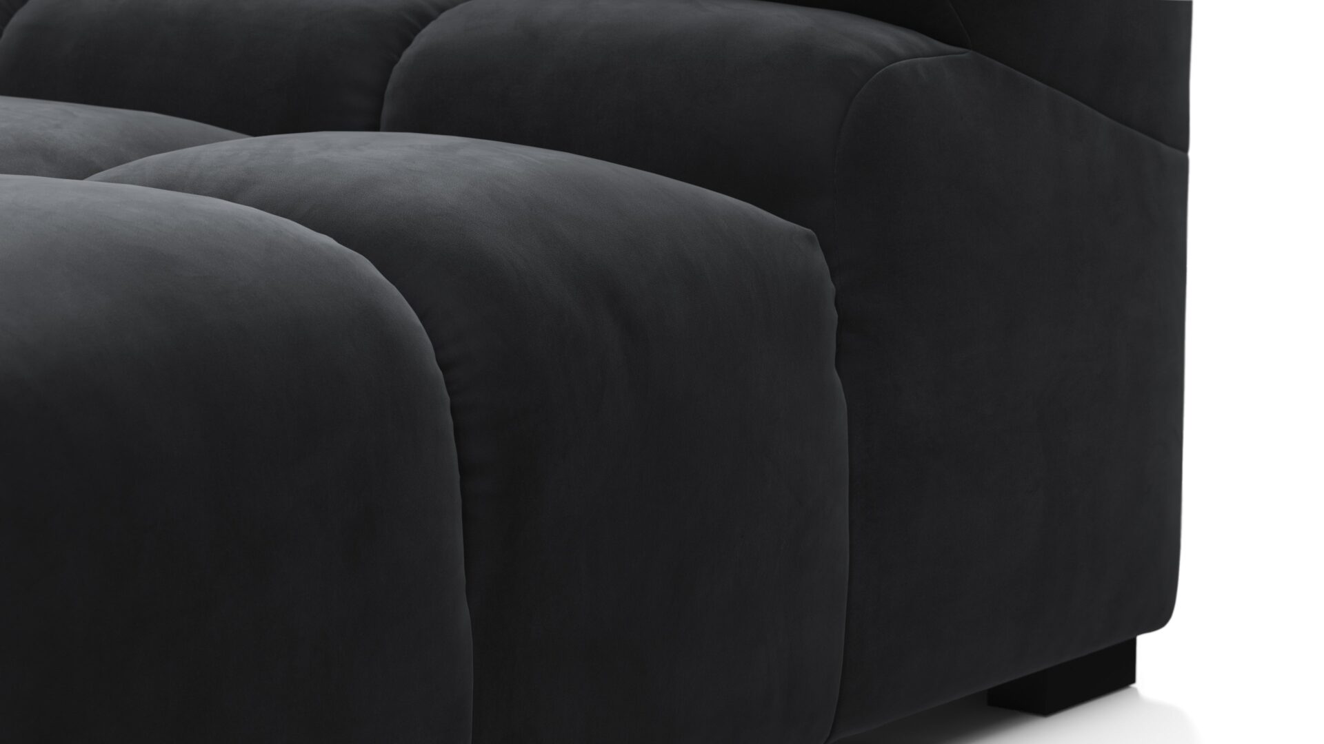 Introducing the Tufty sectional, a modern reinterpretation of the classic Chesterfield capitonné style with 70s flair. Embrace the relaxed vibes of this contemporary masterpiece in luxurious Black Velvet, boasting a versatile modular design that effortlessly blends into any setting. With subtle curves and ample dimensions, Tufty offers casual elegance and ultimate comfort, making it a perfect addition to any modern or vintage interior.
