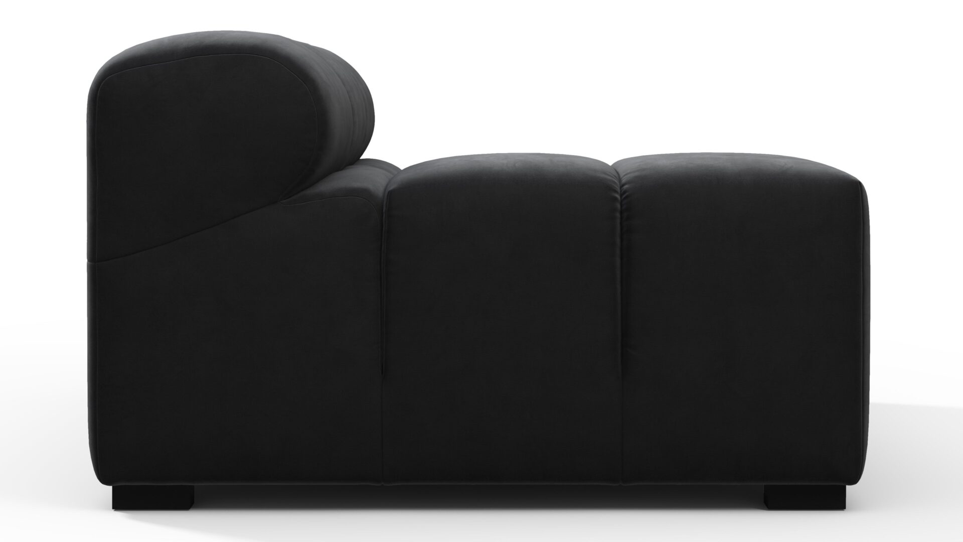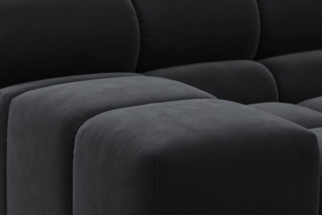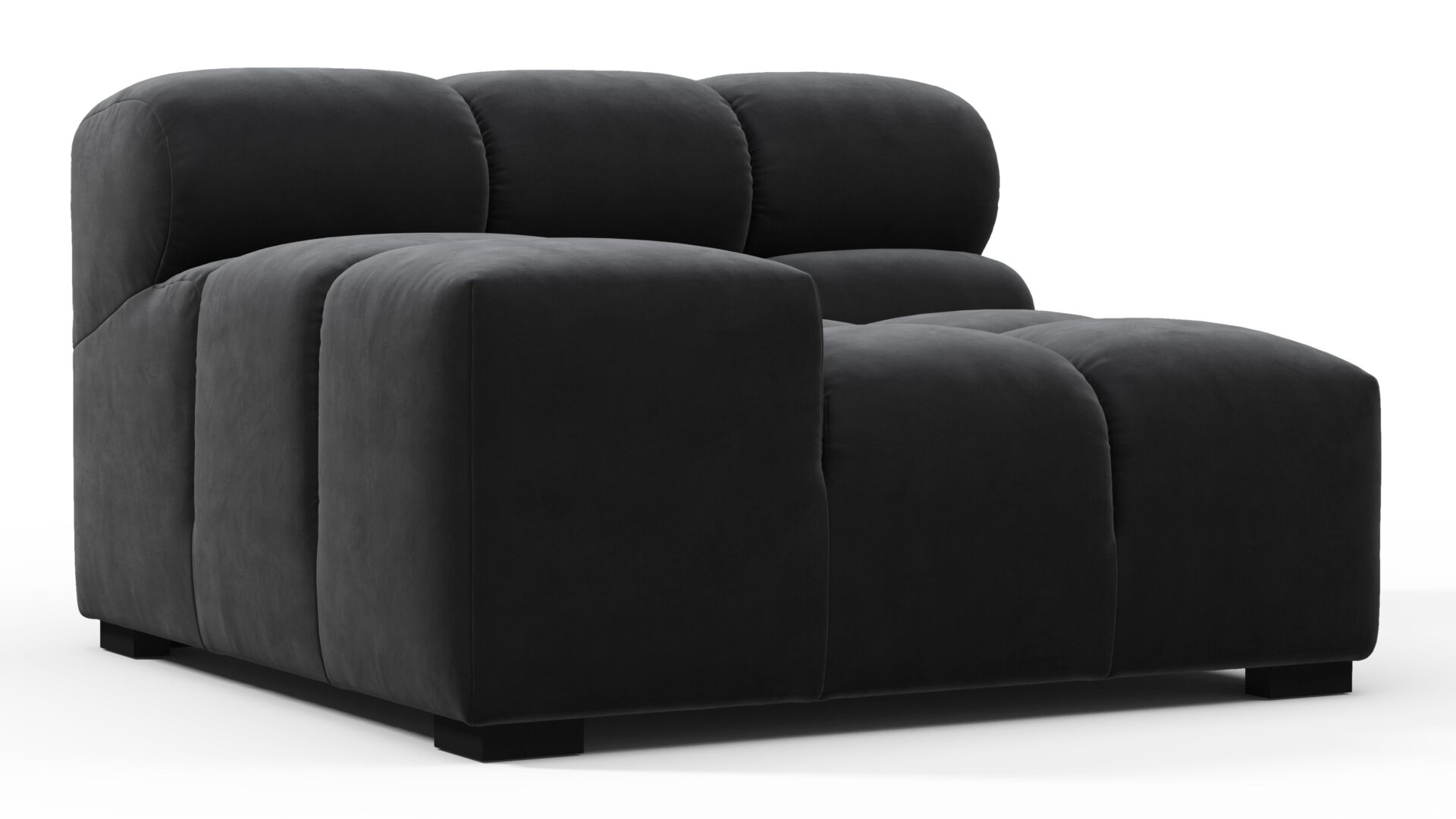 Introducing the Tufty sectional, a modern reinterpretation of the classic Chesterfield capitonné style with 70s flair. Embrace the relaxed vibes of this contemporary masterpiece in luxurious Black Velvet, boasting a versatile modular design that effortlessly blends into any setting. With subtle curves and ample dimensions, Tufty offers casual elegance and ultimate comfort, making it a perfect addition to any modern or vintage interior.