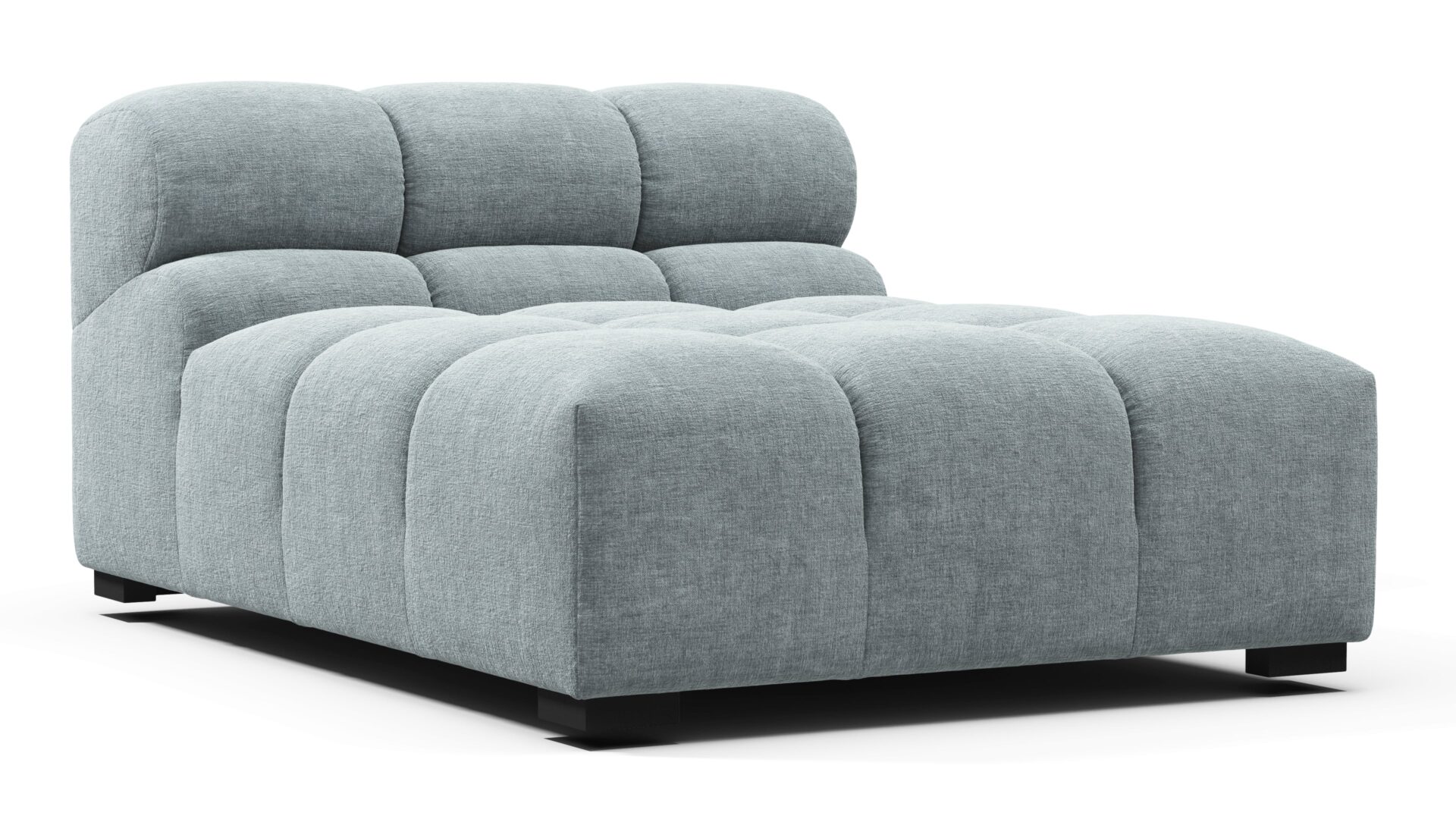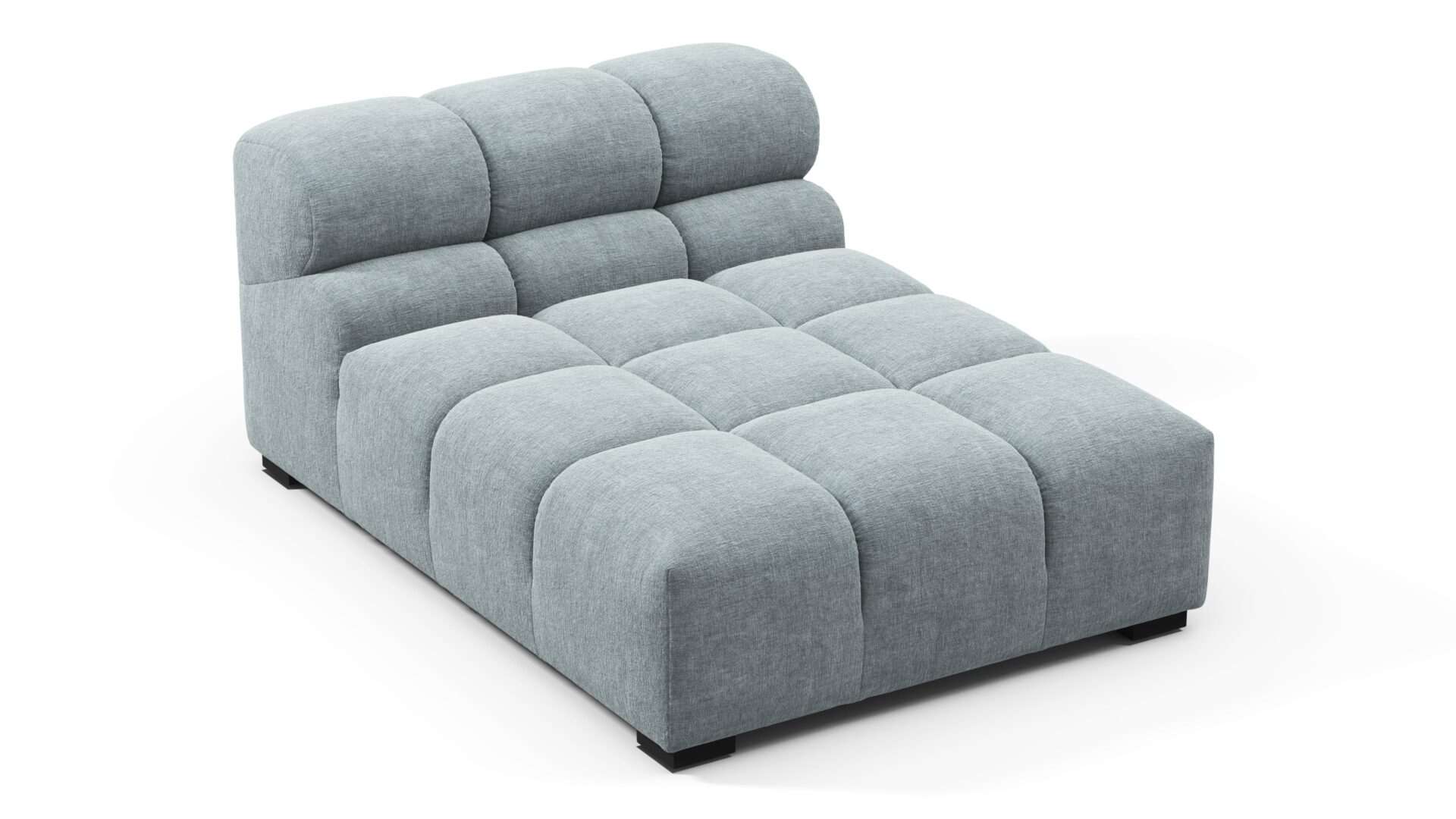 Indulge in the 70s-inspired flair of the Tufty sectional, a fresh twist on the classic Chesterfield capitonné. This contemporary masterpiece, available in Cerulean Chenille, combines versatility with a playful aesthetic. The modular design ensures seamless integration in any space, while the relaxed vibe invites you to lounge in style and comfort.