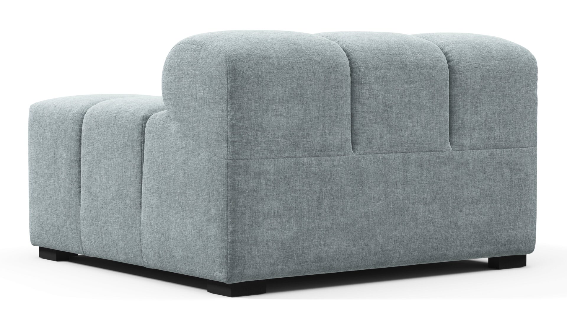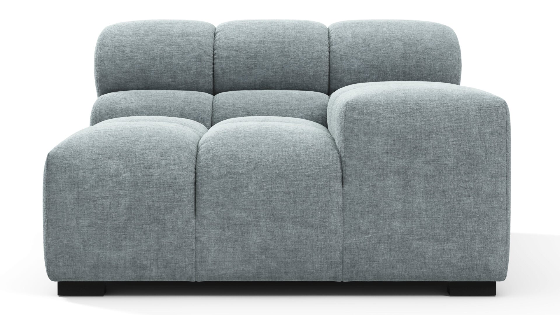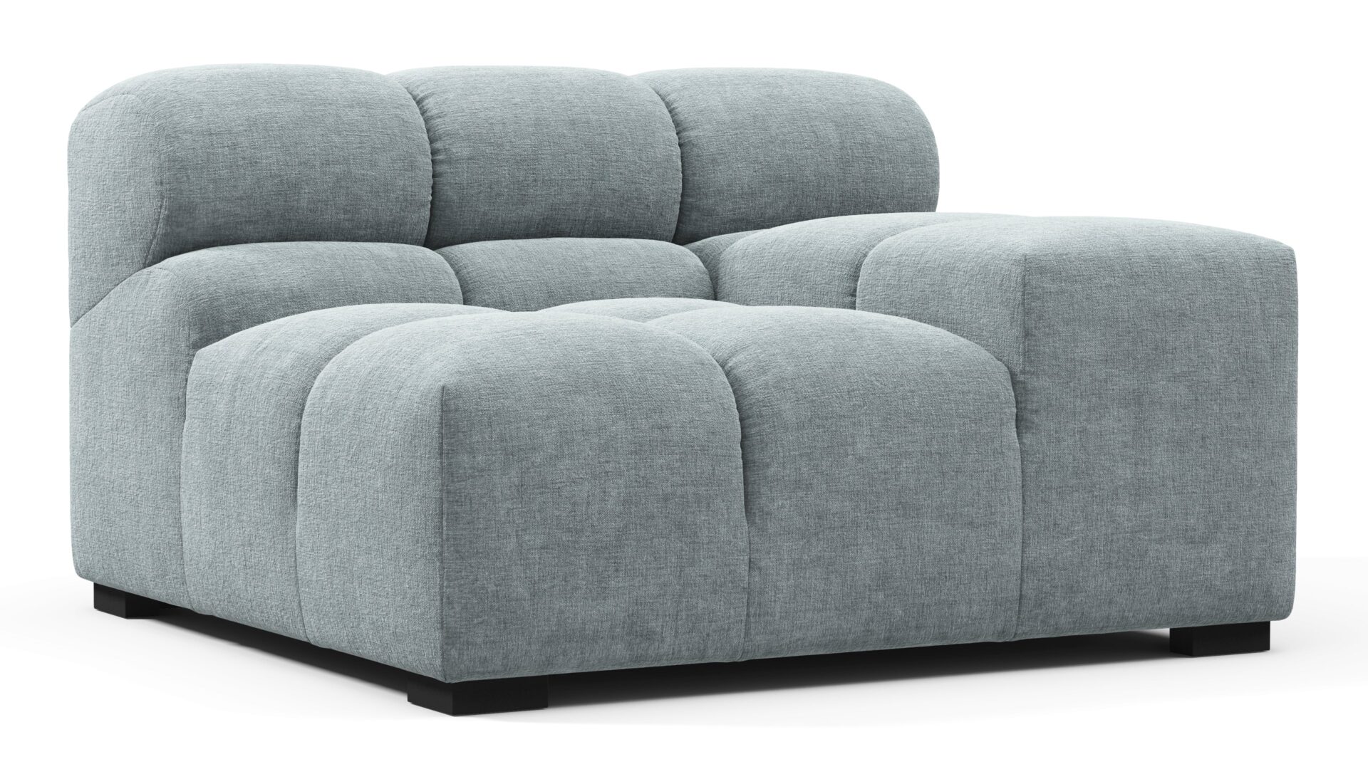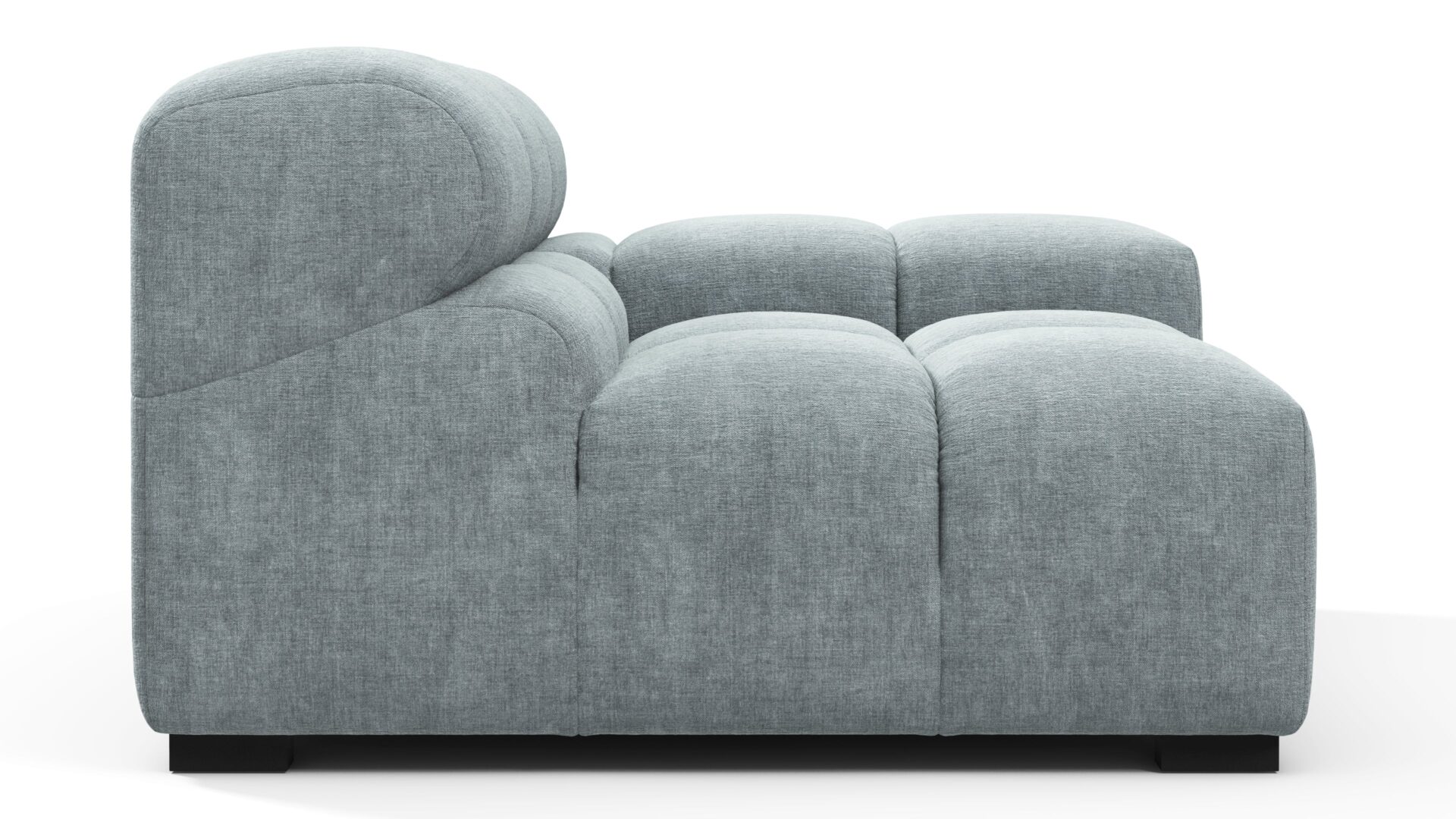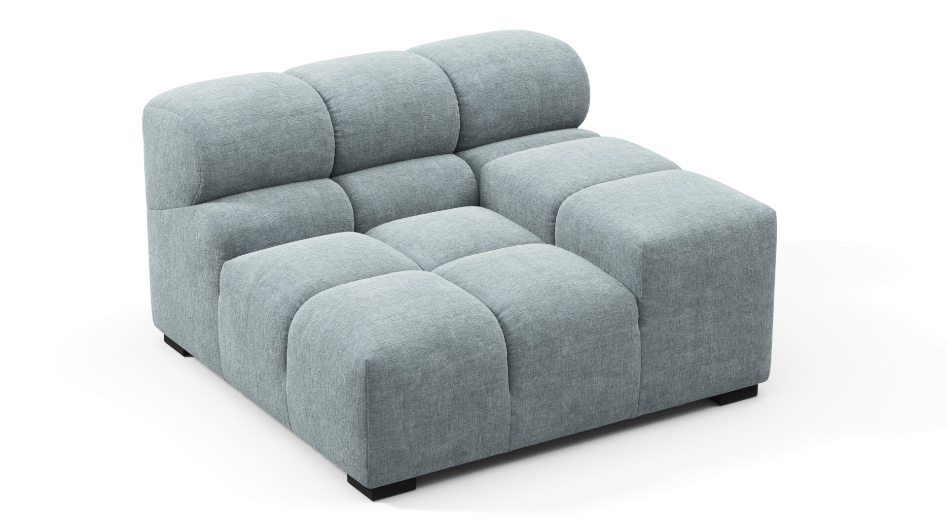 Indulge in a modern twist on the traditional Chesterfield design with the Tufty Sectional, embracing the laid-back vibes of the 70s in Cerulean Chenille. This versatile masterpiece offers a playful aesthetic and modular flexibility, perfect for snug city lofts or spacious entertainment areas. With its casual elegance and ample dimensions, the Tufty provides ultimate comfort and chic allure, seamlessly blending into any contemporary or vintage setting.