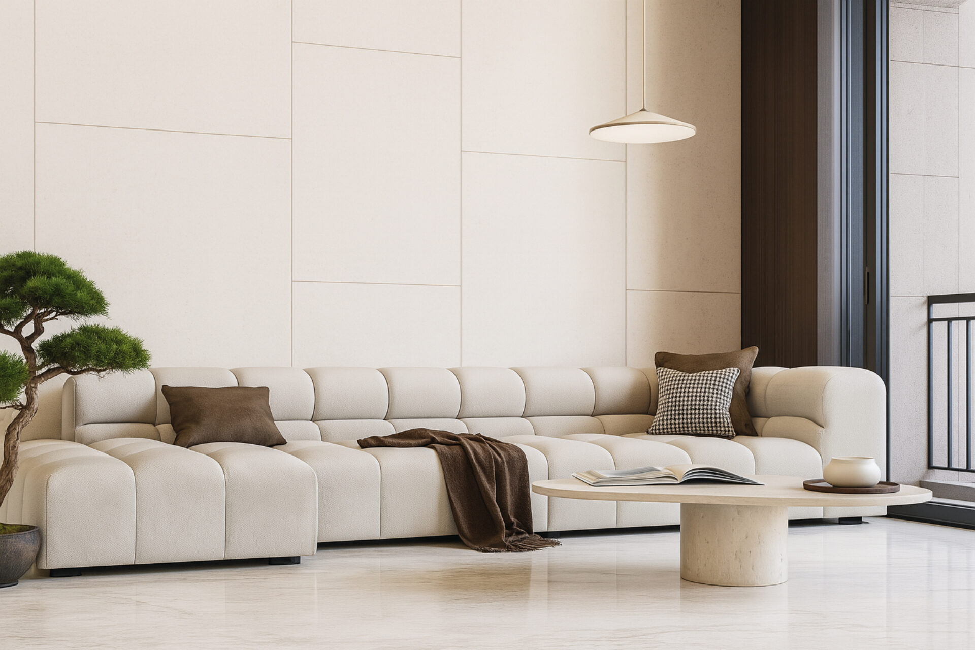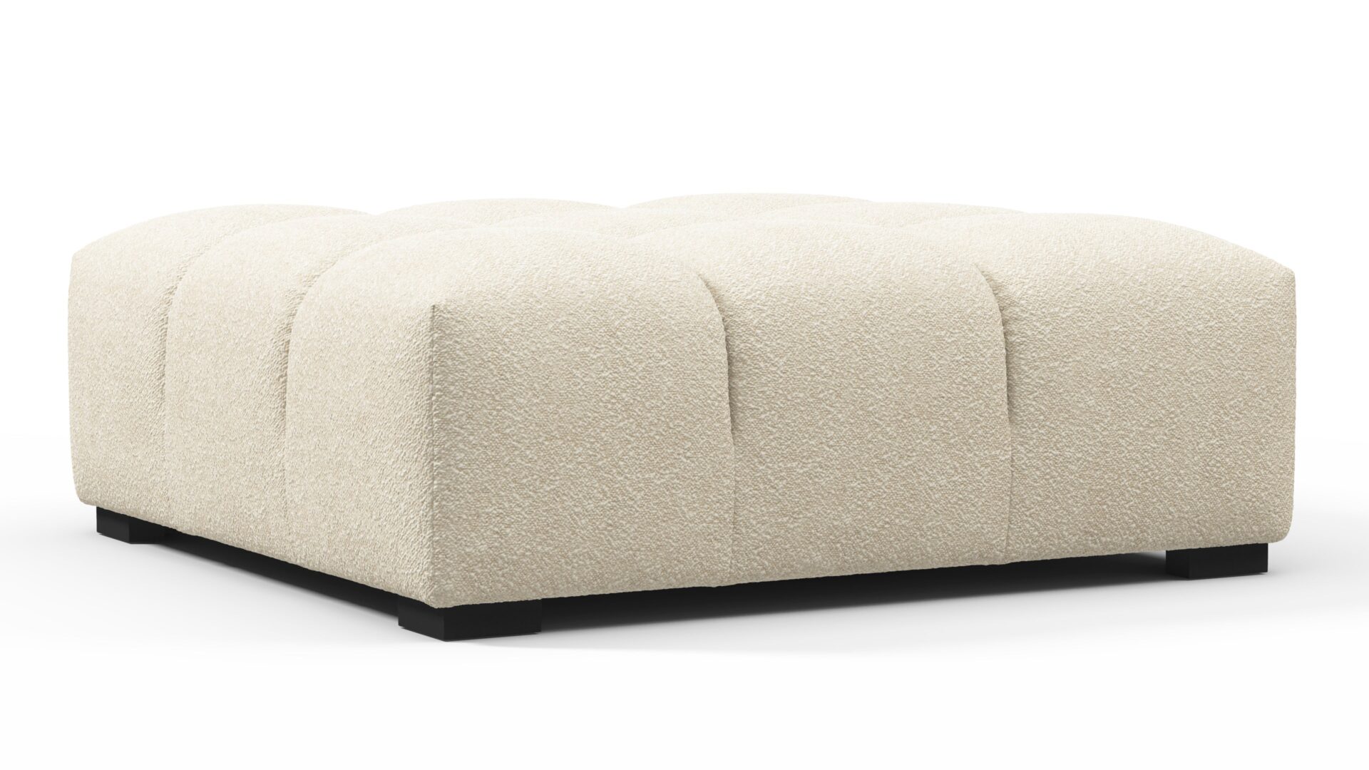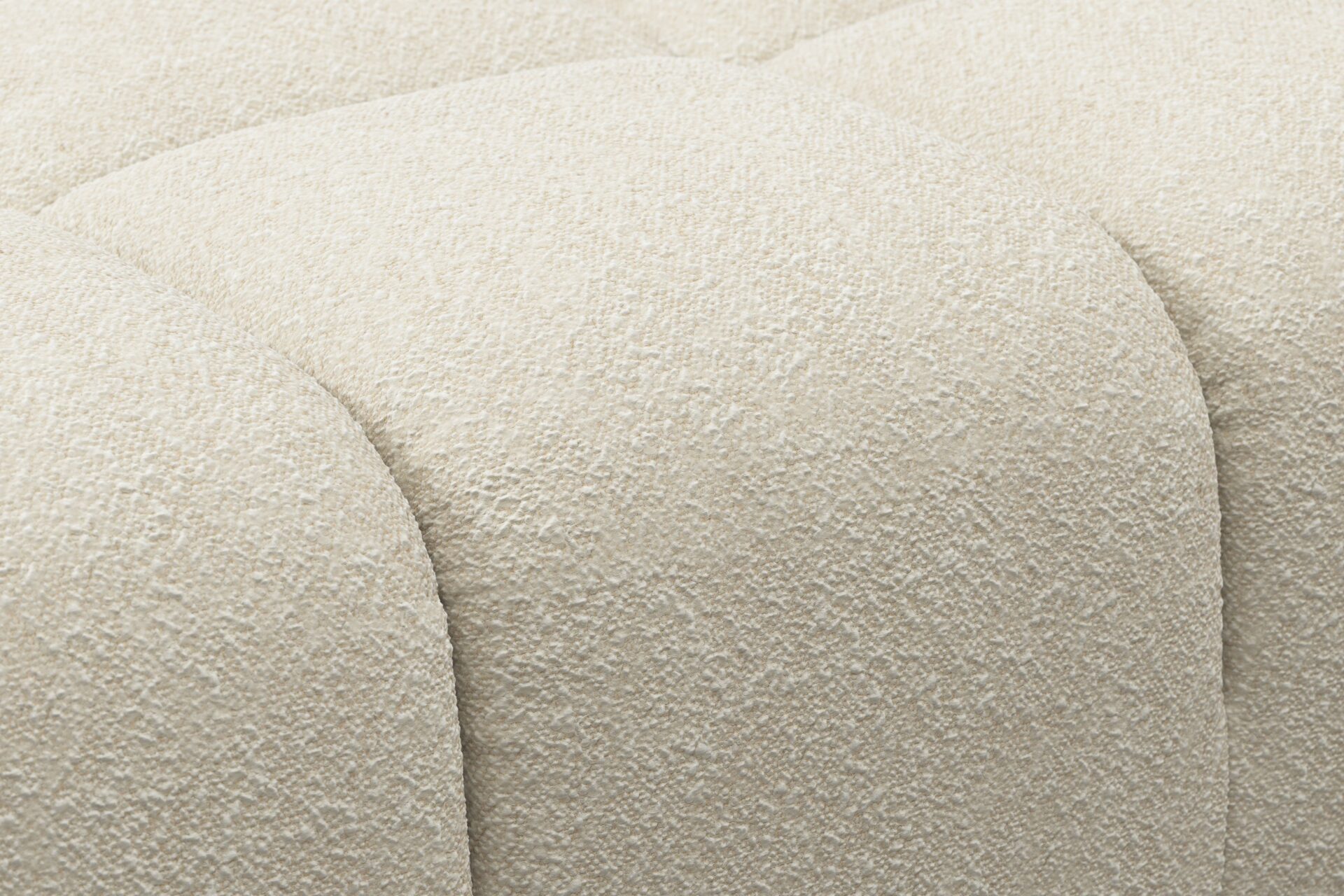 Introducing the Tufty sectional, a modern reinterpretation of the classic Chesterfield style infused with 70s retro charm. With a fresh take on traditional design, this versatile piece in Eggshell Boucle combines casual elegance and ultimate comfort. Its playful aesthetic and modular structure effortlessly blend into any space, from city lofts to entertainment areas, capturing attention with its subtle curves and shapes.