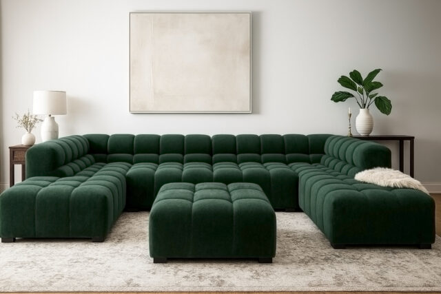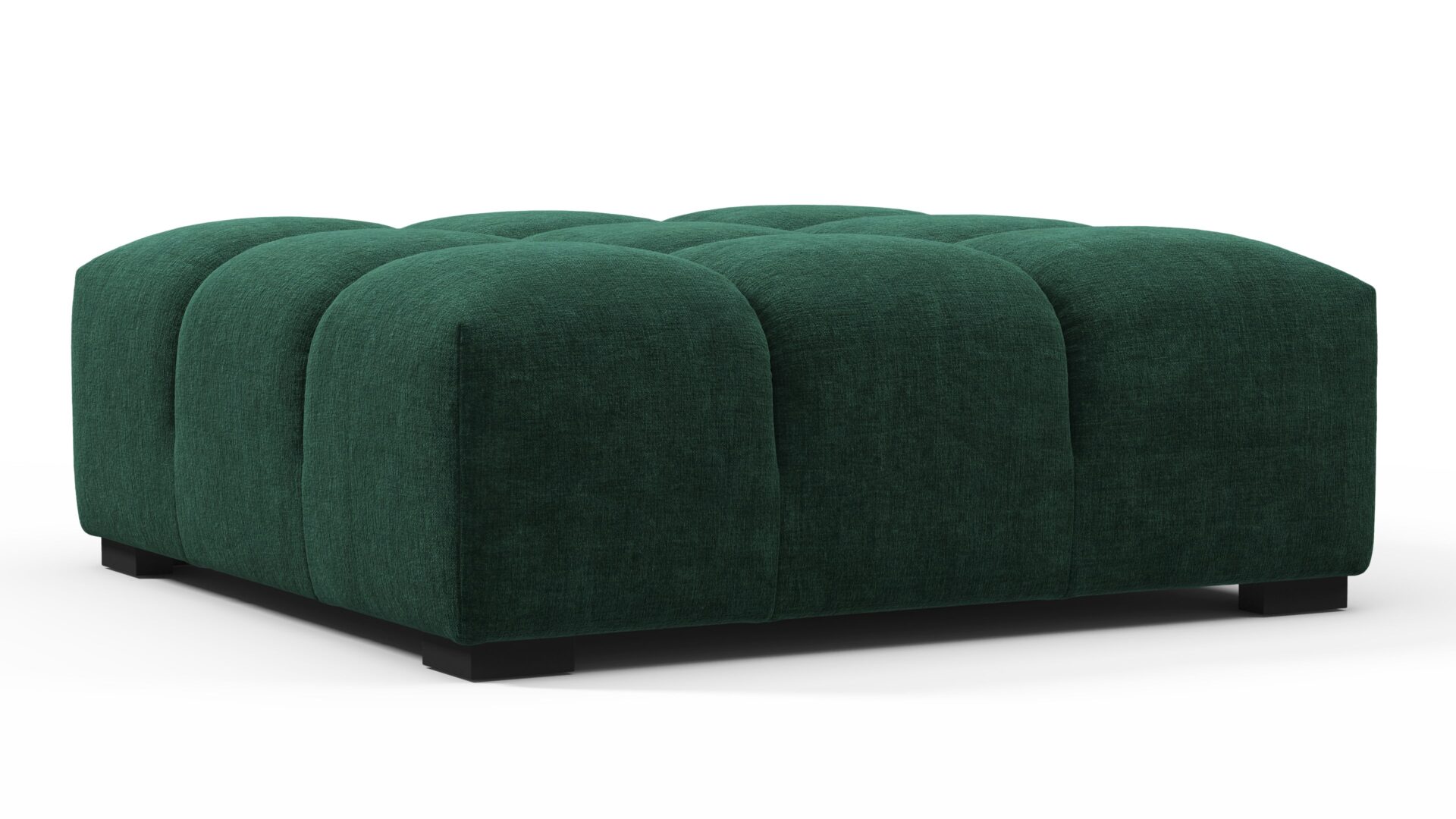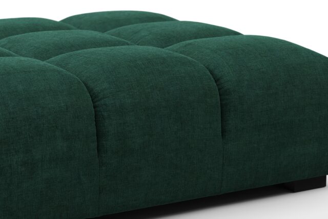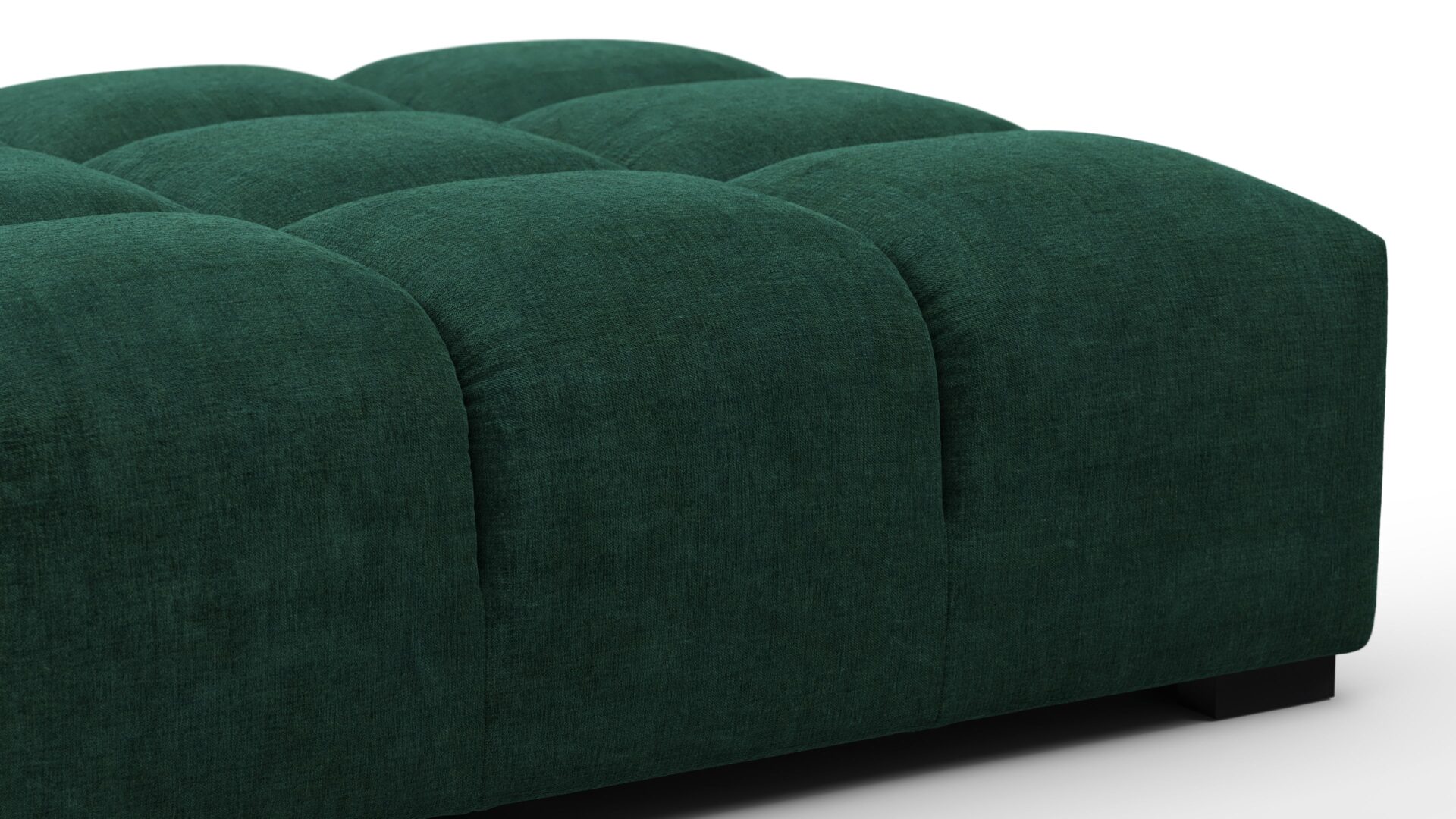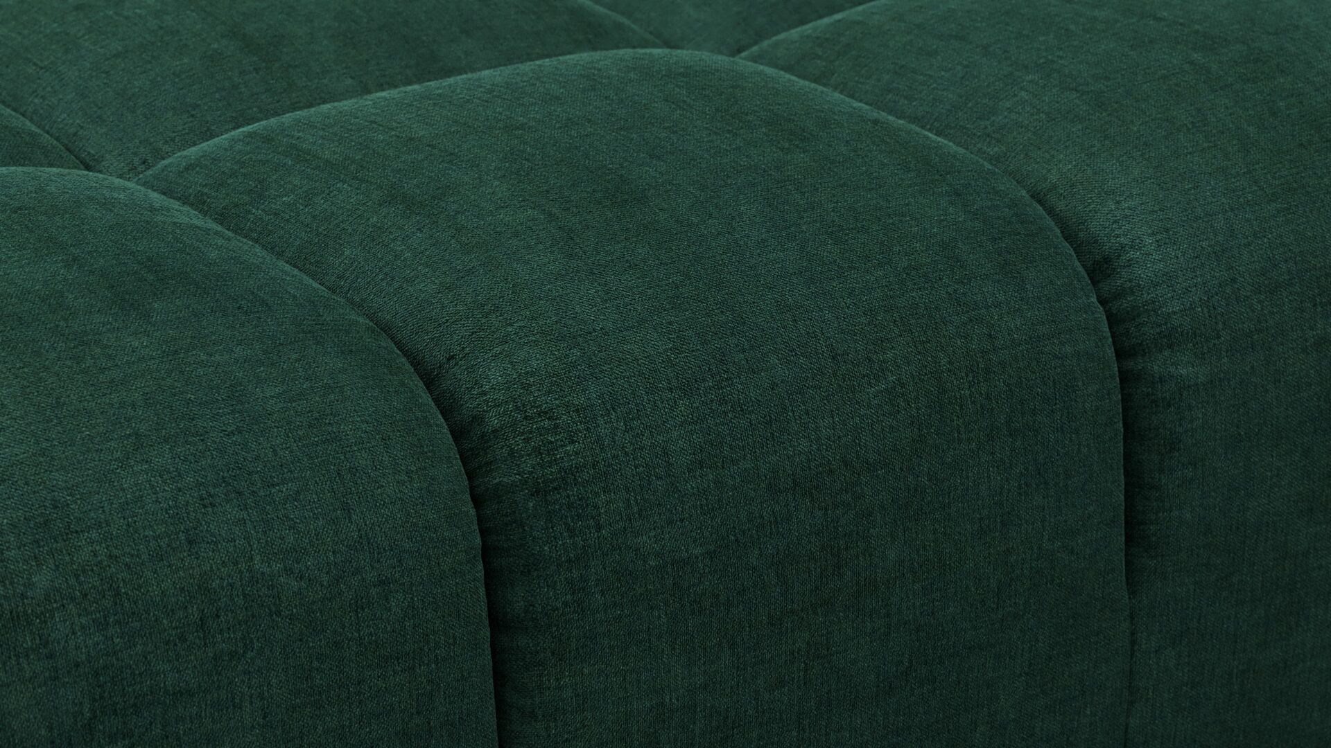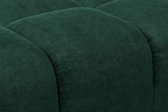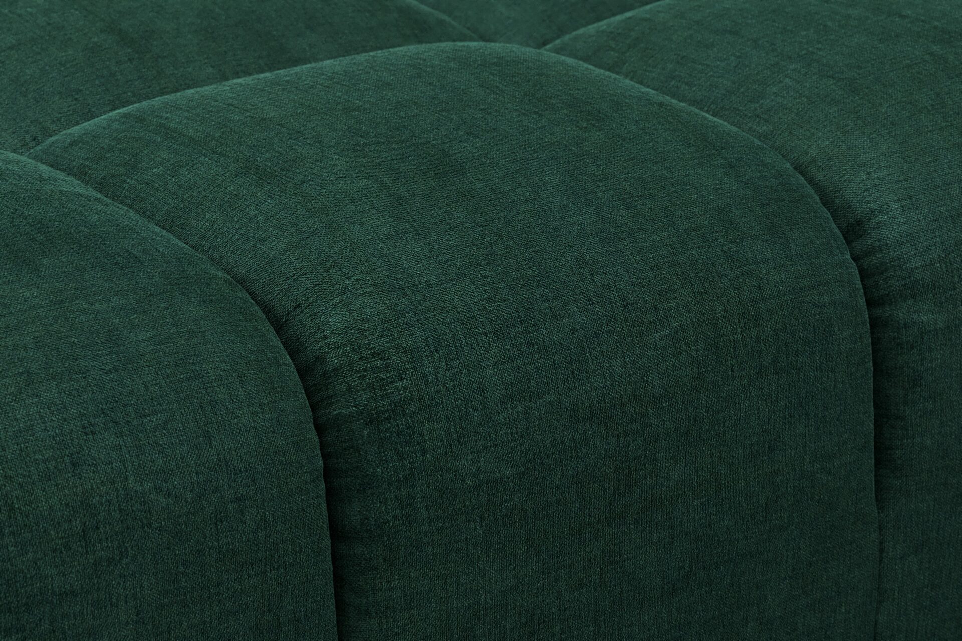 Introducing the Tufty sectional, a contemporary twist on the classic Chesterfield capitonné infused with 70s flair, now available in Forest Green Chenille. This stylish masterpiece offers a versatile design, showcasing subtle curves and nearly invisible junctions for a chic and inviting allure. Perfect for lounging in comfort, the Tufty seamlessly fits any modern or vintage setting, making it a standout piece in cozy city lofts or spacious entertainment areas.