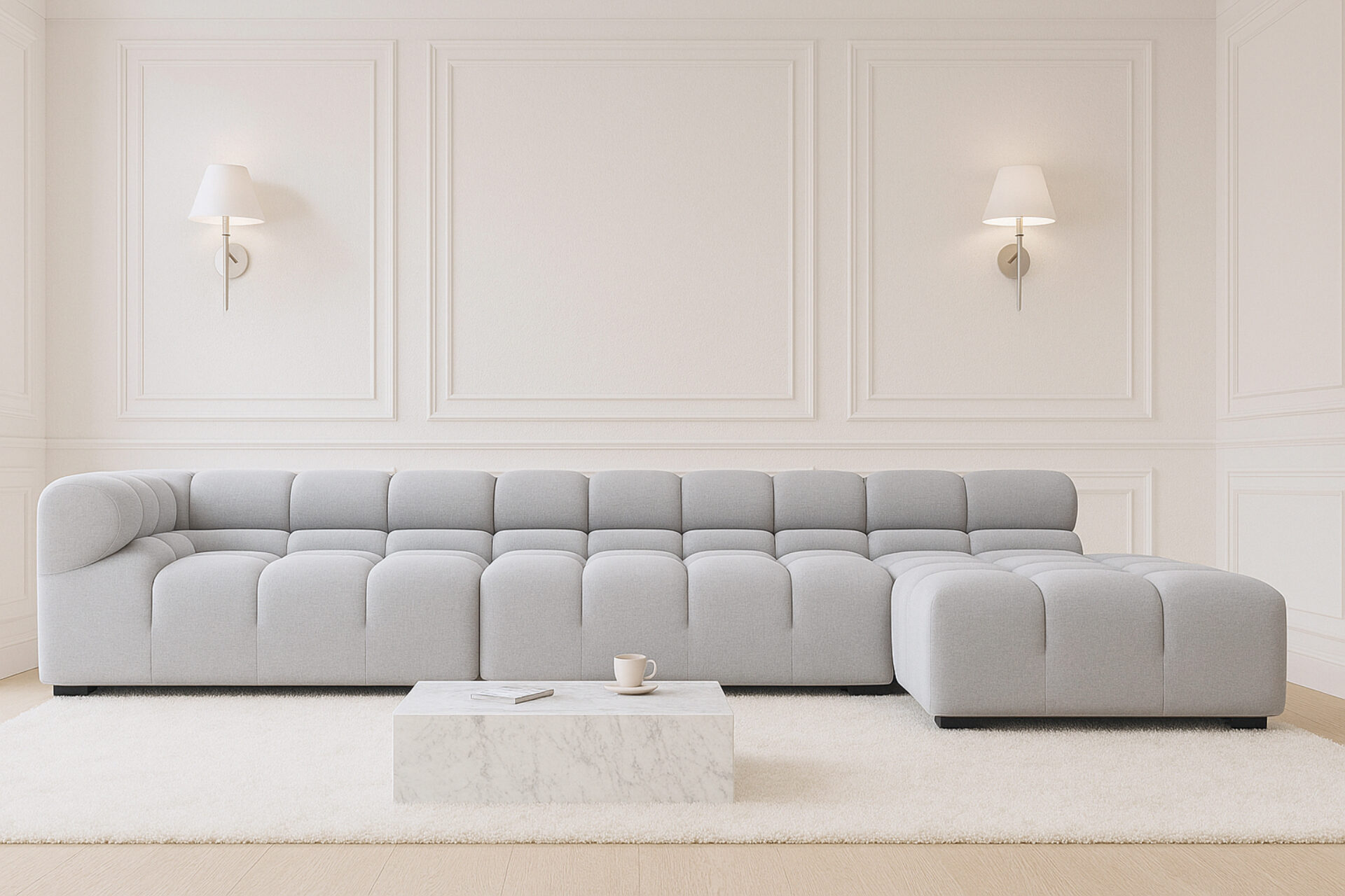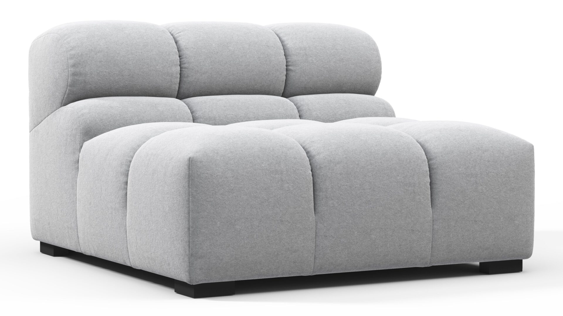 Experience a modern twist on the timeless Chesterfield style with the Tufty Light Gray Wool Sectional. Combining a laid-back 70s vibe with striking contemporary appeal, this chic piece features subtle curves and shapes that effortlessly fit into any setting, be it modern or vintage. Its modular design offers versatility, making it perfect for small city lofts or grand entertaining areas. Capture attention and welcome guests warmly with this masterful and indulgent lounging experience.