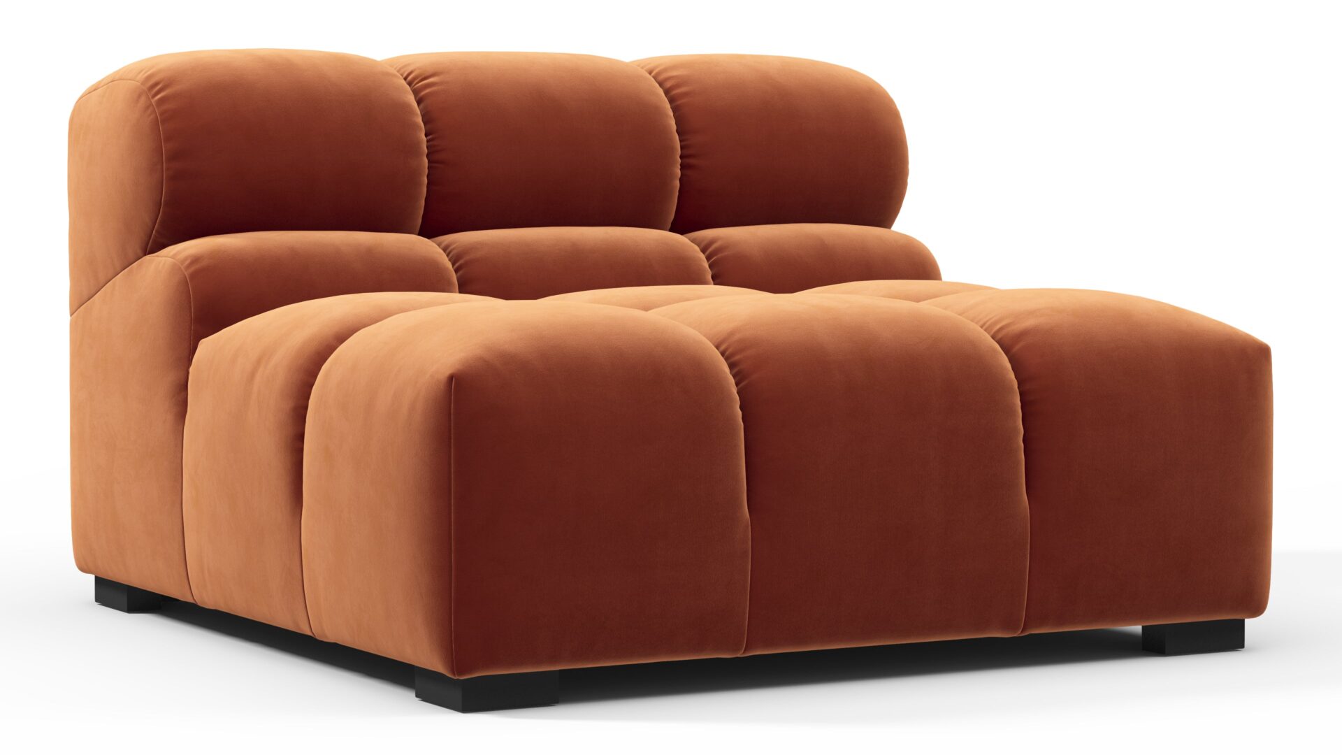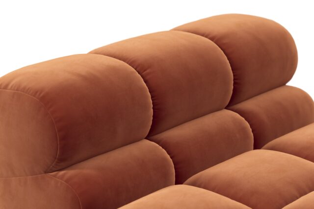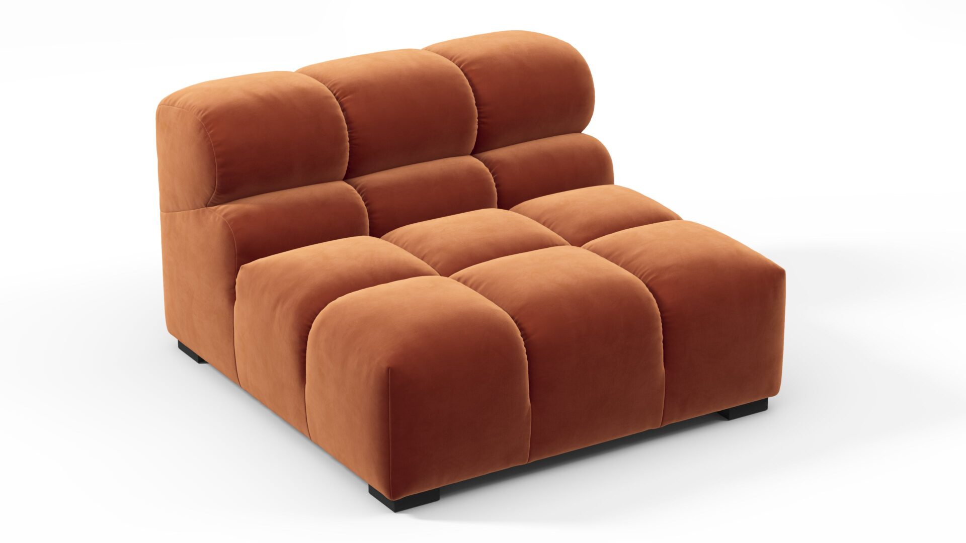 Rediscover the timeless Chesterfield style with a modern twist in the Tufty sectional, capturing the relaxed essence of the 70s. With a chic outline and ultimate comfort, this Spice Velvet variant seamlessly blends casual elegance with playfulness. Perfect for modern or vintage settings, its modular design offers versatility and charm for any space.