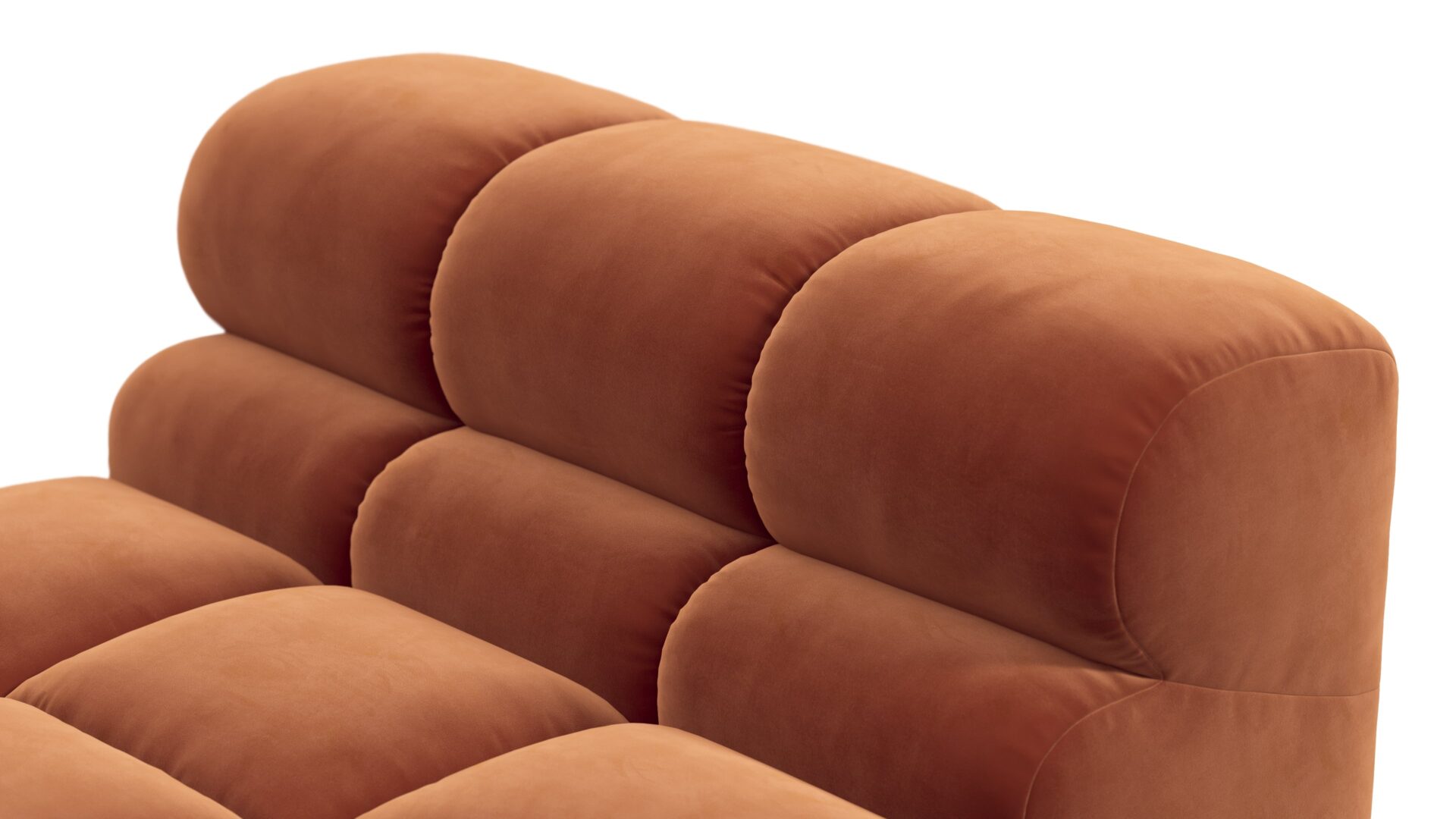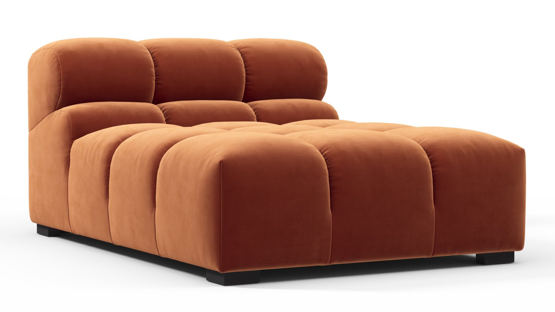 Experience a modern twist on the classic Chesterfield capitonné design with the Tufty sectional, exuding 70s retro vibes. The Spice Velvet option adds a touch of warmth and luxury to this versatile piece. Boasting subtle curves and a modular approach, this contemporary masterpiece seamlessly fits into any setting, providing ultimate comfort and chic elegance.