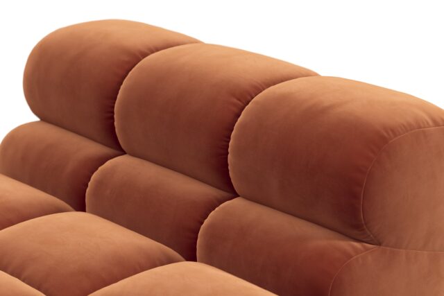 Crafted with the relaxed and laid-back spirit of the 1970s in focus, the Tufty modules boast ample dimensions, uniting in a bench-style foundation with nearly invisible junctions, providing ample space for you to recline and snuggle up in coziness.