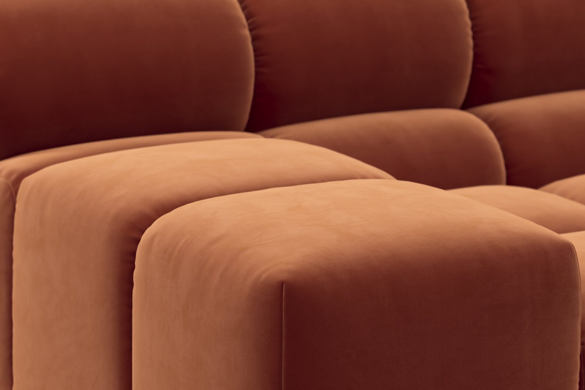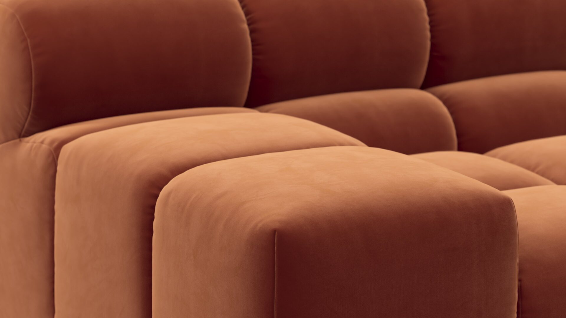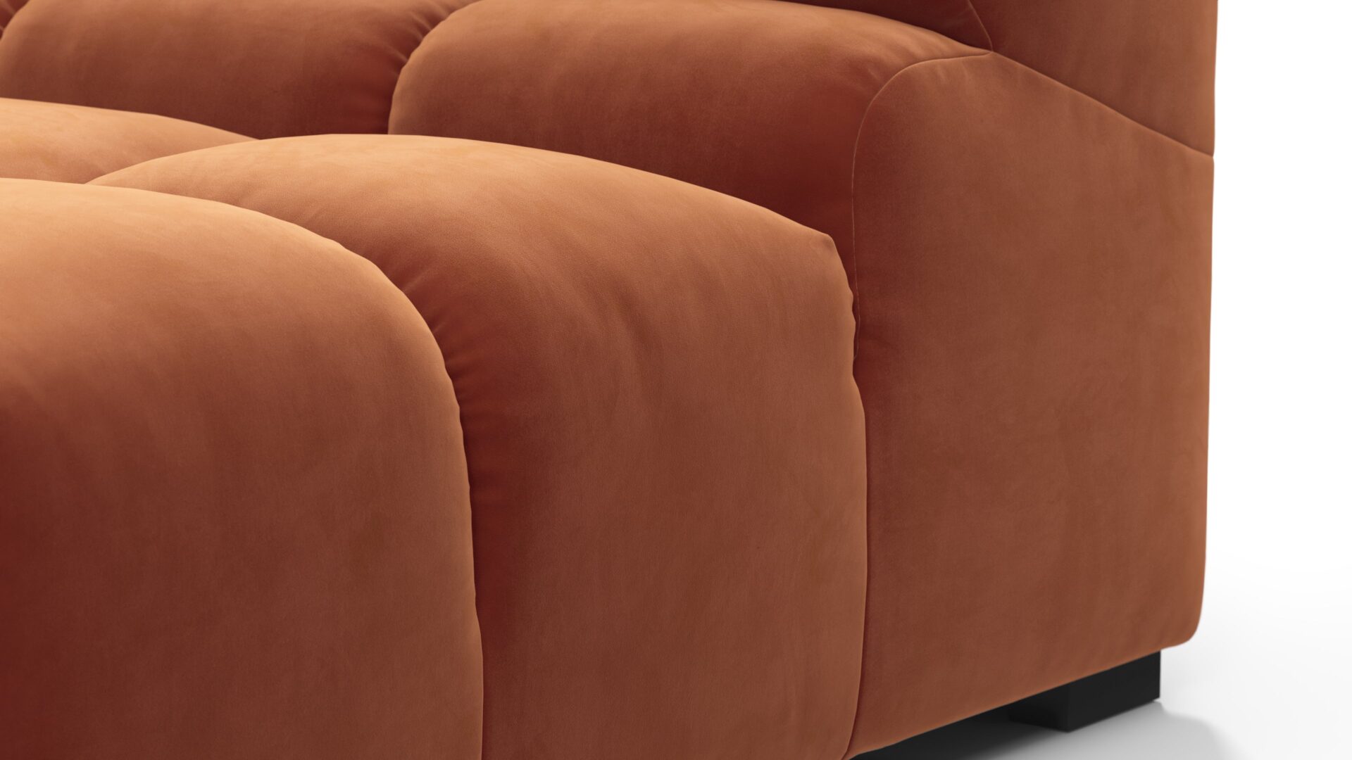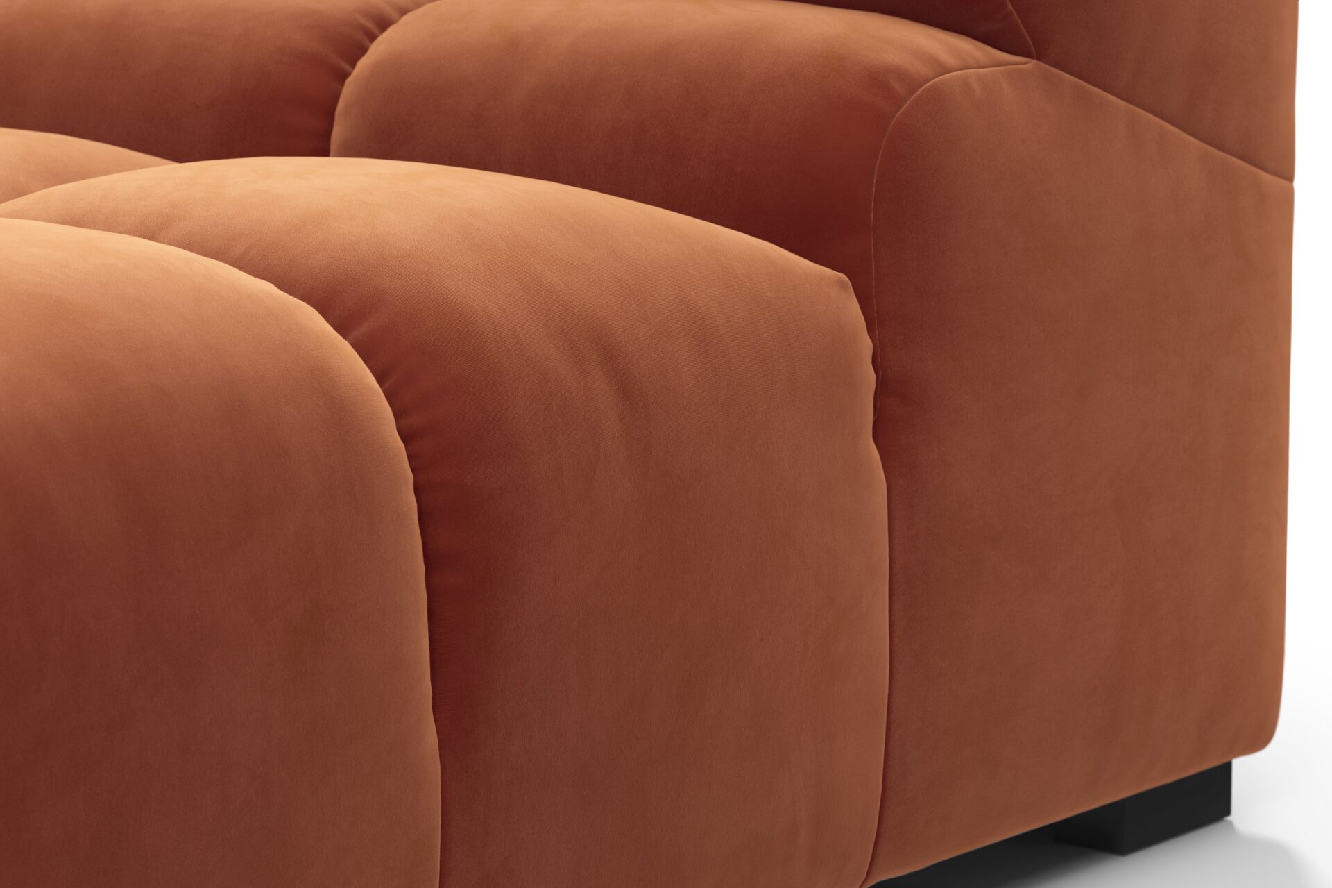 Discover a reinterpretation of the classic Chesterfield style infused with a 70s flair in the Tufty Spice Velvet sectional. This contemporary masterpiece showcases a versatile design with a playful aesthetic. Its relaxed vibe and chic outline, featuring subtle curves and shapes, seamlessly blend in modern or vintage settings, promising ultimate comfort and style.