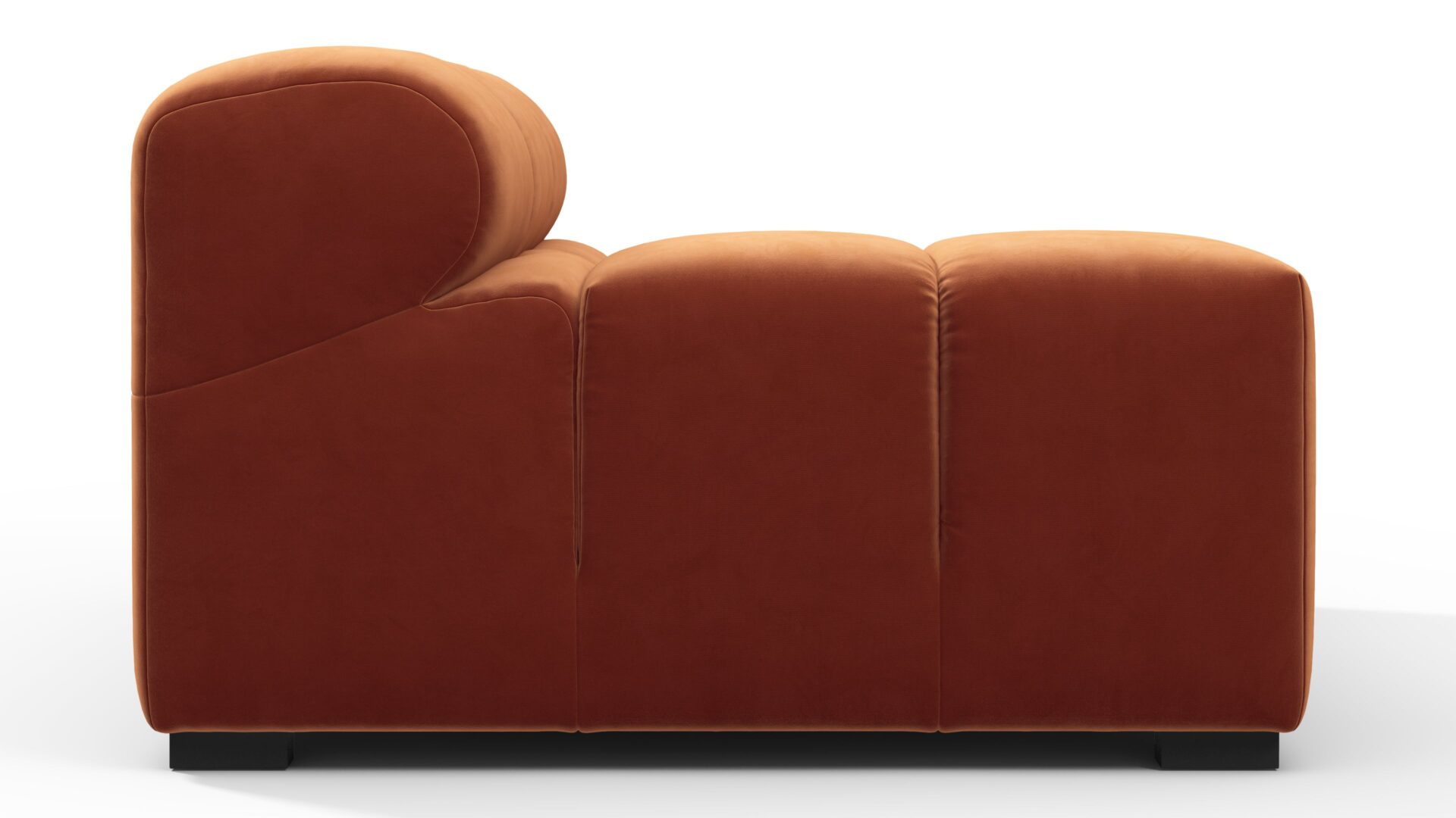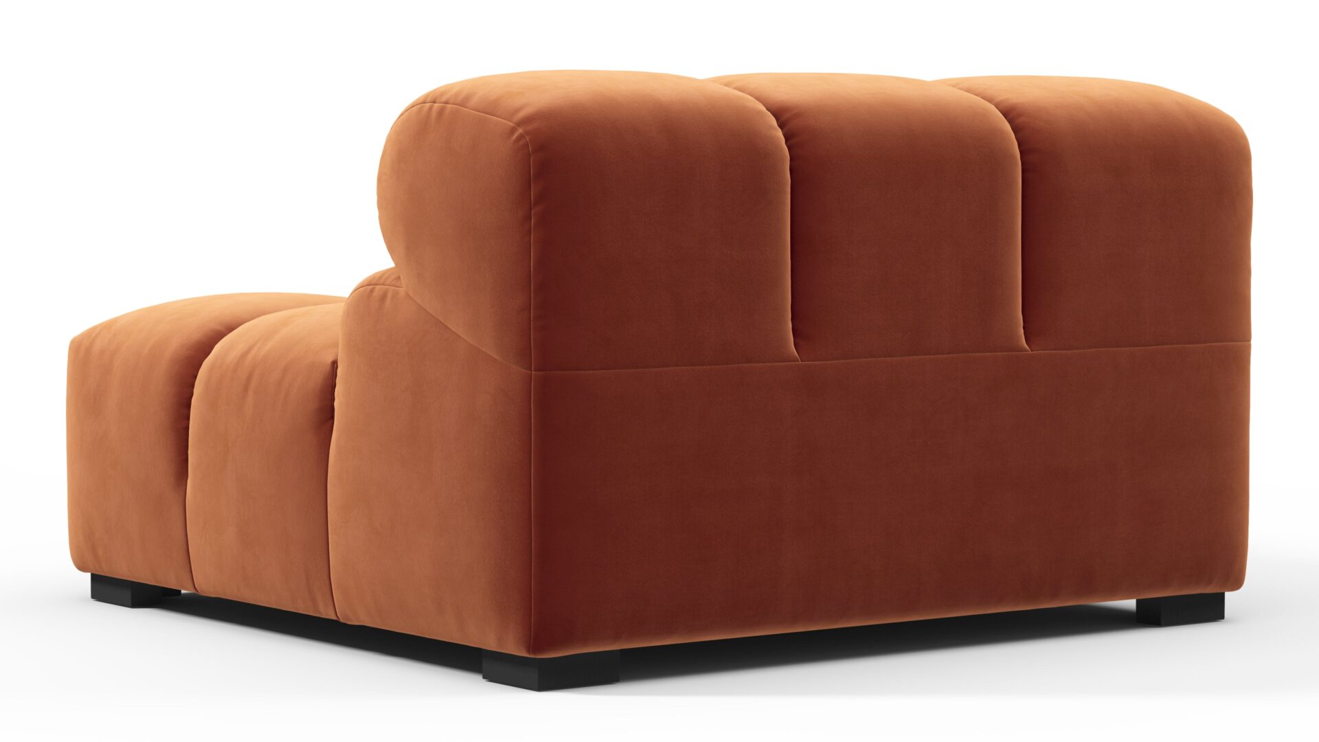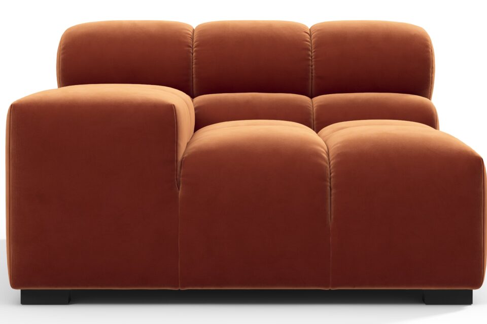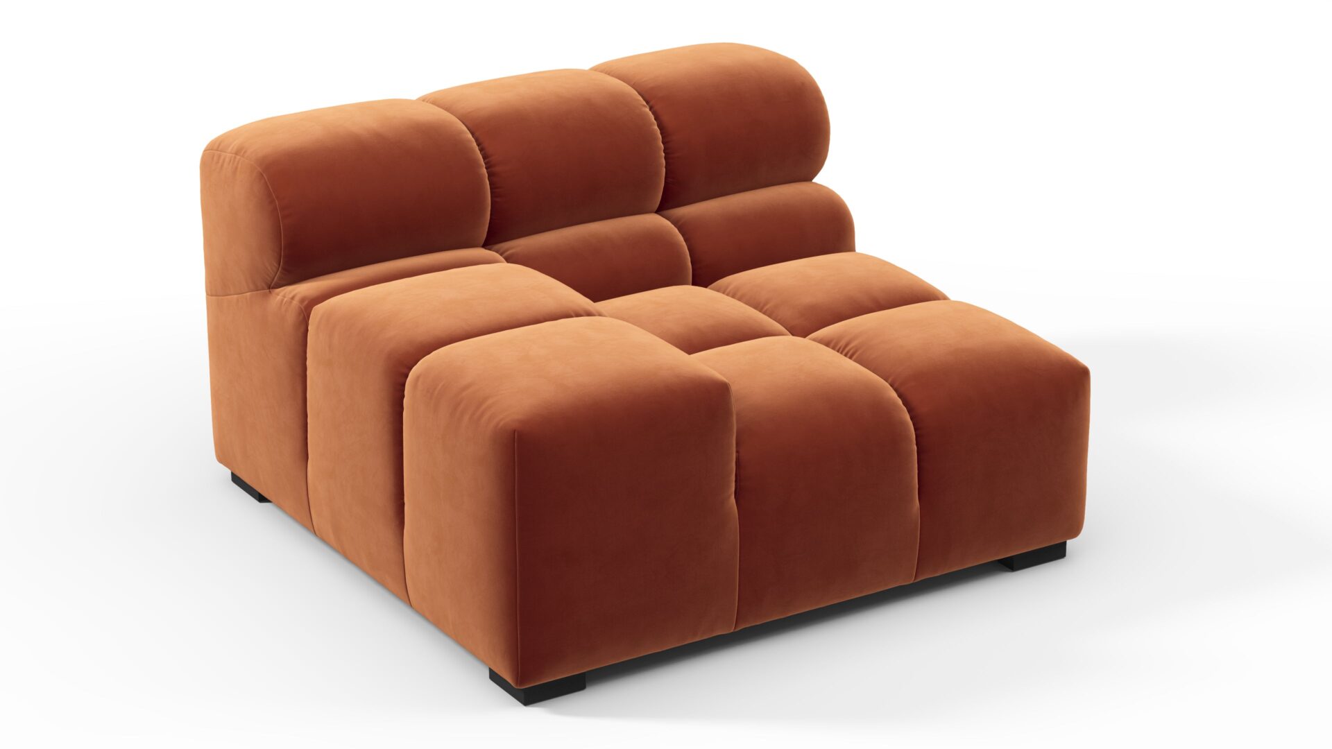 Discover a reinterpretation of the classic Chesterfield style infused with a 70s flair in the Tufty Spice Velvet sectional. This contemporary masterpiece showcases a versatile design with a playful aesthetic. Its relaxed vibe and chic outline, featuring subtle curves and shapes, seamlessly blend in modern or vintage settings, promising ultimate comfort and style.