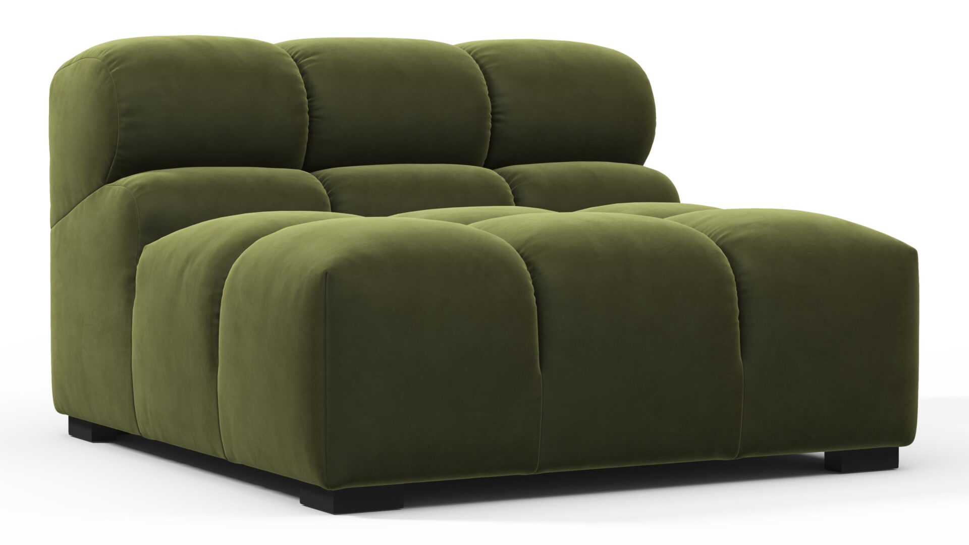 Discover a fresh interpretation of the classic Chesterfield style with the Tufty sectional, embodying 70s charm in Thyme Luxe Velvet. This contemporary masterpiece marries versatile design with a playful aesthetic, featuring subtle curves and near-invisible junctions. Embrace the ultimate blend of casual elegance and comfort, fitting seamlessly into both modern and vintage interiors.