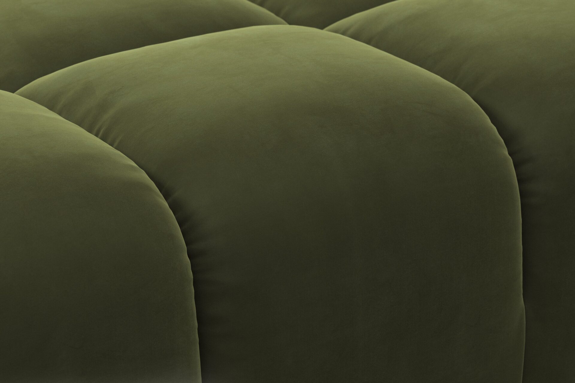 Indulge in a modern twist on the classic Chesterfield design with the Tufty sectional, showcasing 70s-inspired Thyme Luxe Velvet. This versatile masterpiece boasts a playful aesthetic and modular structure for seamless adaptability. Its subtle curves and timeless appeal make it a chic addition to any space, offering ultimate comfort and style for both contemporary and vintage settings.