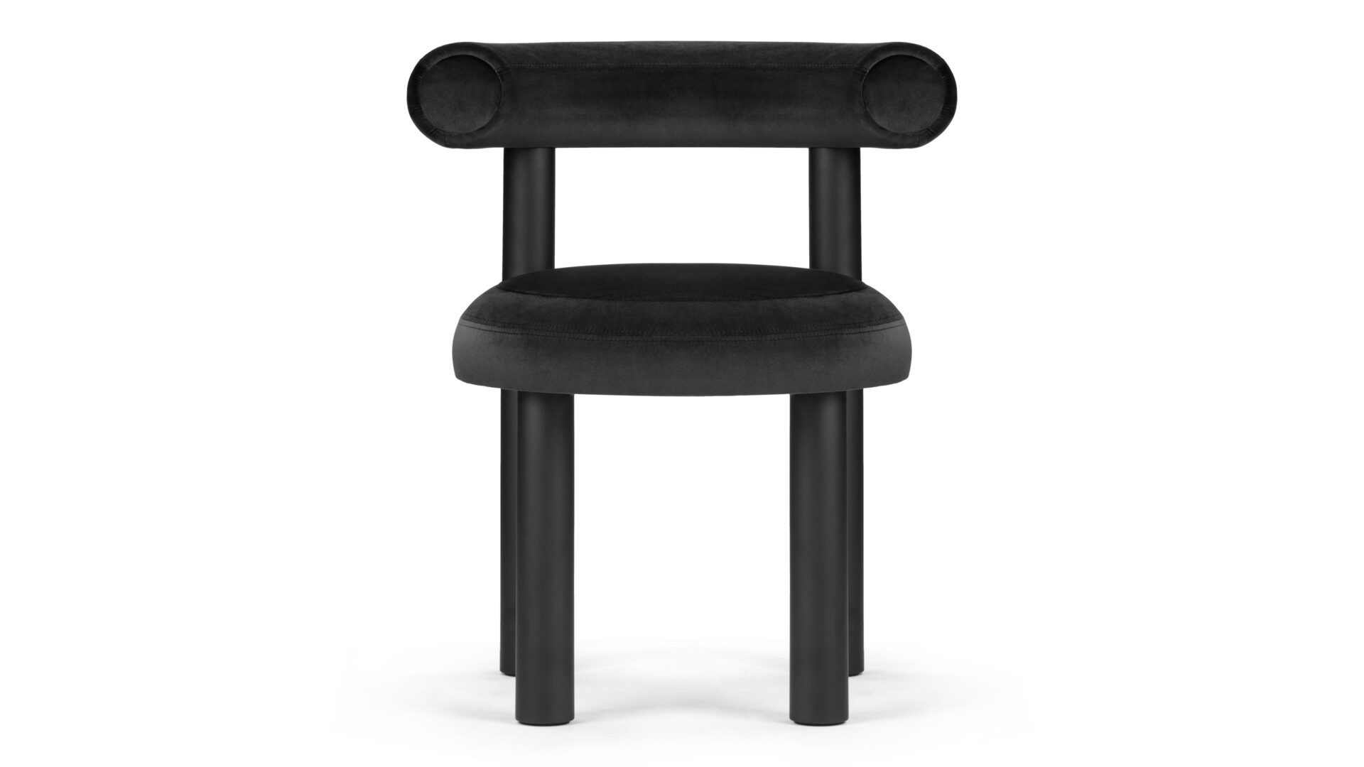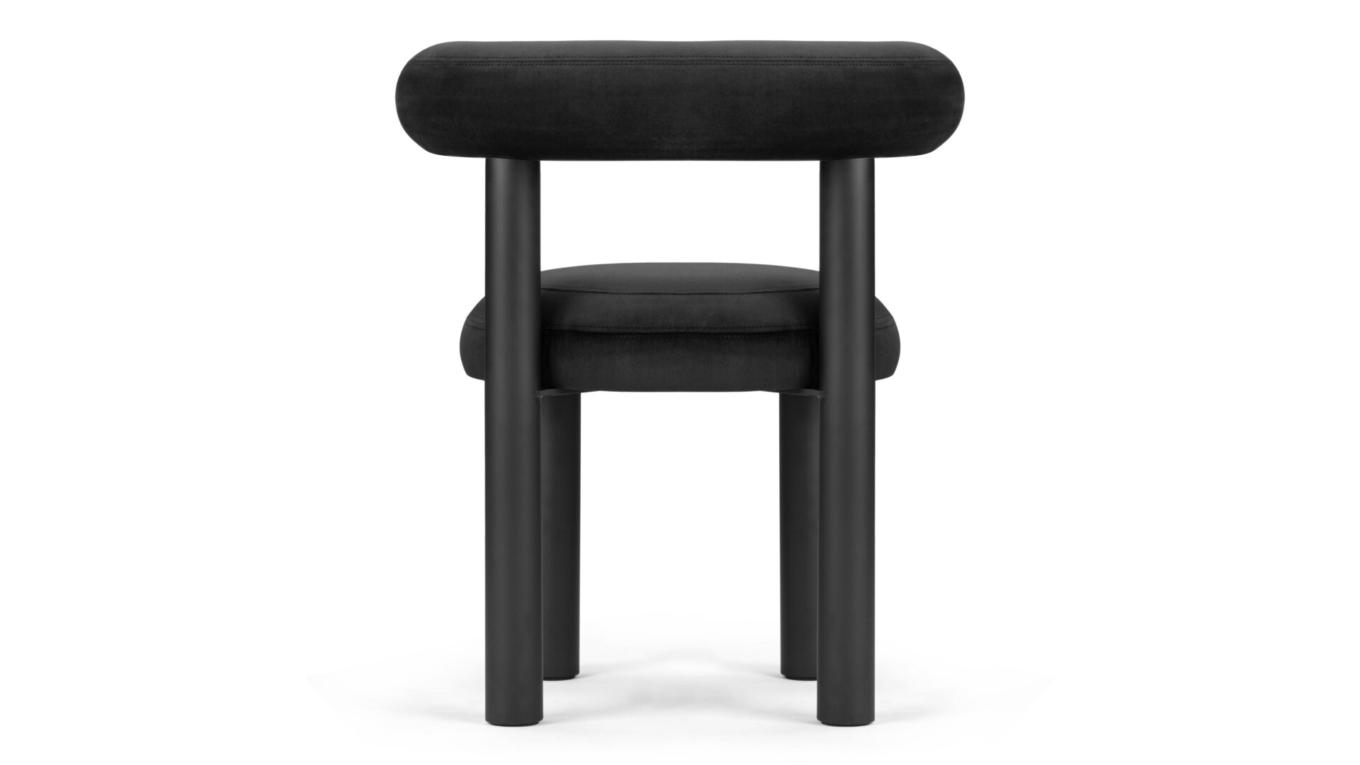 Indulge in the luxury of the Vance Dining Chair's sumptuous upholstery, thoughtfully selected to offer a perfect blend of comfort and longevity. Crafted in a lavish black velvet, this dining chair presents a chic and refined enhancement to any room, seamlessly harmonizing with different interior decor styles and color schemes.