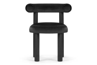 Indulge in the luxury of the Vance Dining Chair's sumptuous upholstery, thoughtfully selected to offer a perfect blend of comfort and longevity. Crafted in a lavish black velvet, this dining chair presents a chic and refined enhancement to any room, seamlessly harmonizing with different interior decor styles and color schemes.