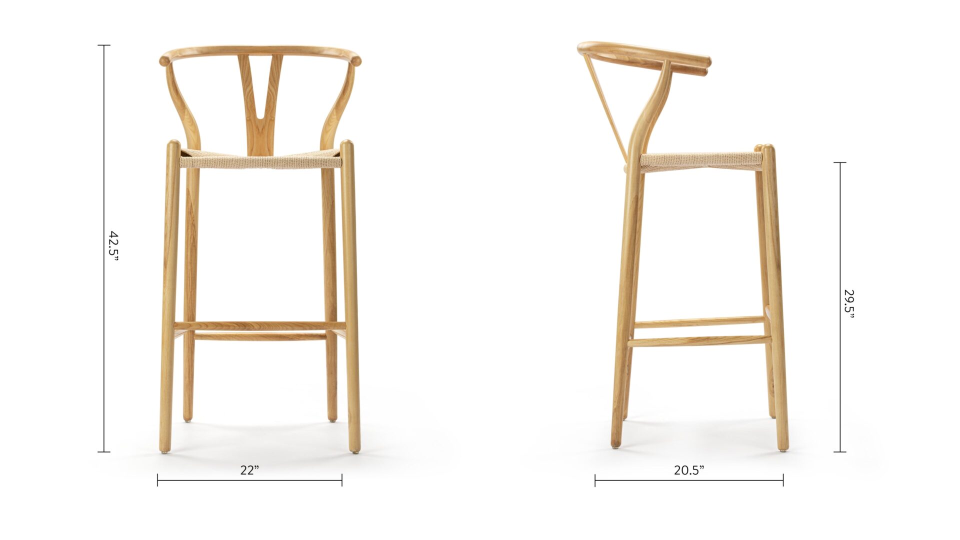 Enhance the allure of the popular Wish Chair with this bar stool that effortlessly boosts the chic factor of your bar space, outdoor patio, and beyond. The renowned Scandinavian design of this bar stool, complete with its detailed handwoven seat and distinctive two-prong backrest, epitomizes a contemporary staple, enabling you to infuse a hint of Danish elegance.