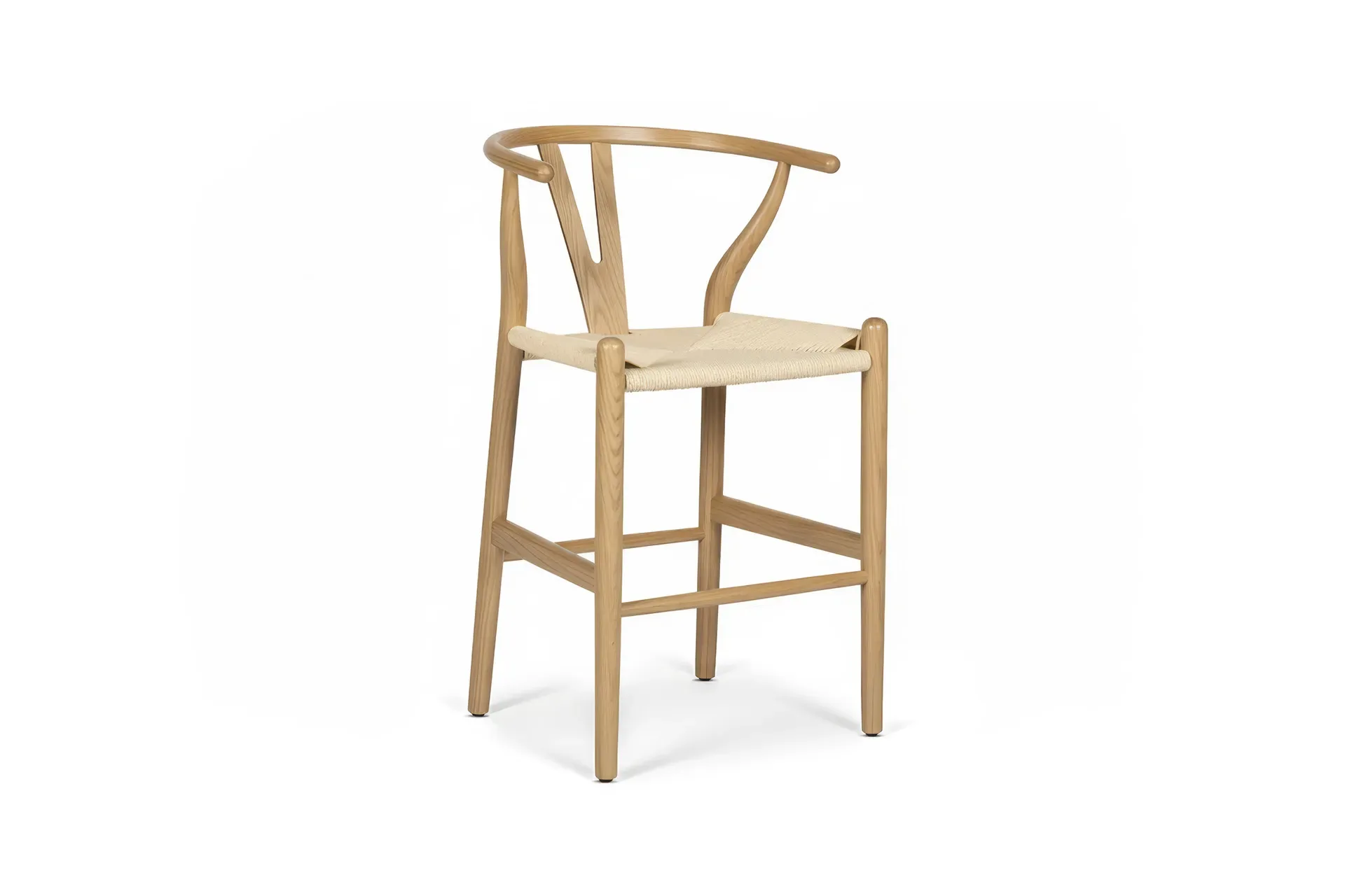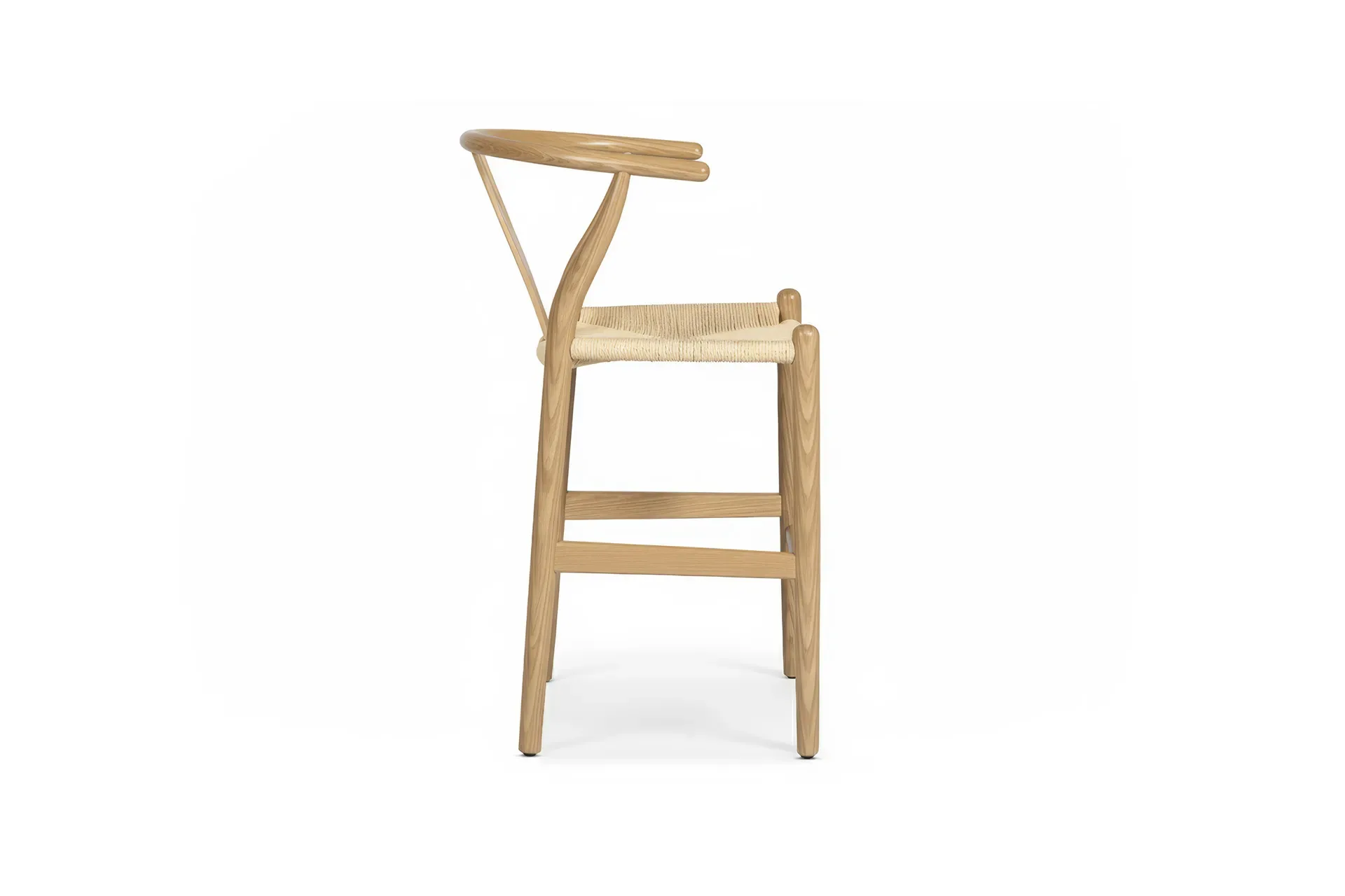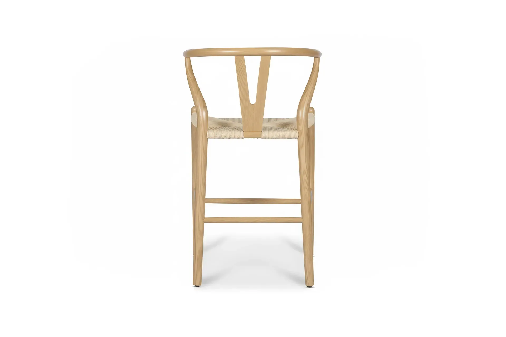 Indulge in the timeless charm of the Wish Counter Stool, a tribute to mid-century Danish design. Featuring a distinctive two-prong backrest and handwoven paper-cord seat, this stool resonates elegance and functionality. Crafted with a sturdy yet lightweight ash frame, it effortlessly blends minimalist aesthetics with Danish flair, offering a stylish and versatile addition to any space.